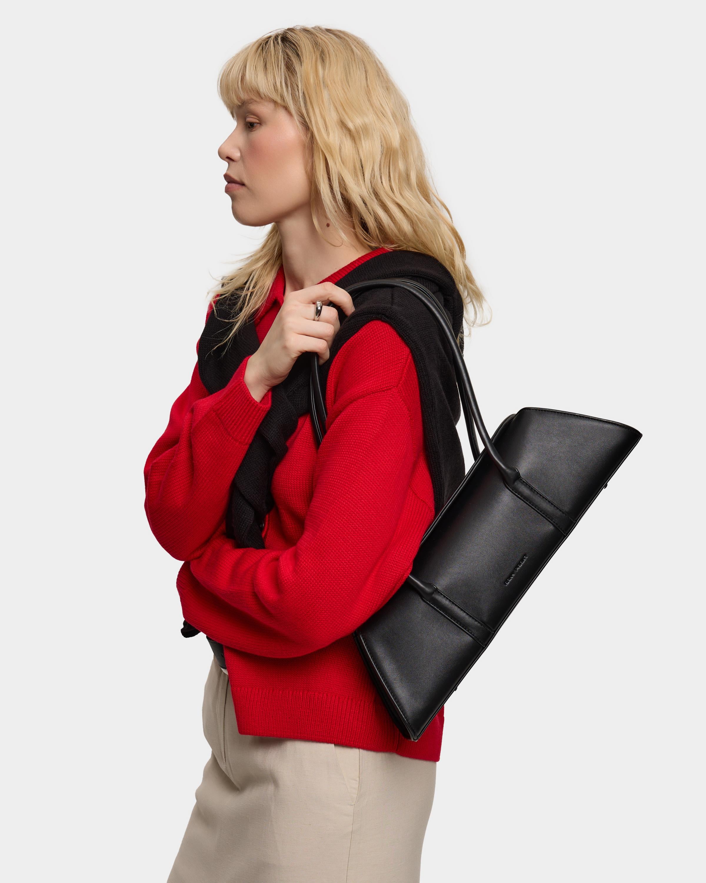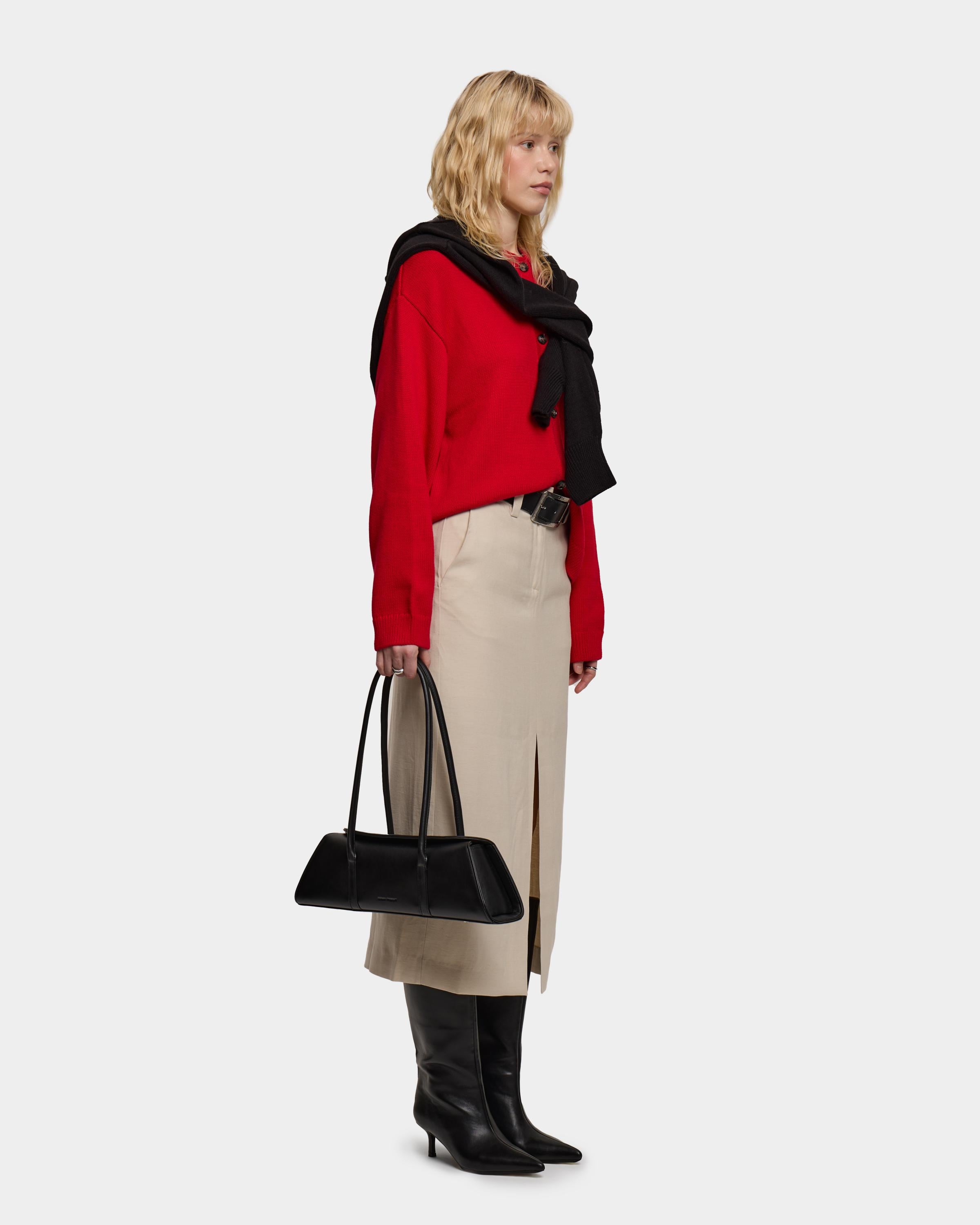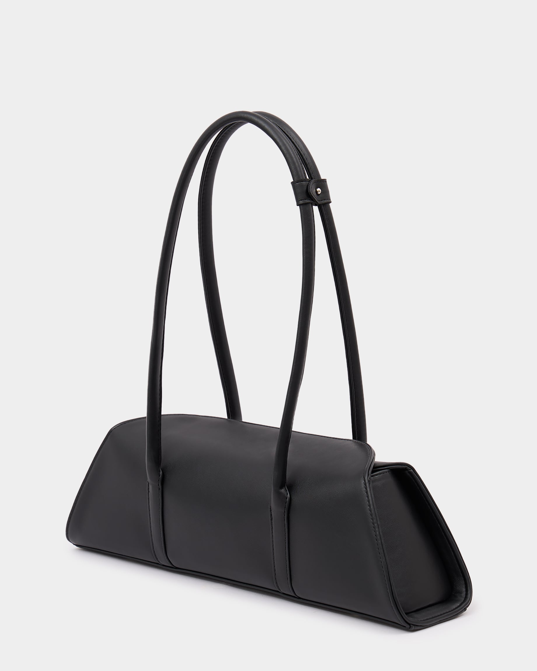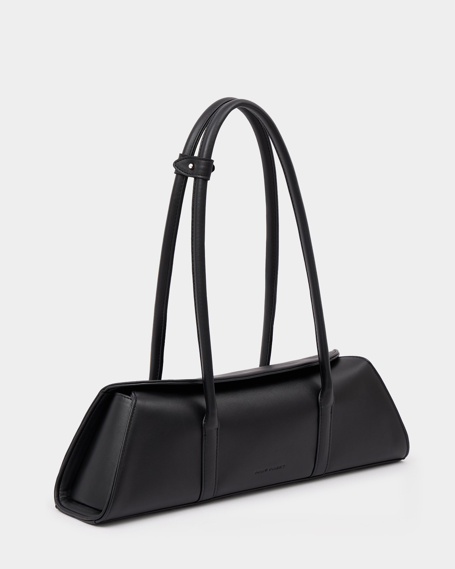 Каркасная сумка-такса с тонкими ручками из экокожи в черном цвете