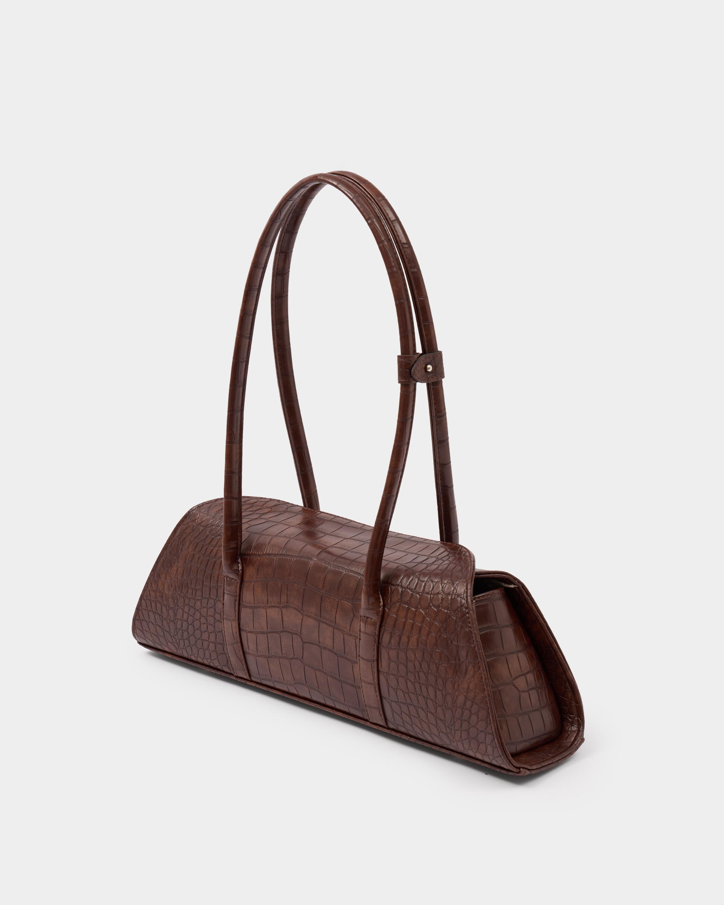 Каркасная сумка-такса с тонкими ручками из экокожи