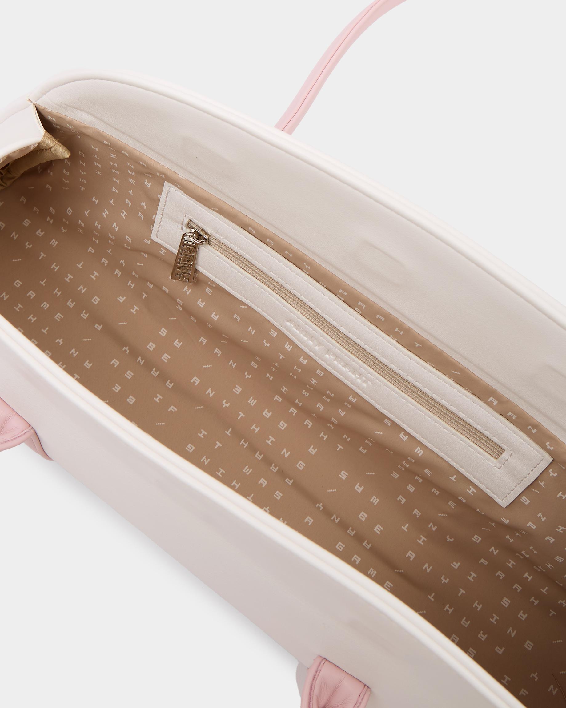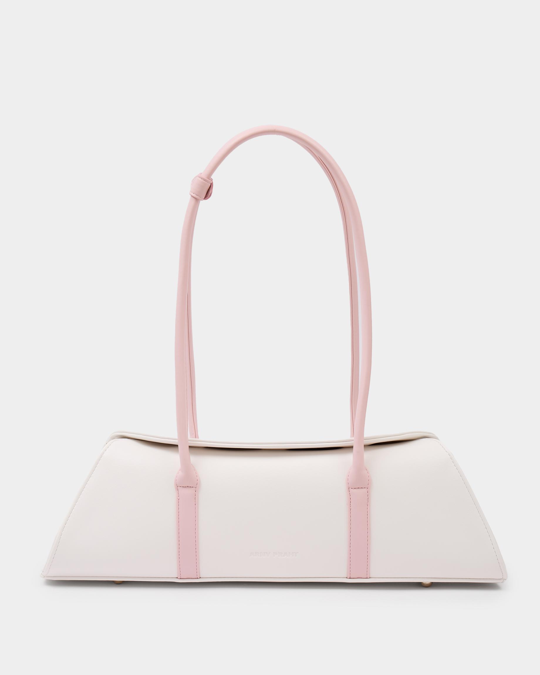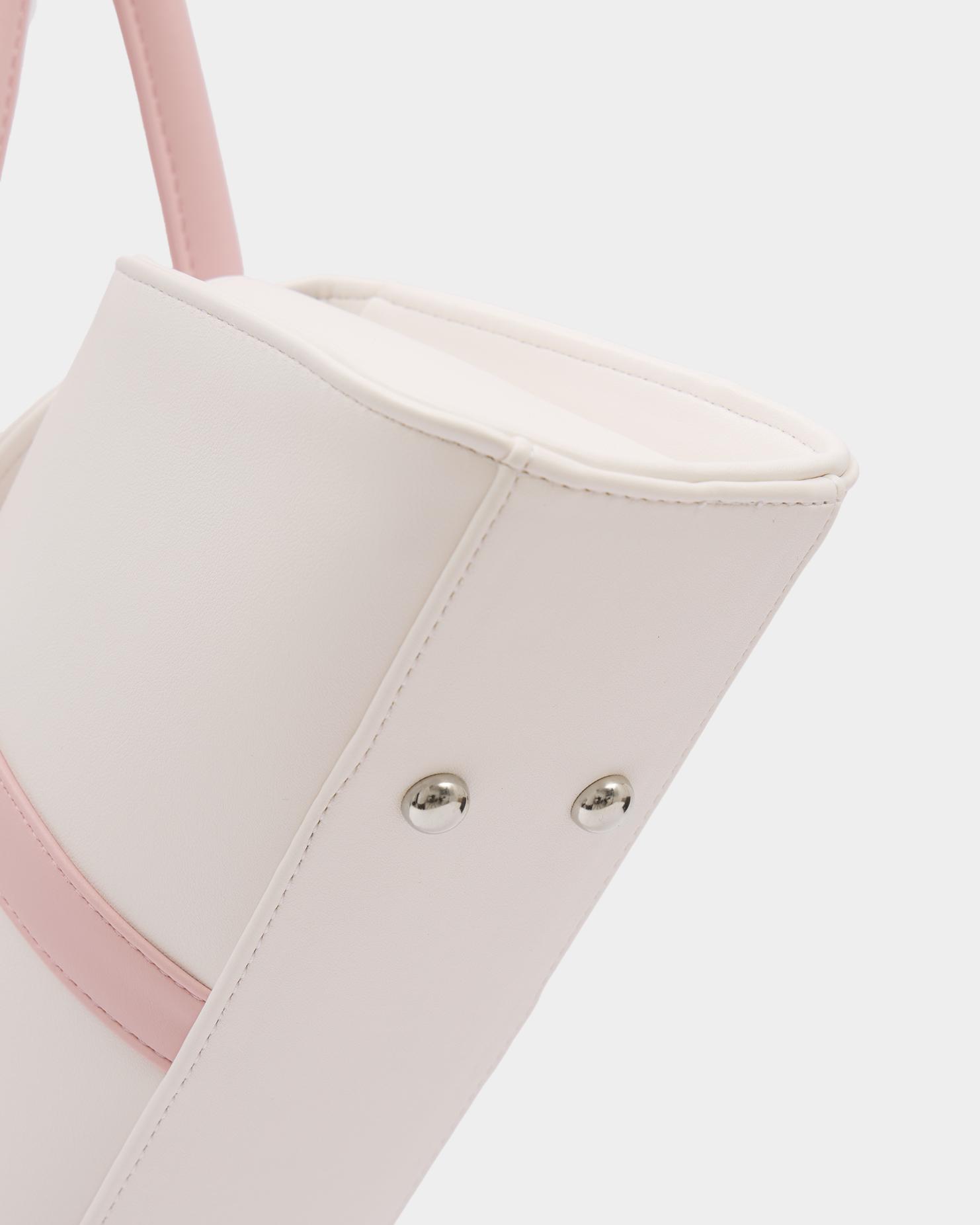 Каркасная сумка-такса с акцентными ручками из экокожи в молочном цвете