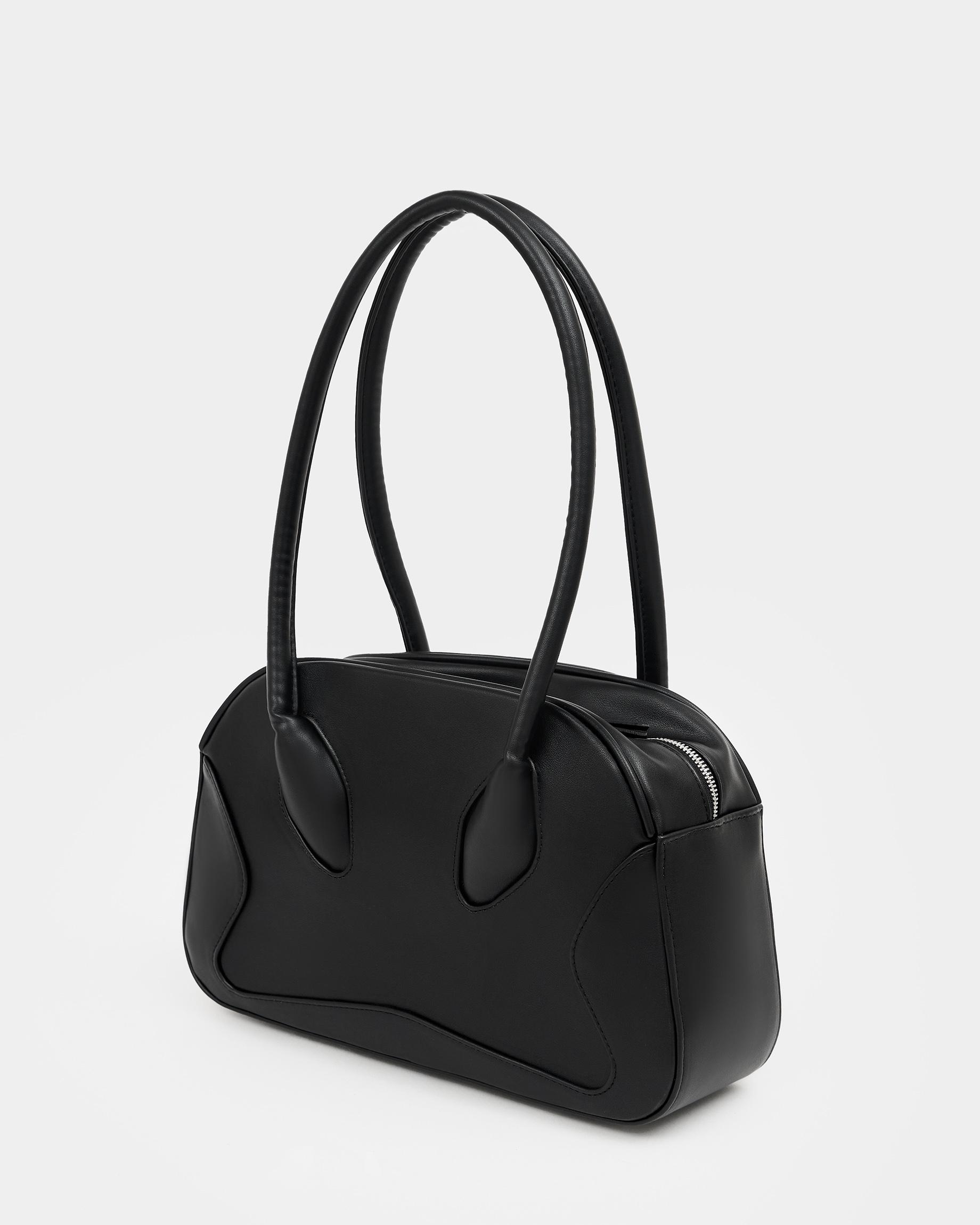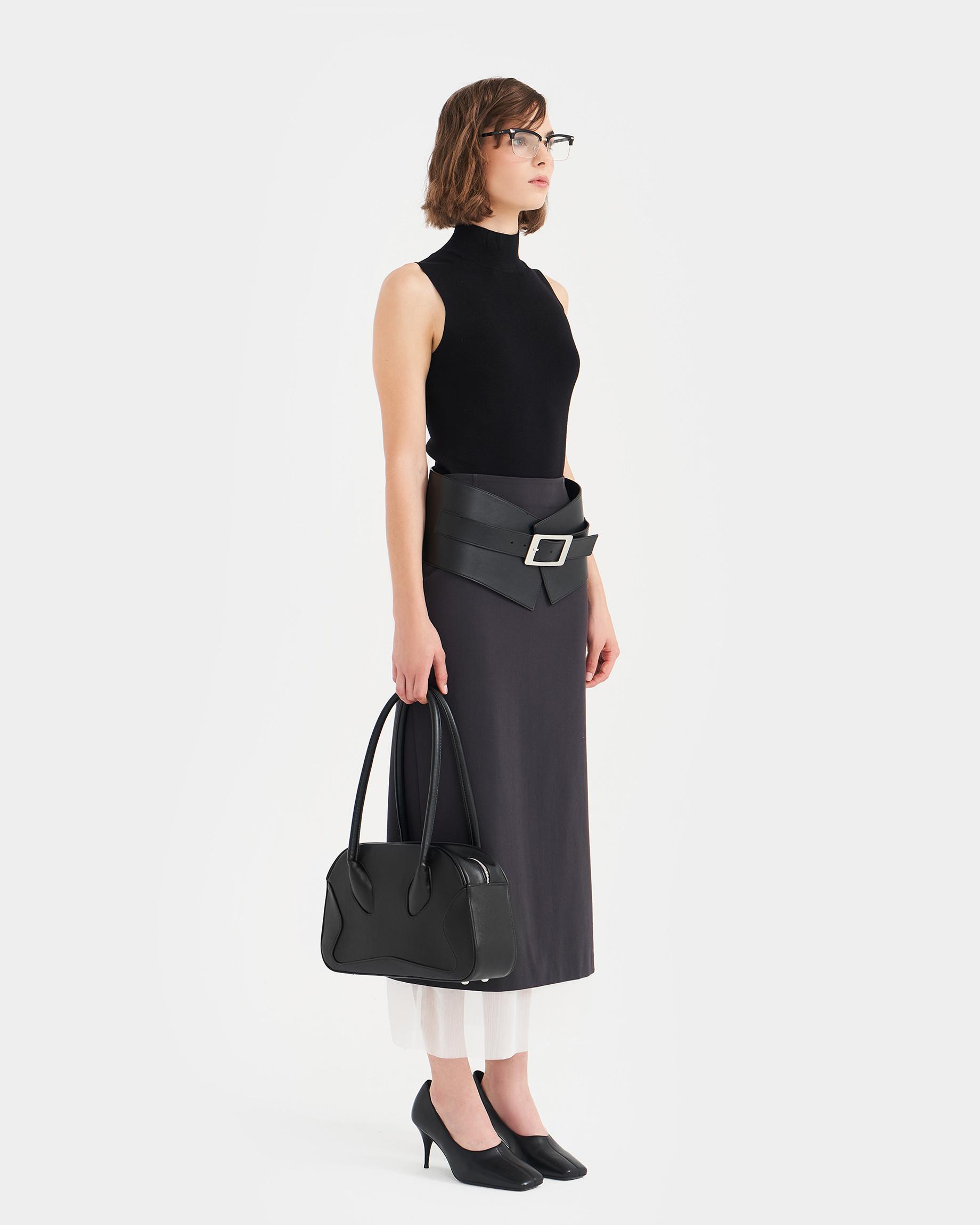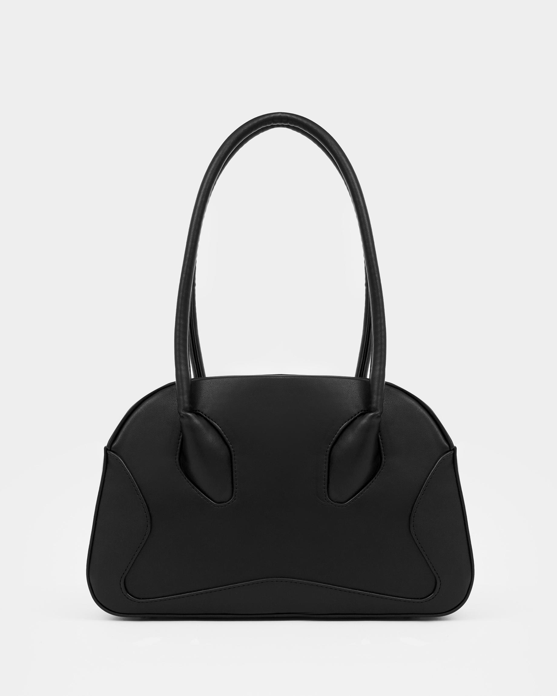 Небольшая сумка-боулер черного цвета с фиксированными ручками