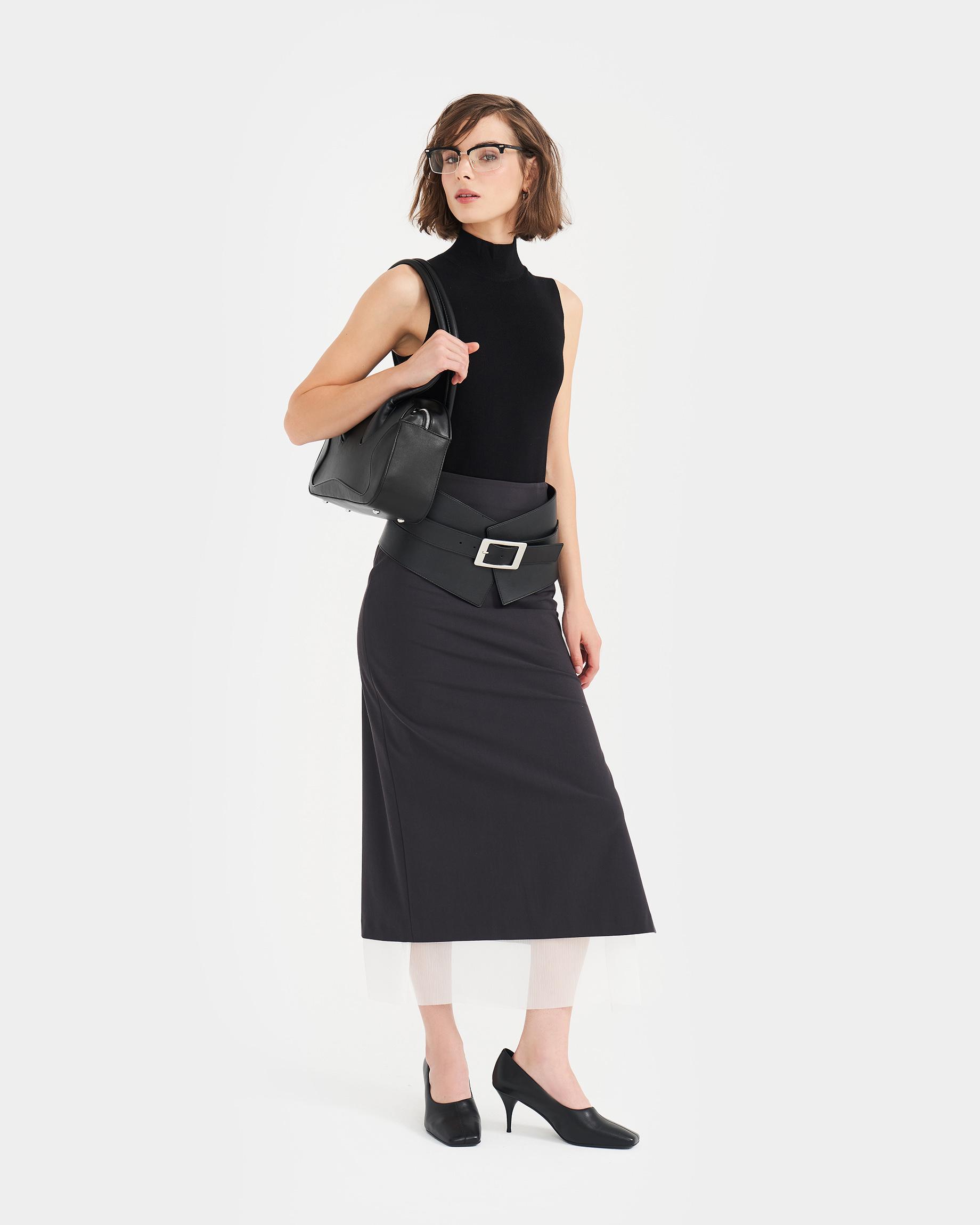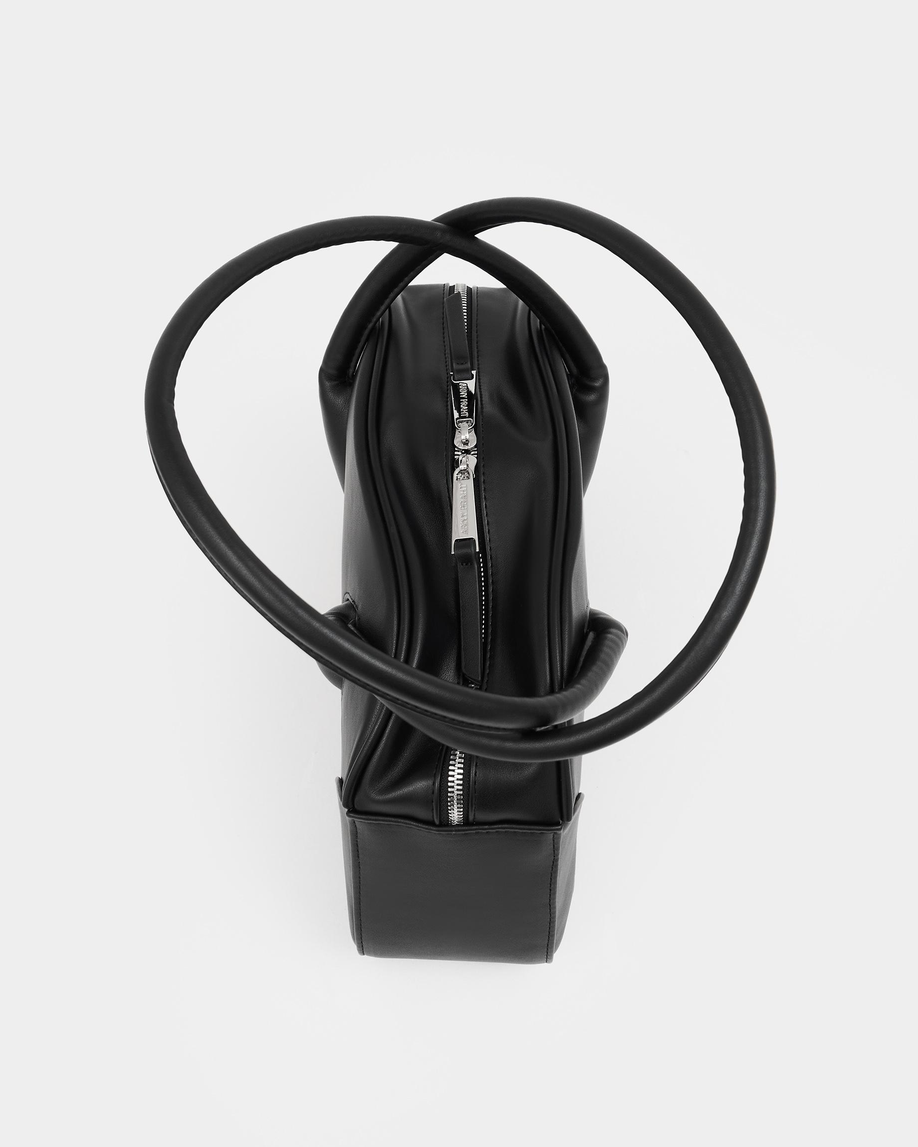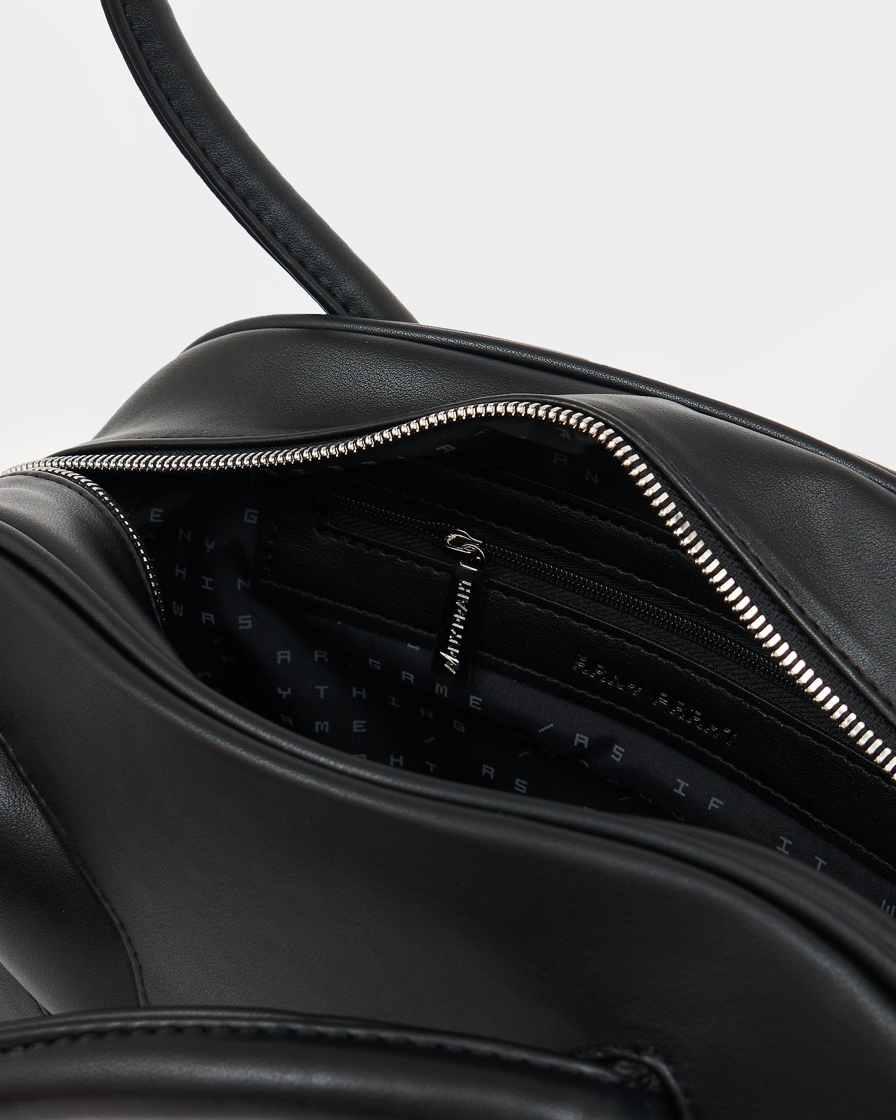 Небольшая сумка-боулер черного цвета с фиксированными ручками