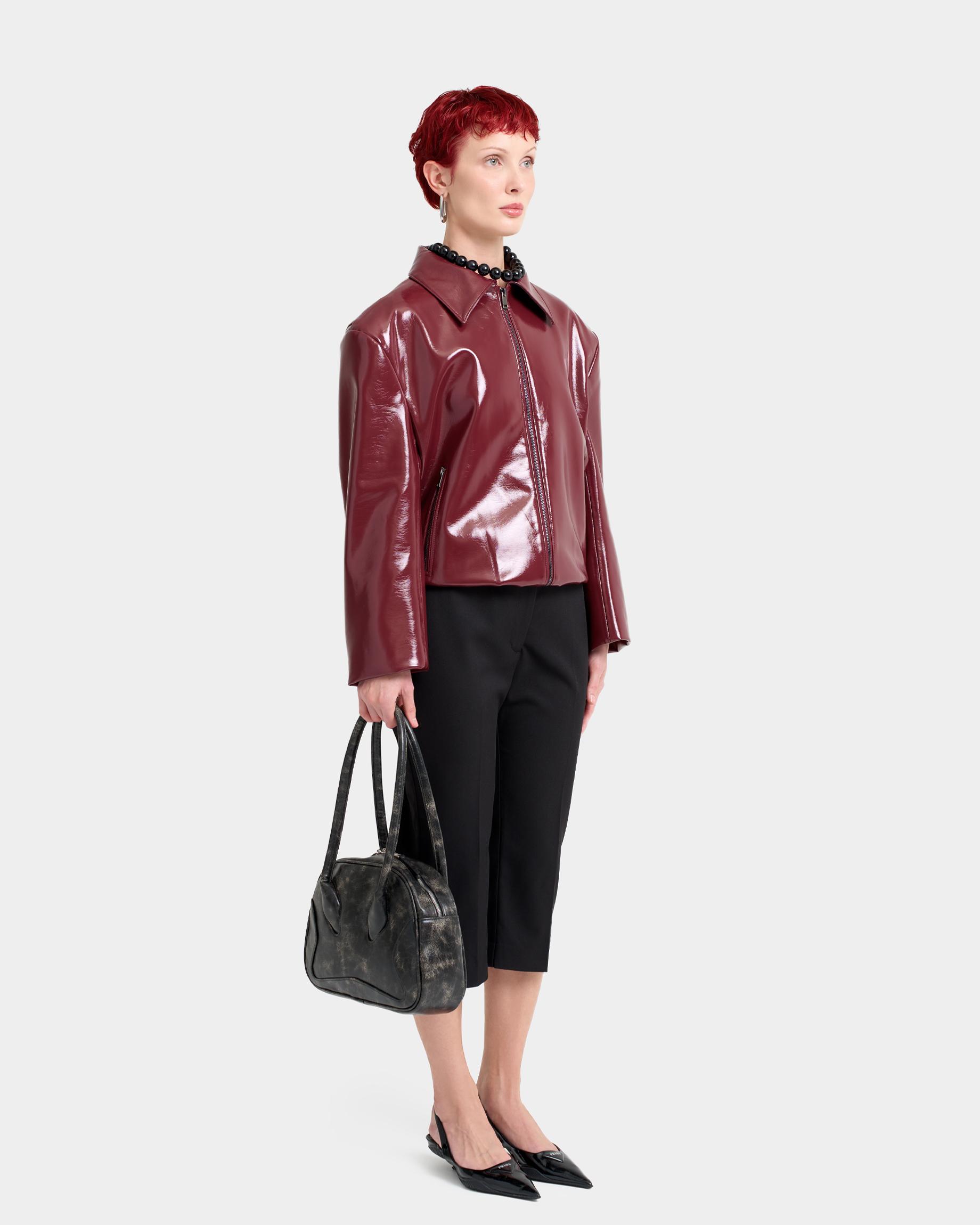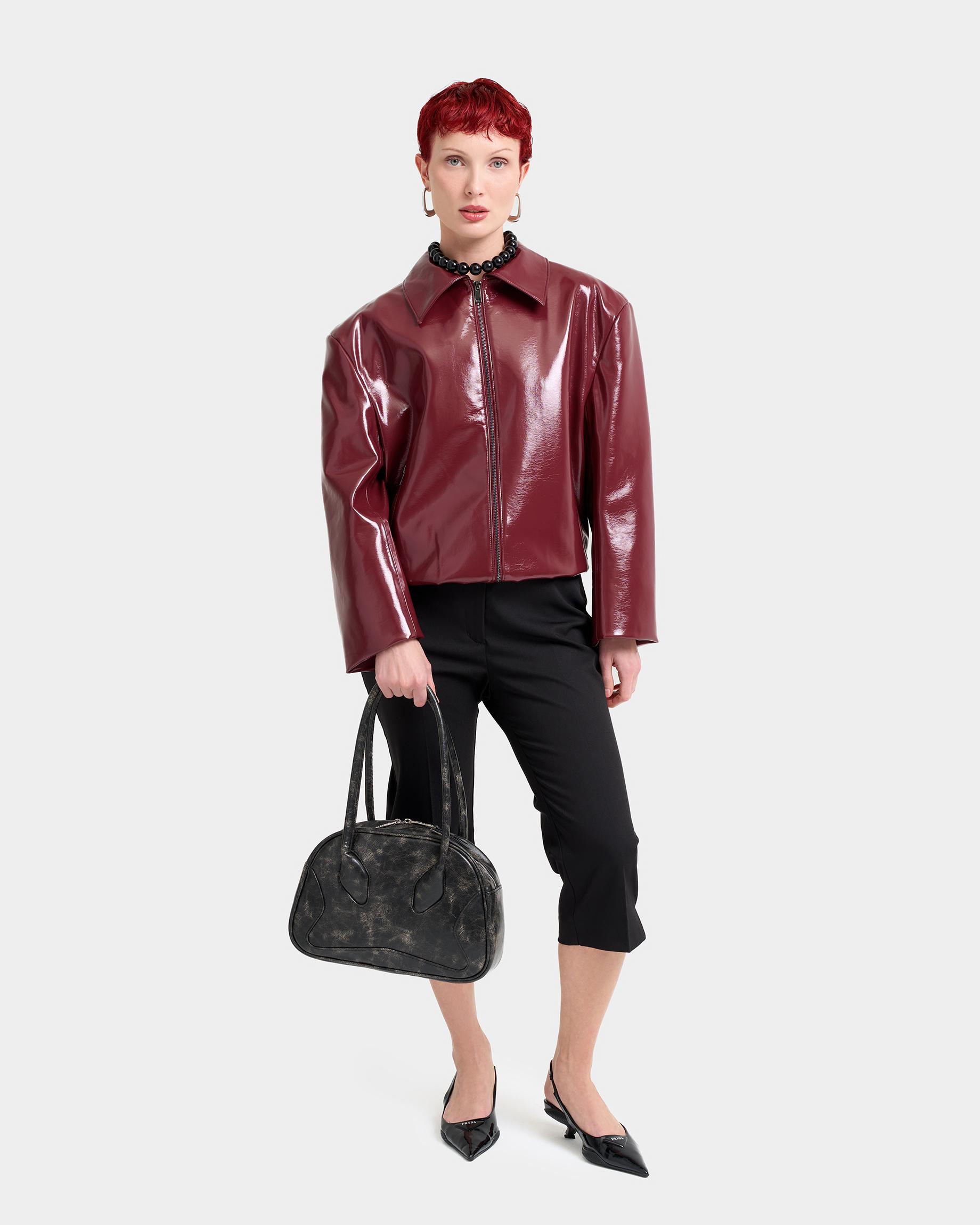 Небольшая сумка-боулер в цвете каштан кракле с фиксированными ручками