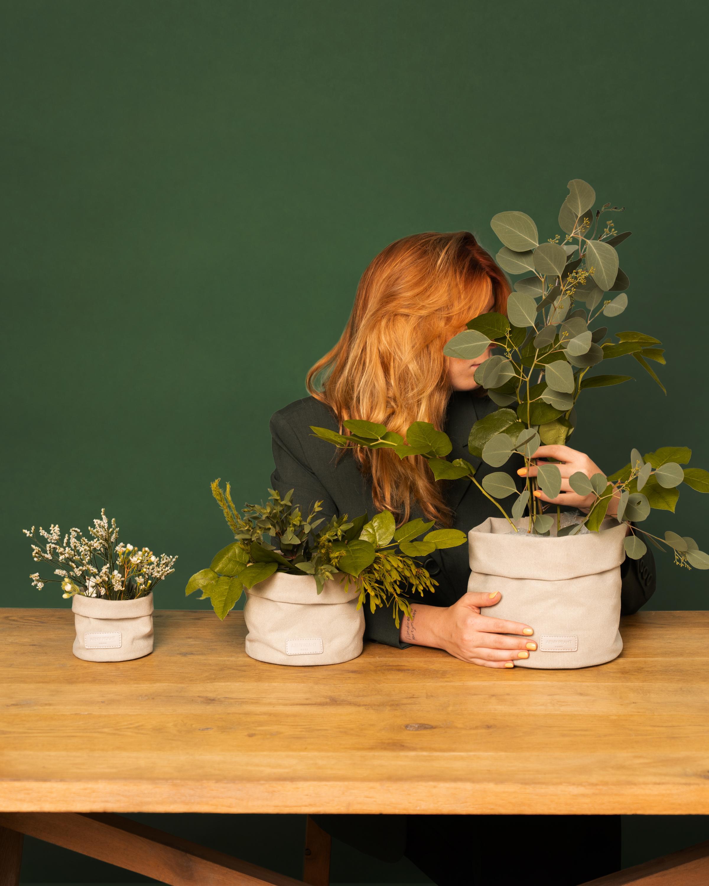 Кашпо бежевое из текстиля