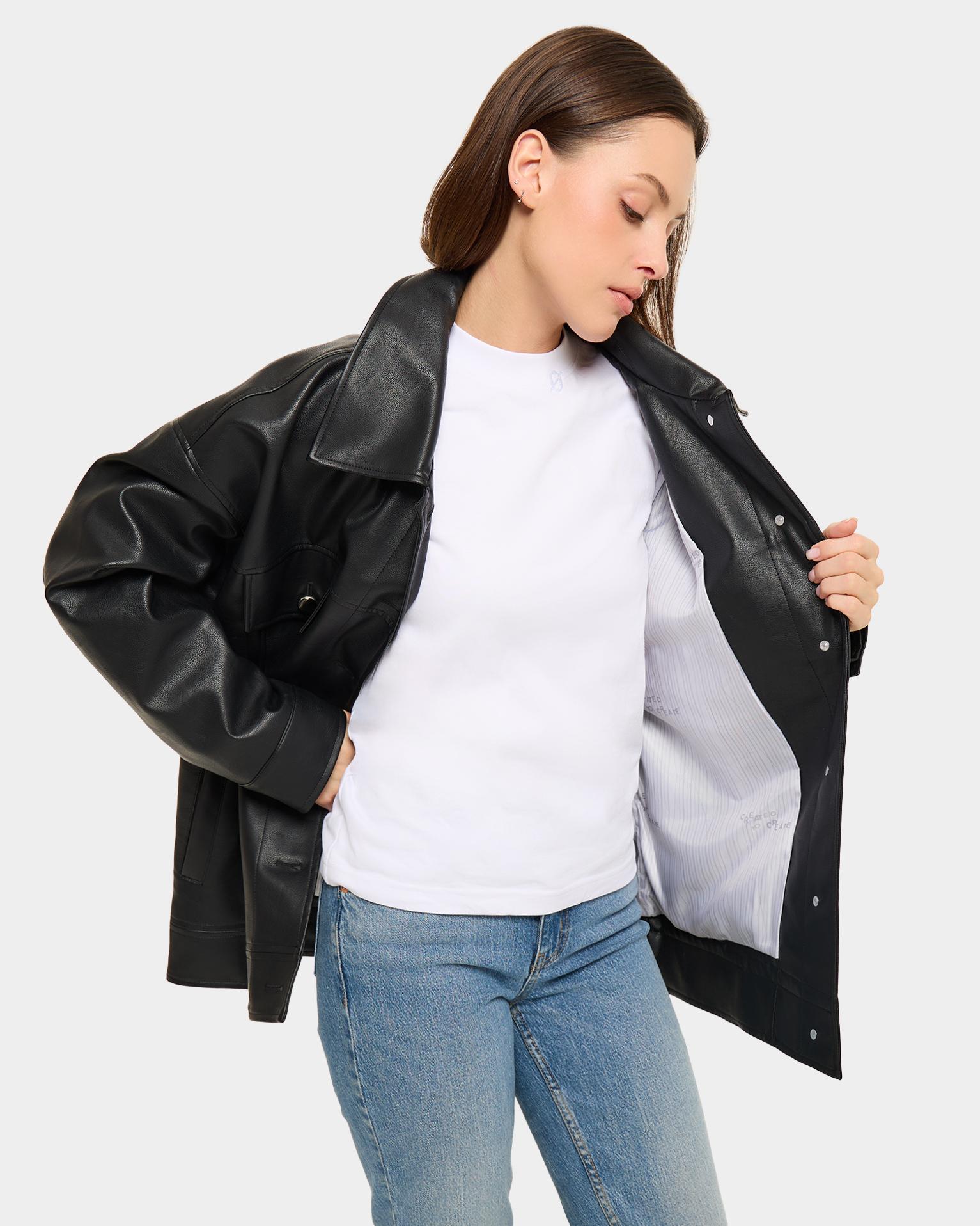 Агендерная куртка из экокожи из коллаборации ARNY PRAHT с AT EASE.