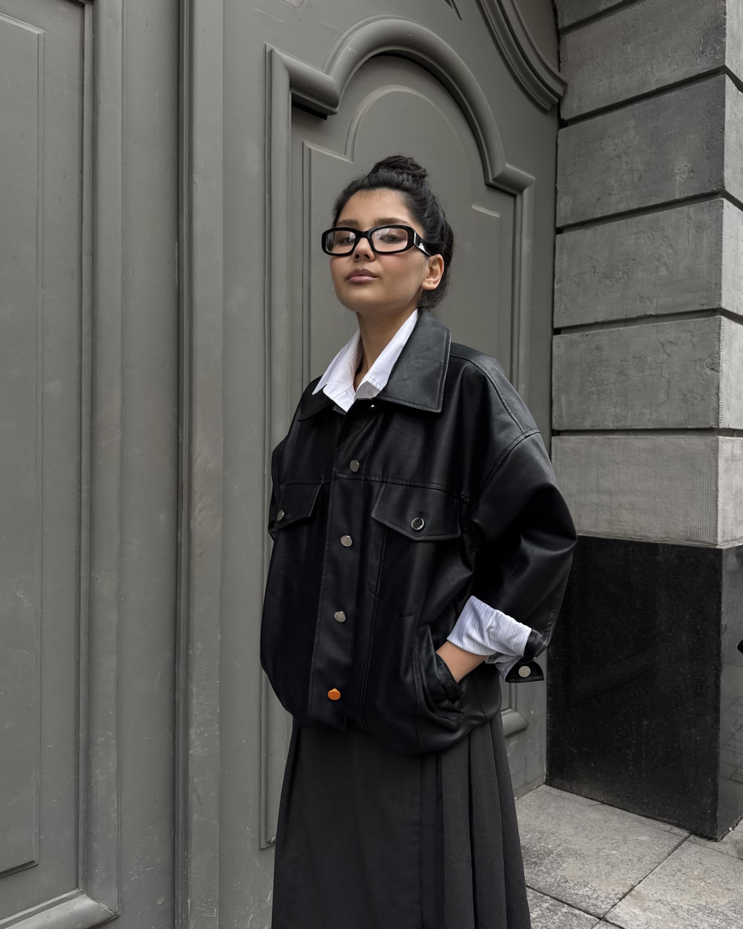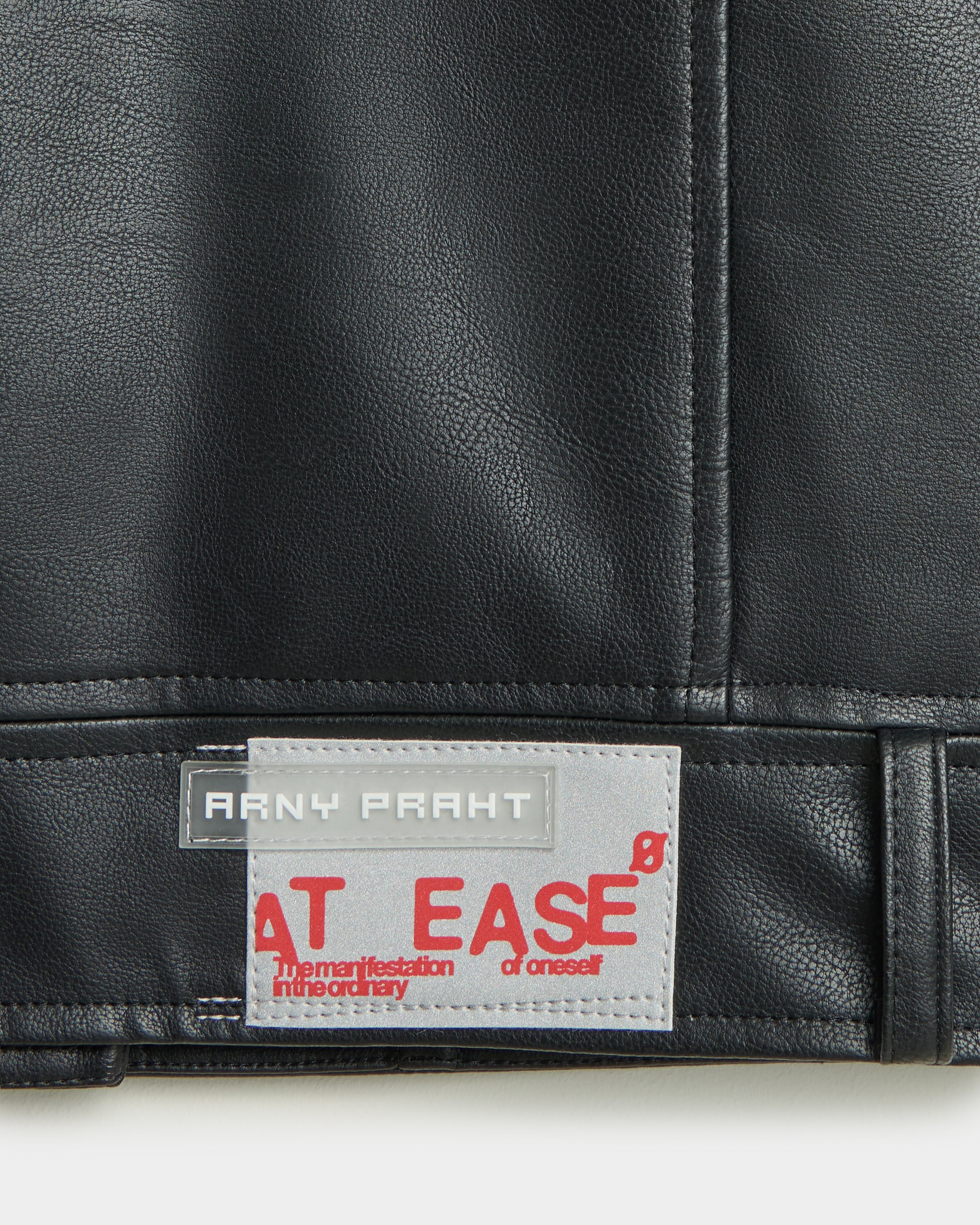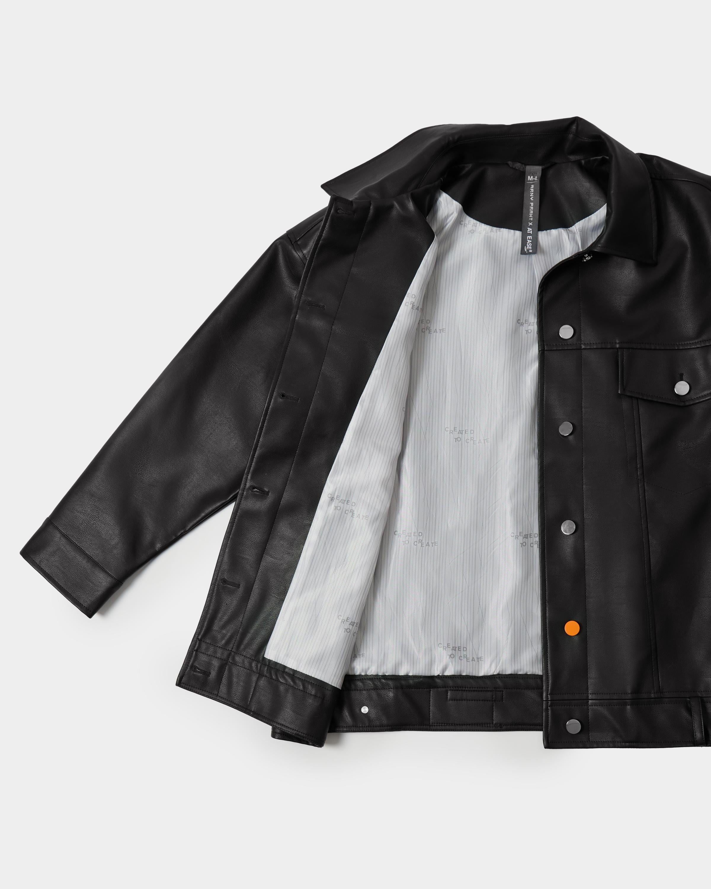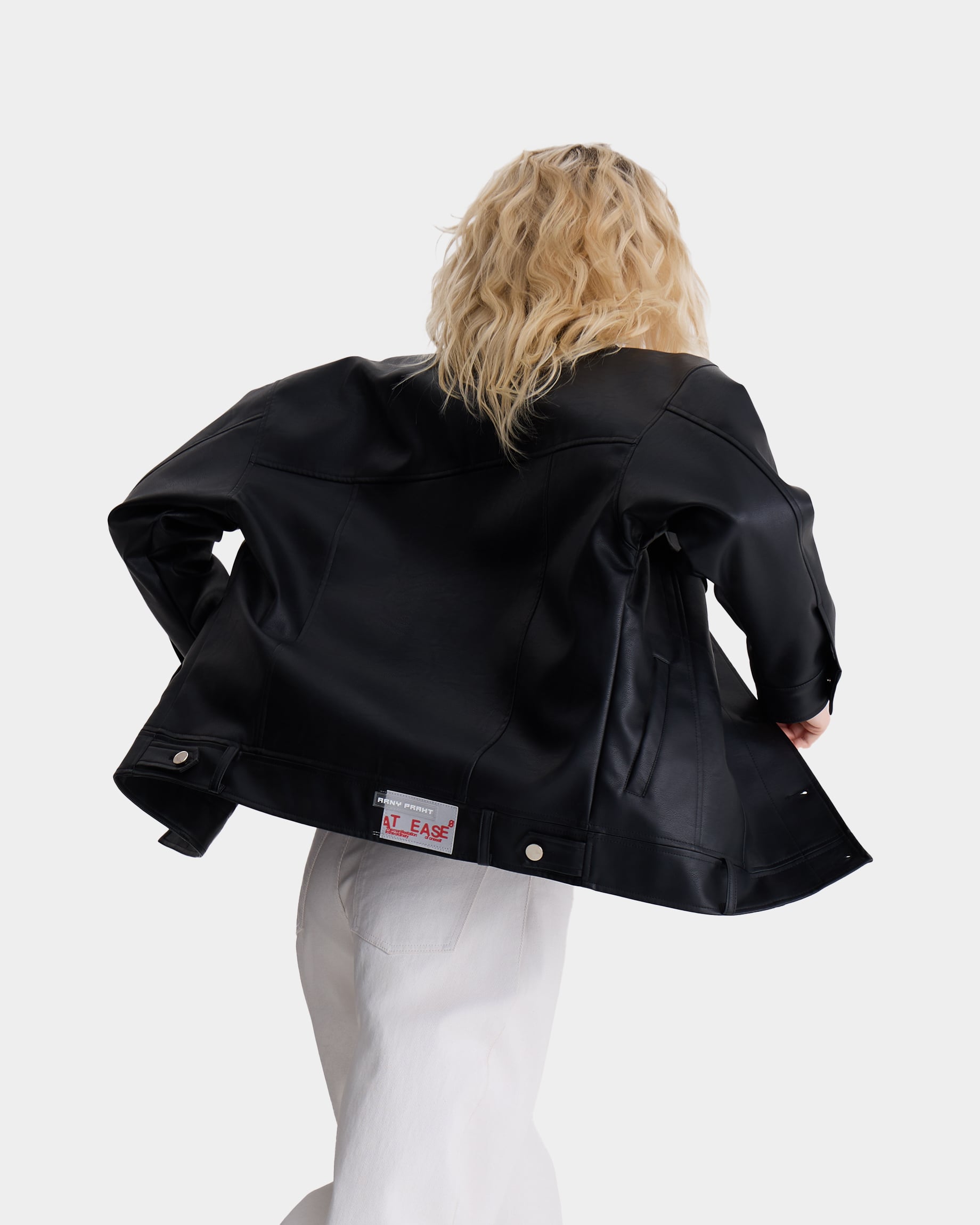 Агендерная куртка из экокожи из коллаборации ARNY PRAHT с AT EASE.