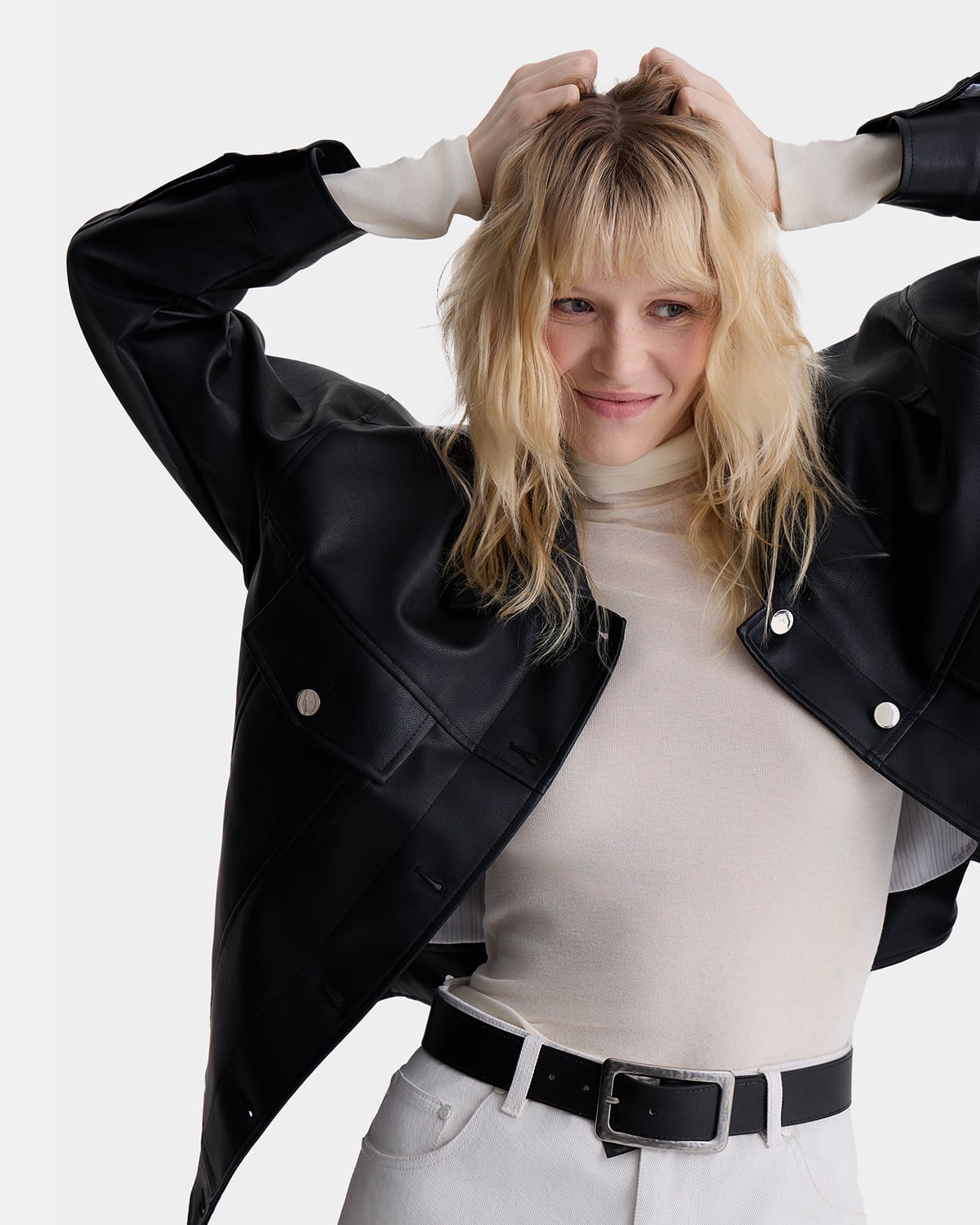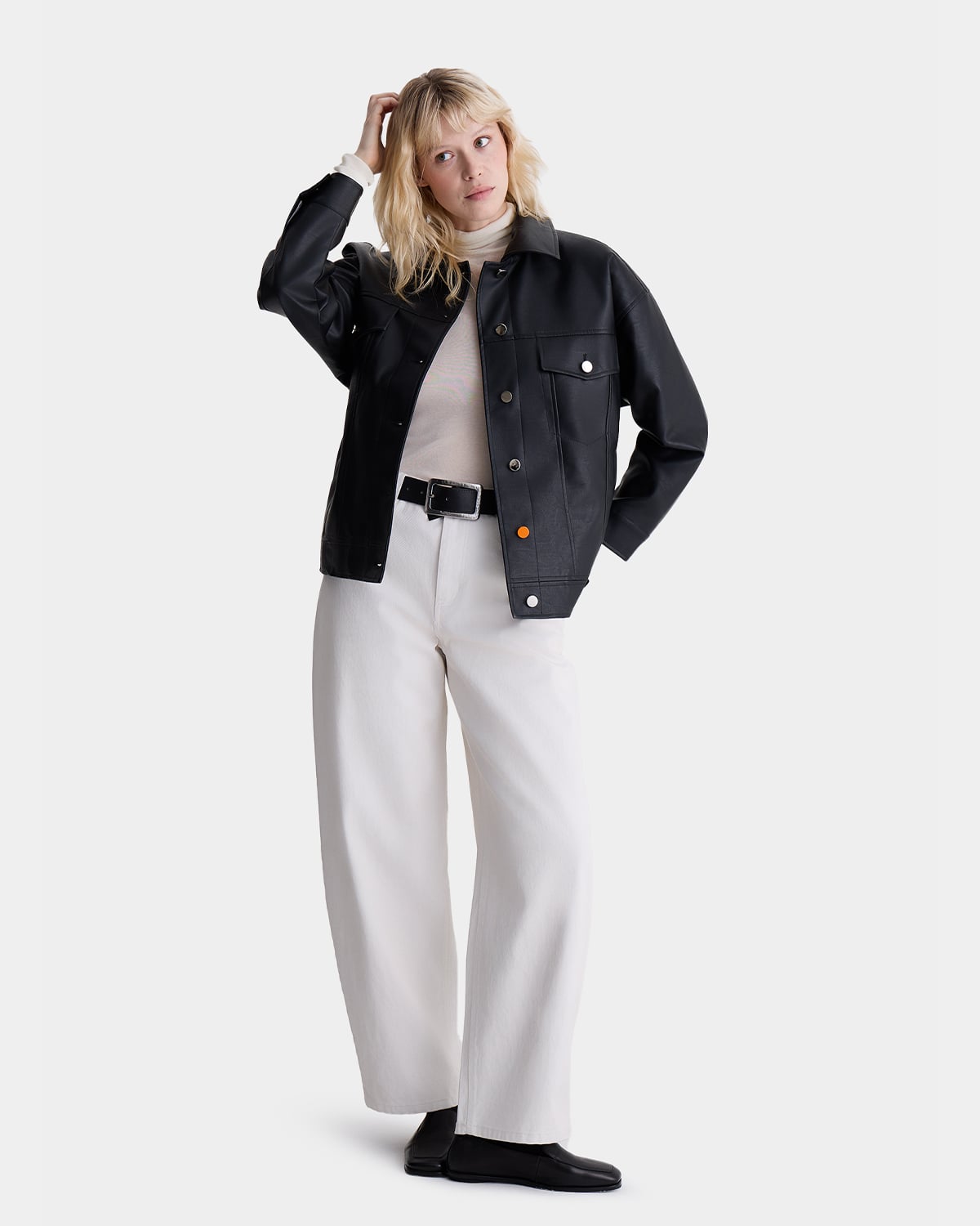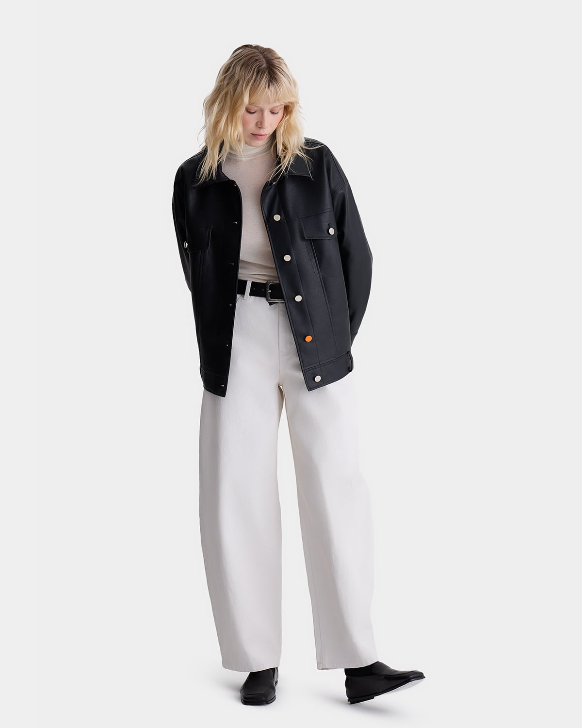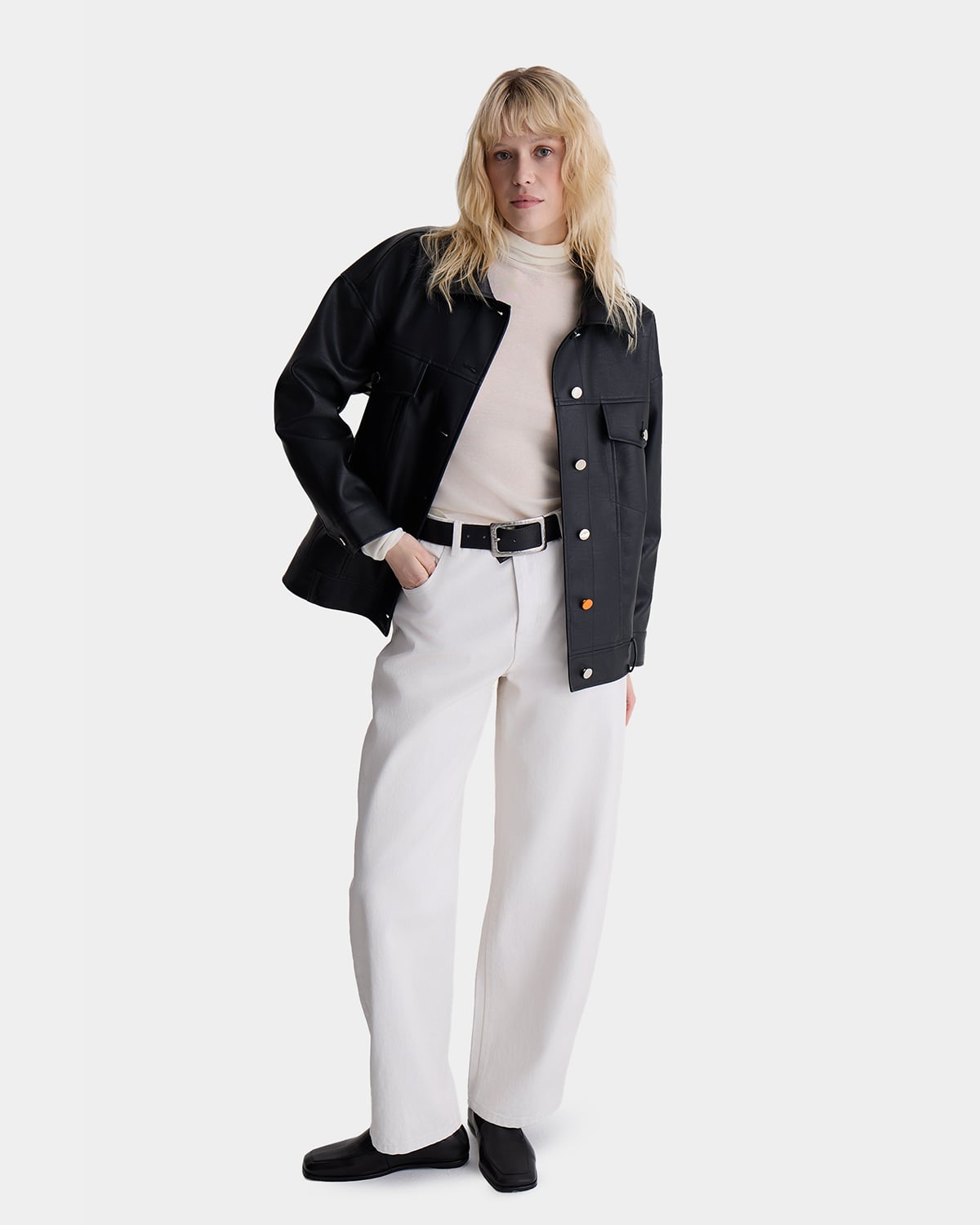Агендерная куртка из экокожи из коллаборации ARNY PRAHT с AT EASE.