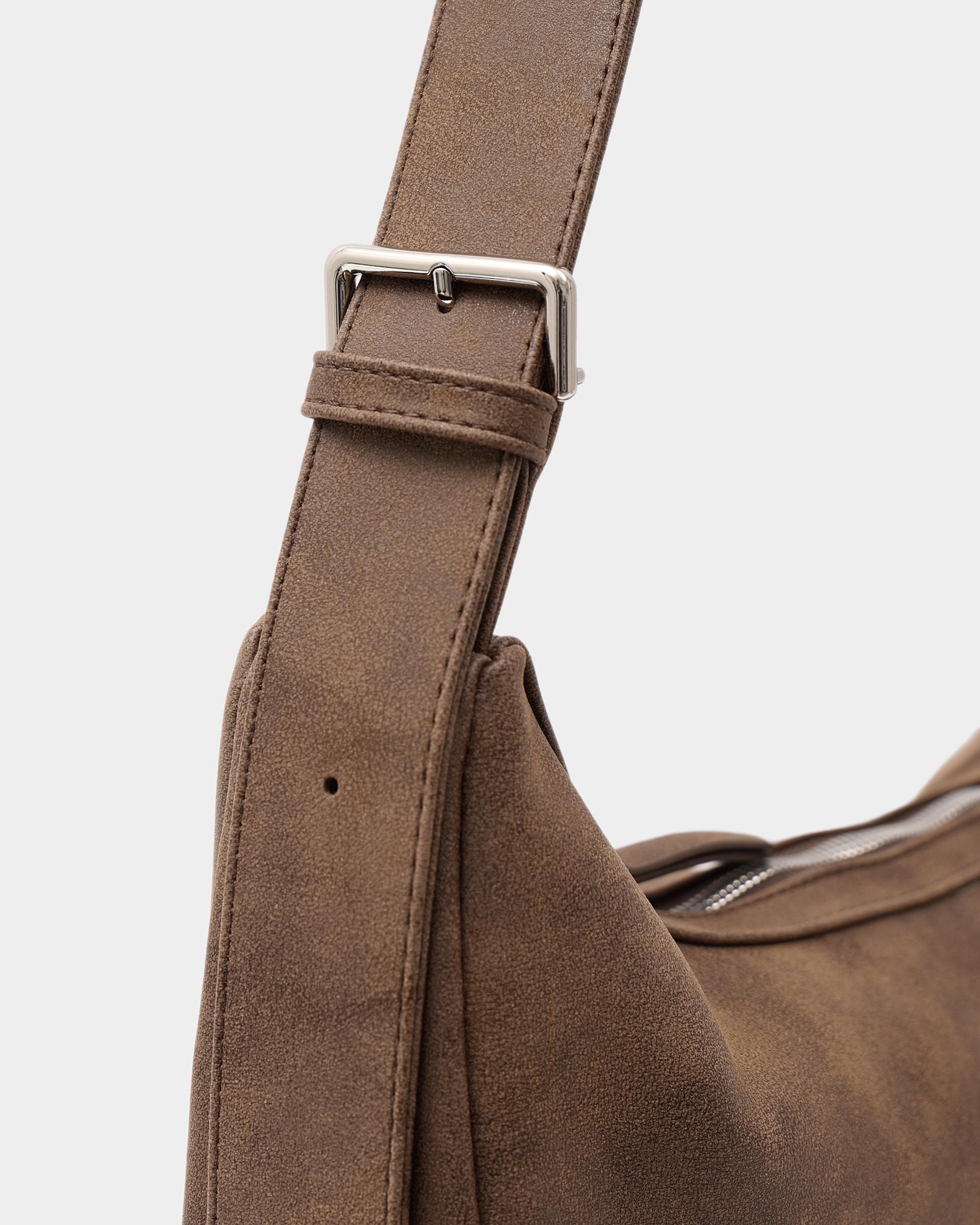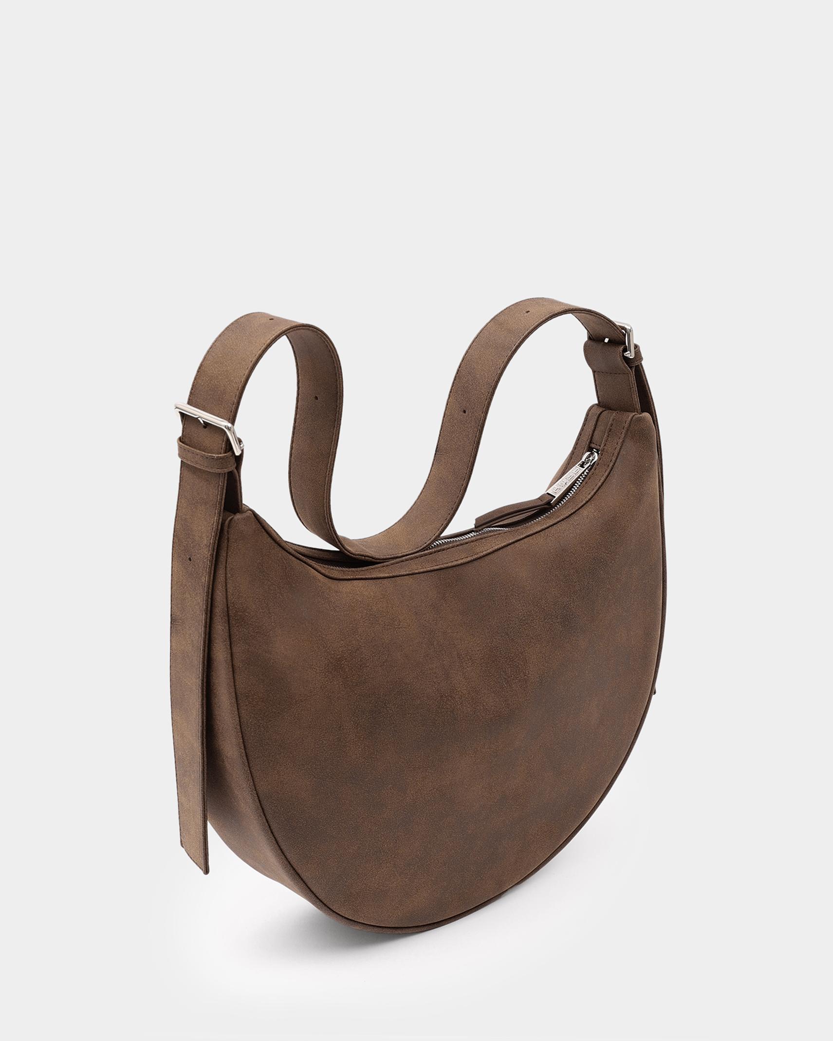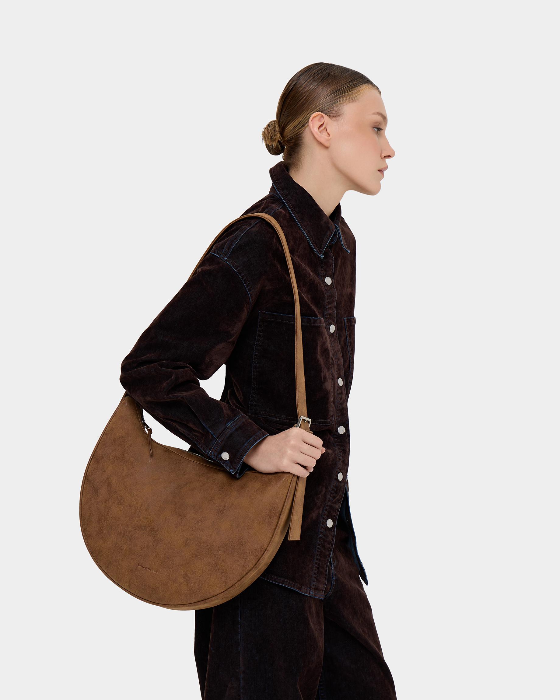 Вместительная сумка-хобо полукруглой формы с регулируемым ремнем из замшевой экокожи