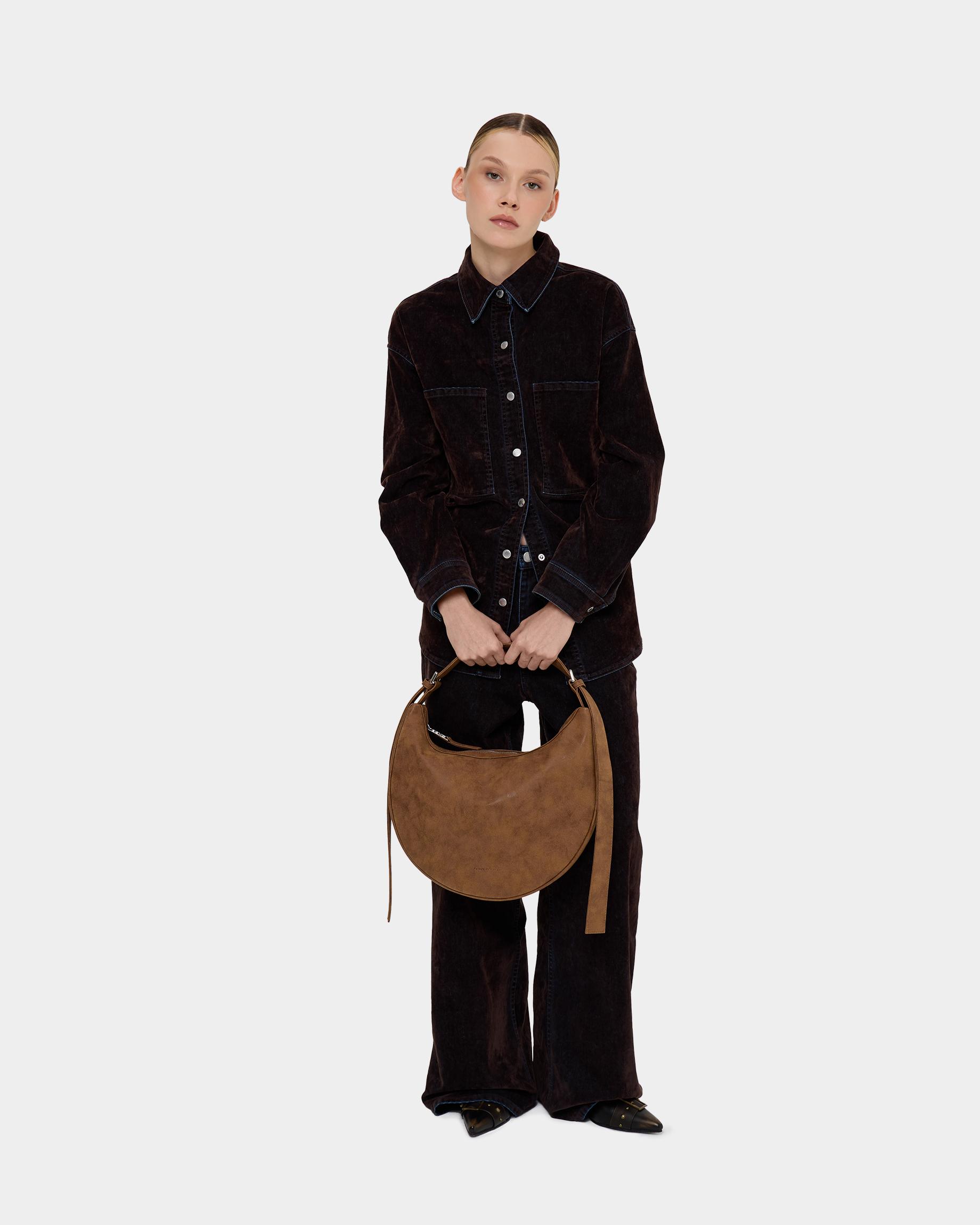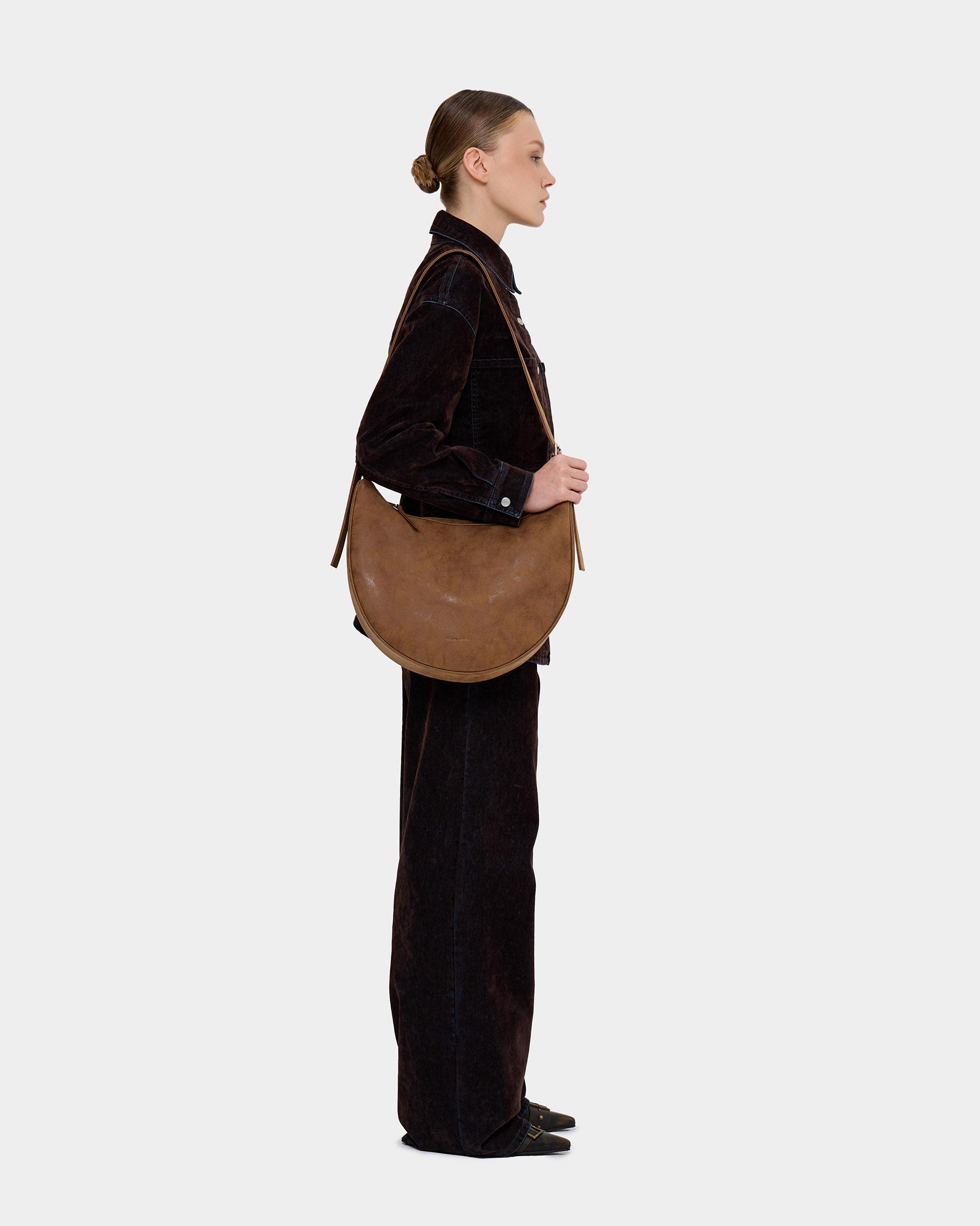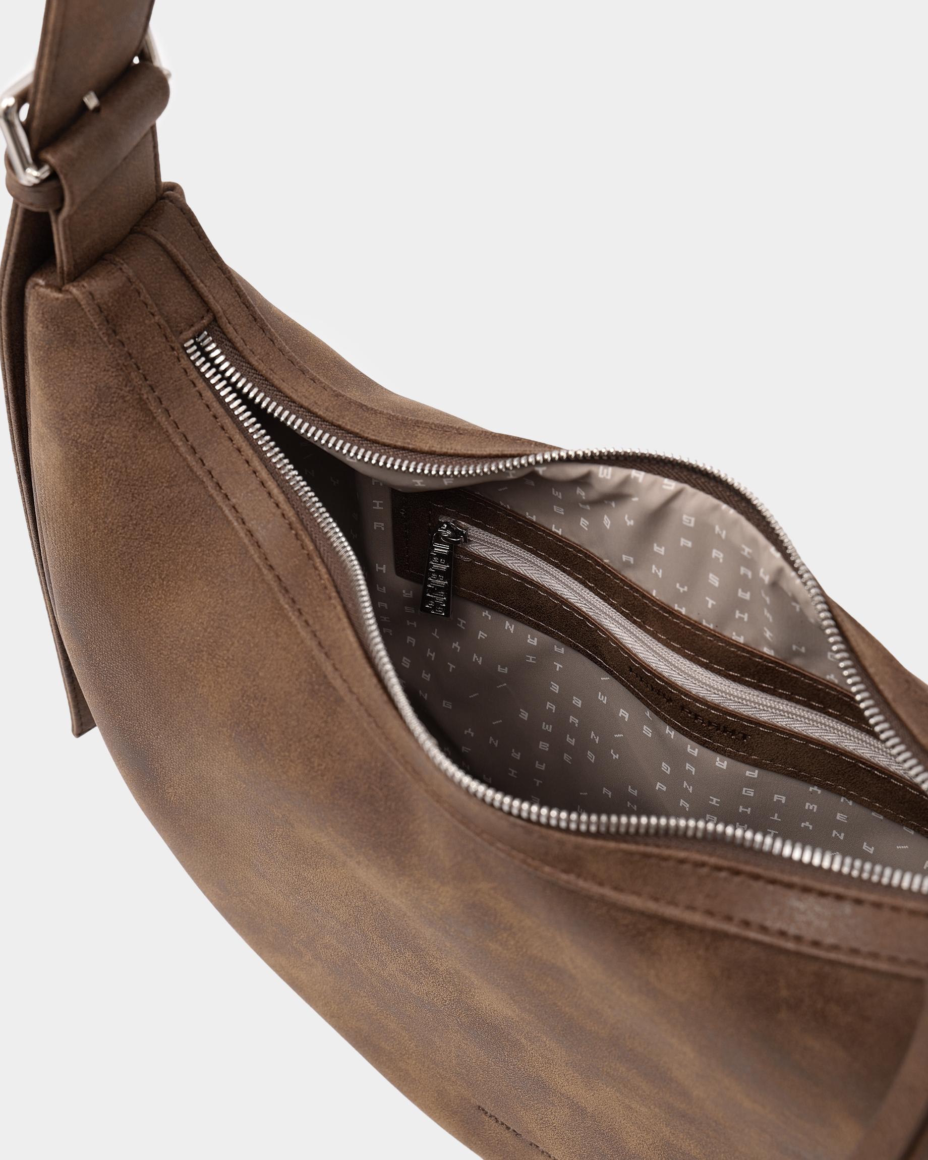 Вместительная сумка-хобо полукруглой формы с регулируемым ремнем из замшевой экокожи