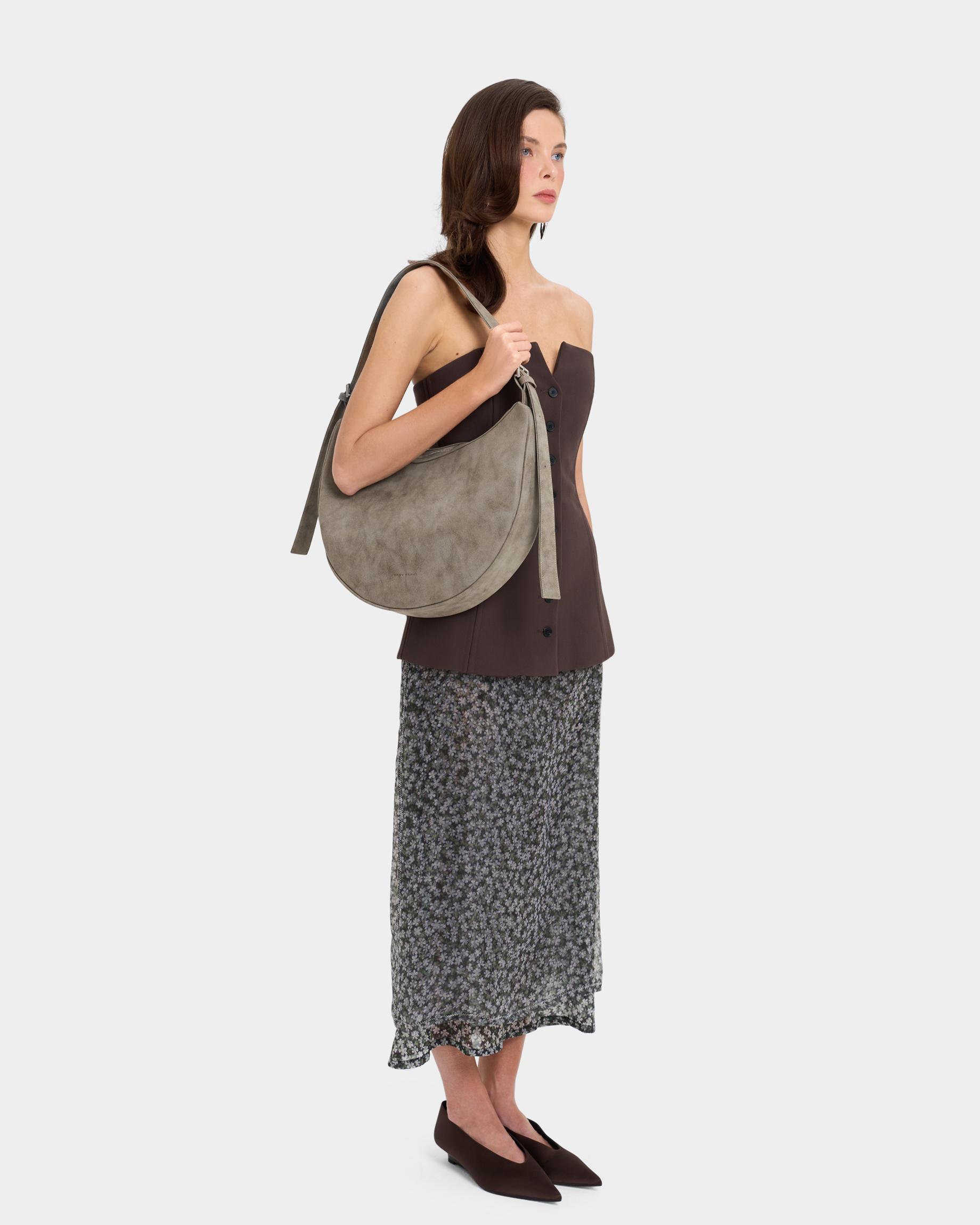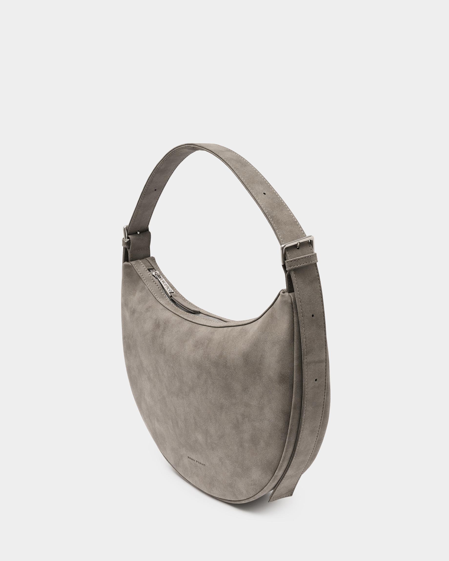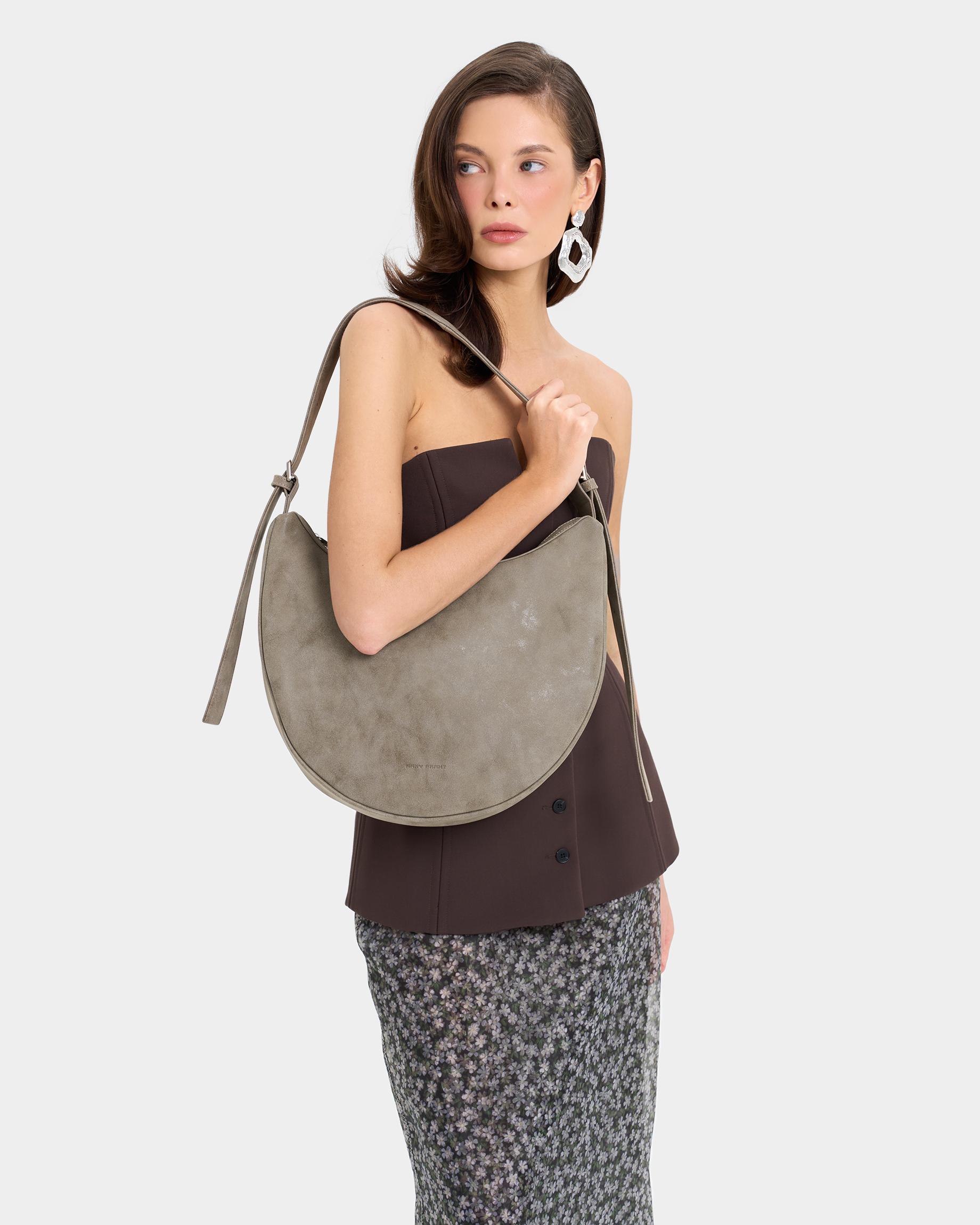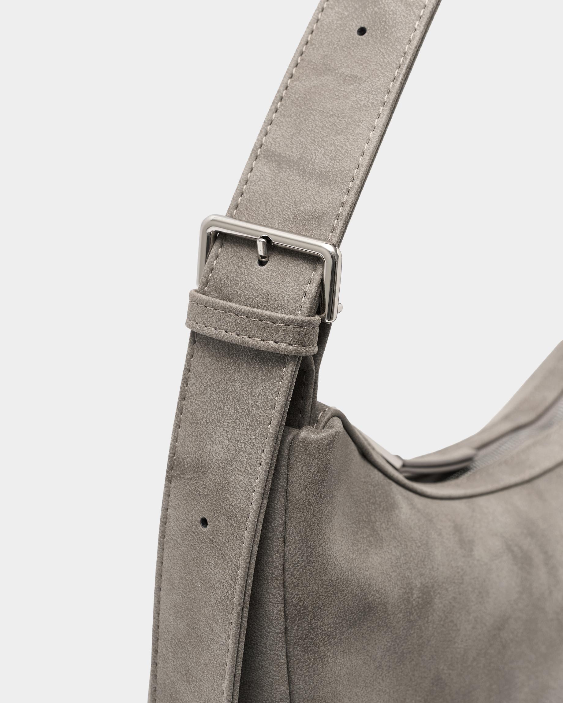 Вместительная сумка-хобо полукруглой формы из замшевой экокожи с регулируемым ремнем