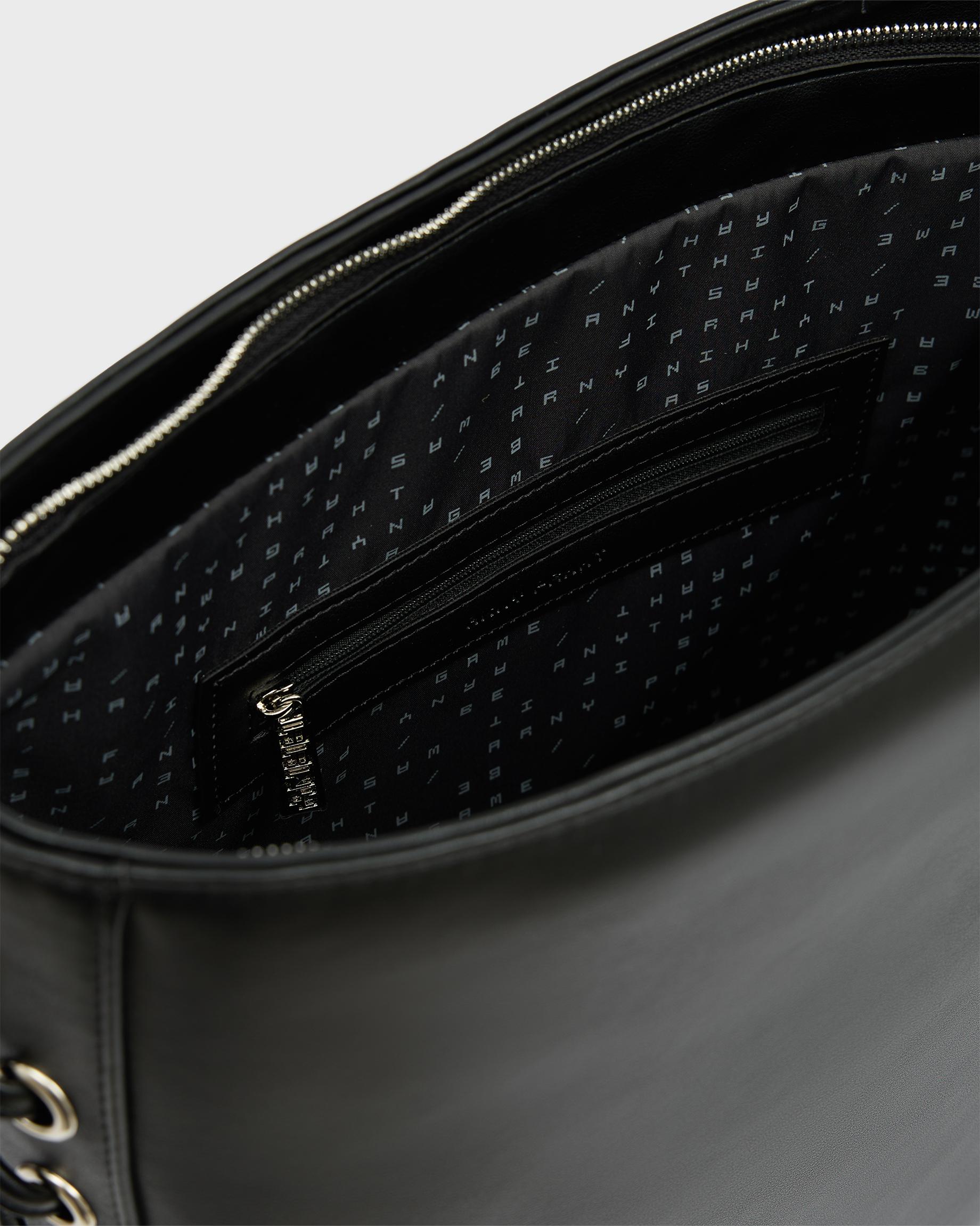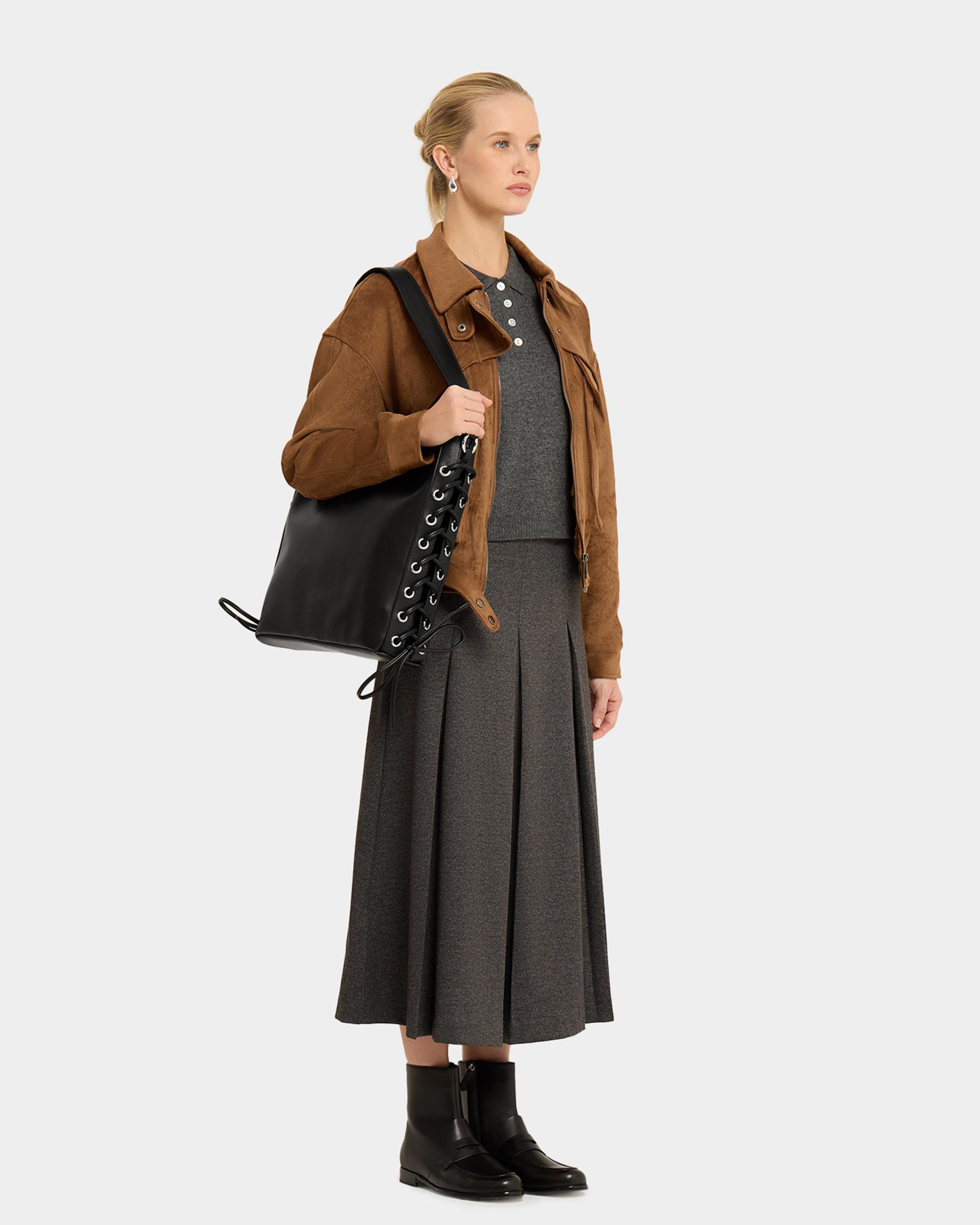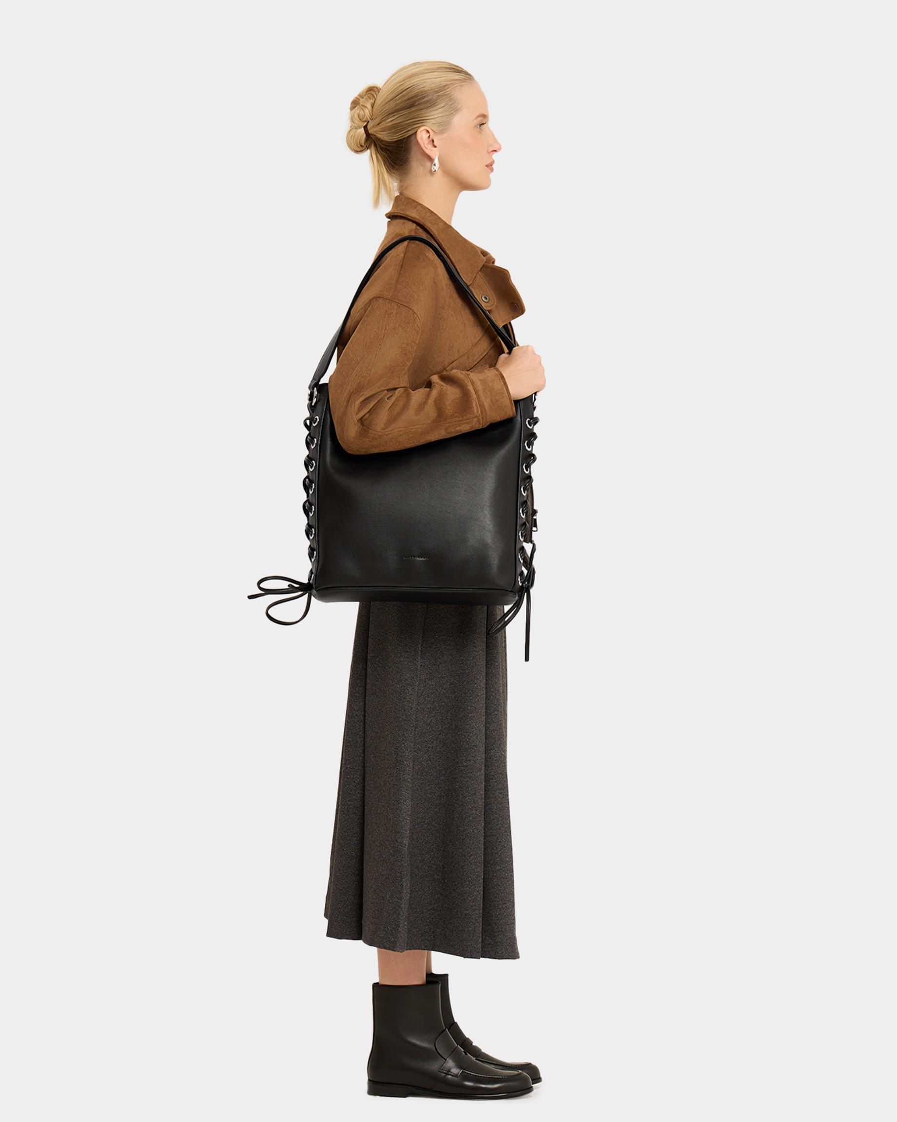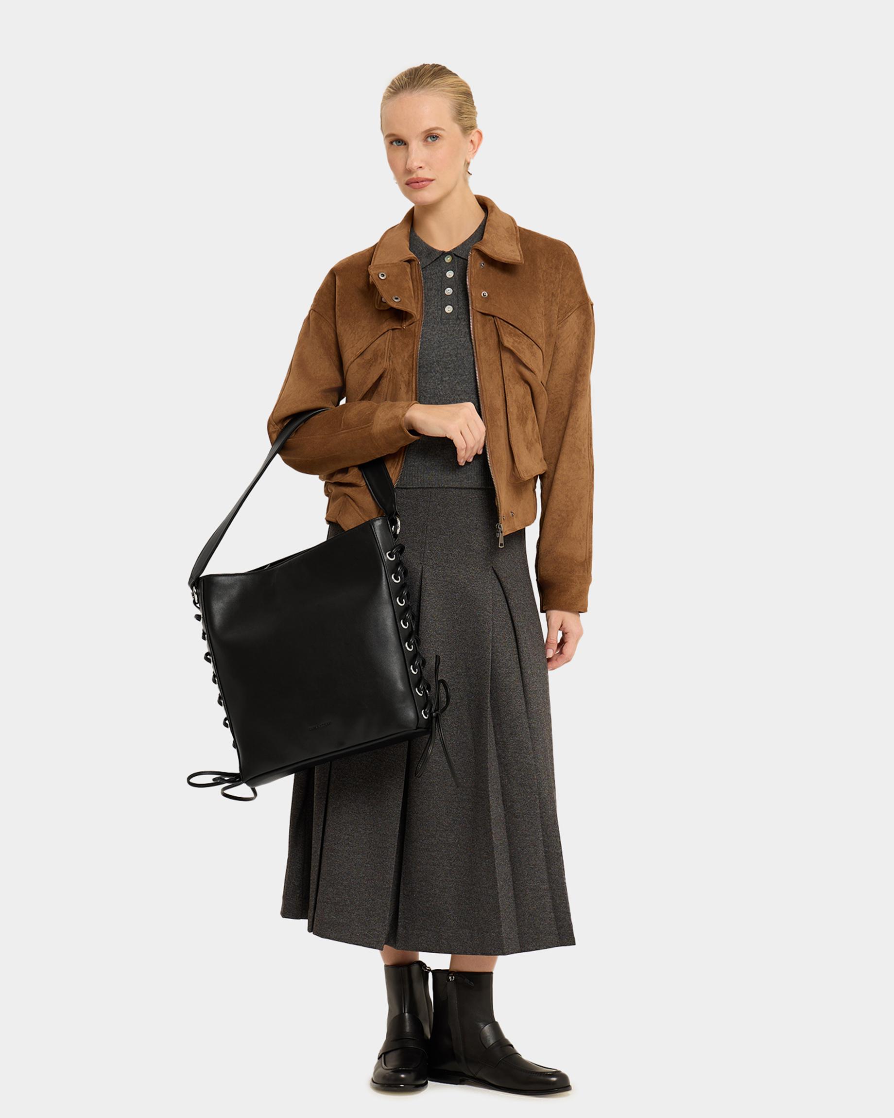 Прямоугольный шопер с декоративной шнуровкой по бокам в черном цвете