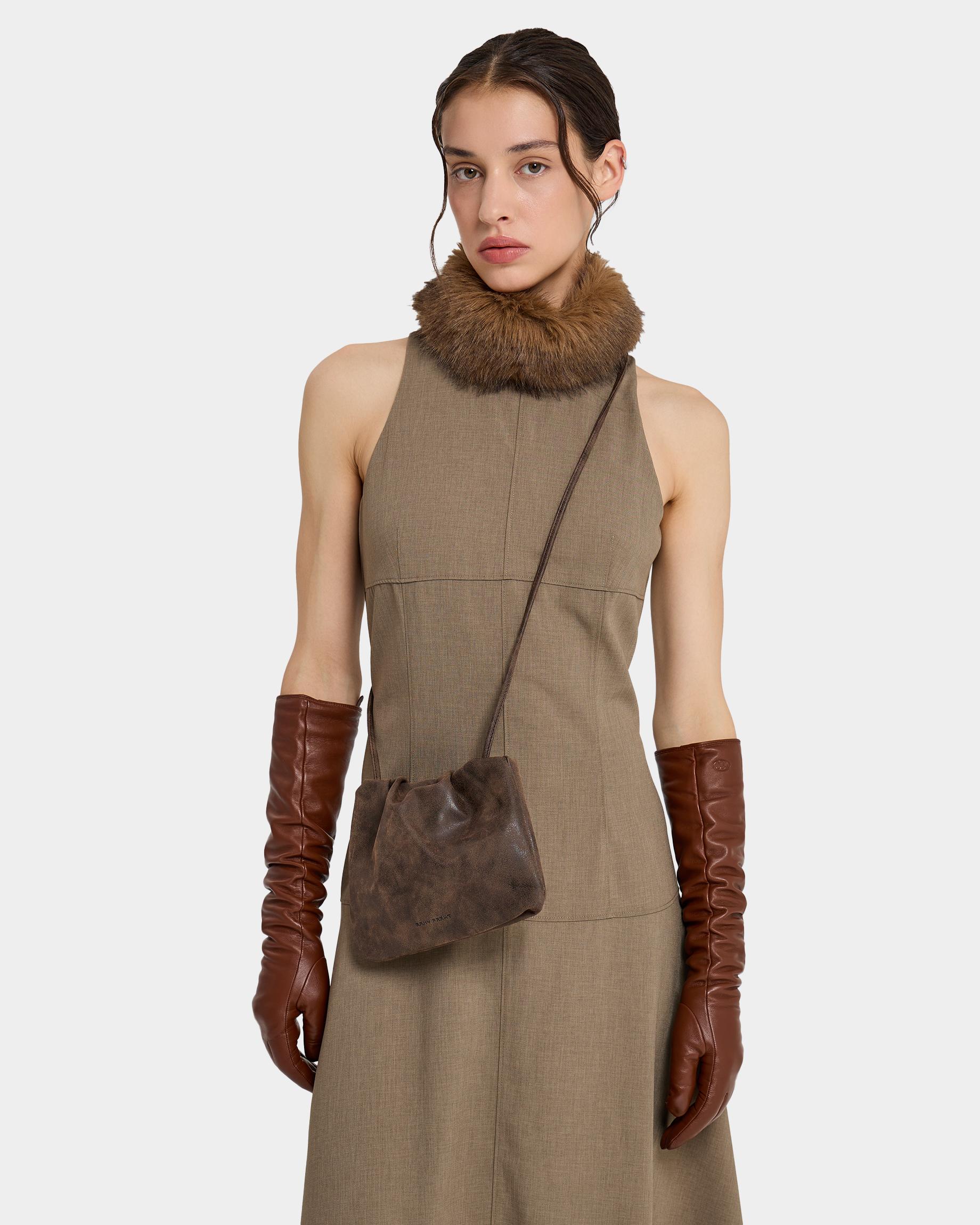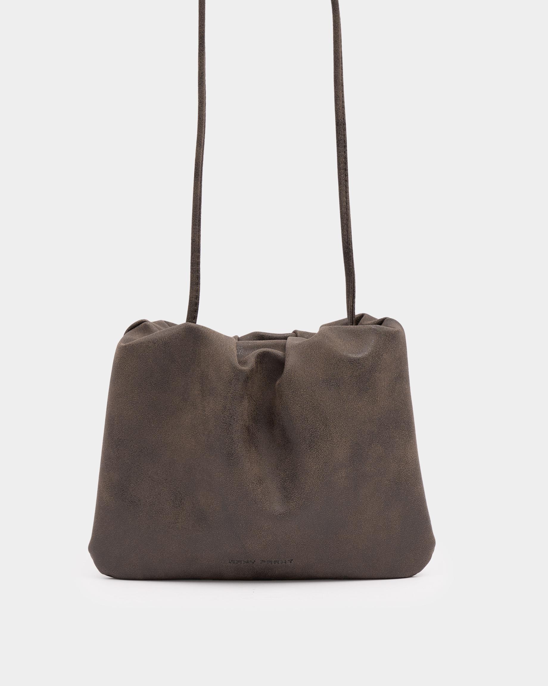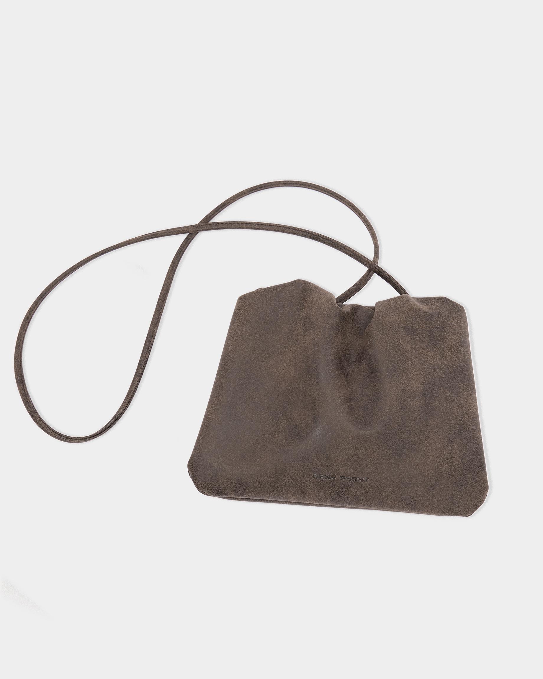 Небольшая мягкая сумка-кисет из замшевой экокожи в цвете брауни