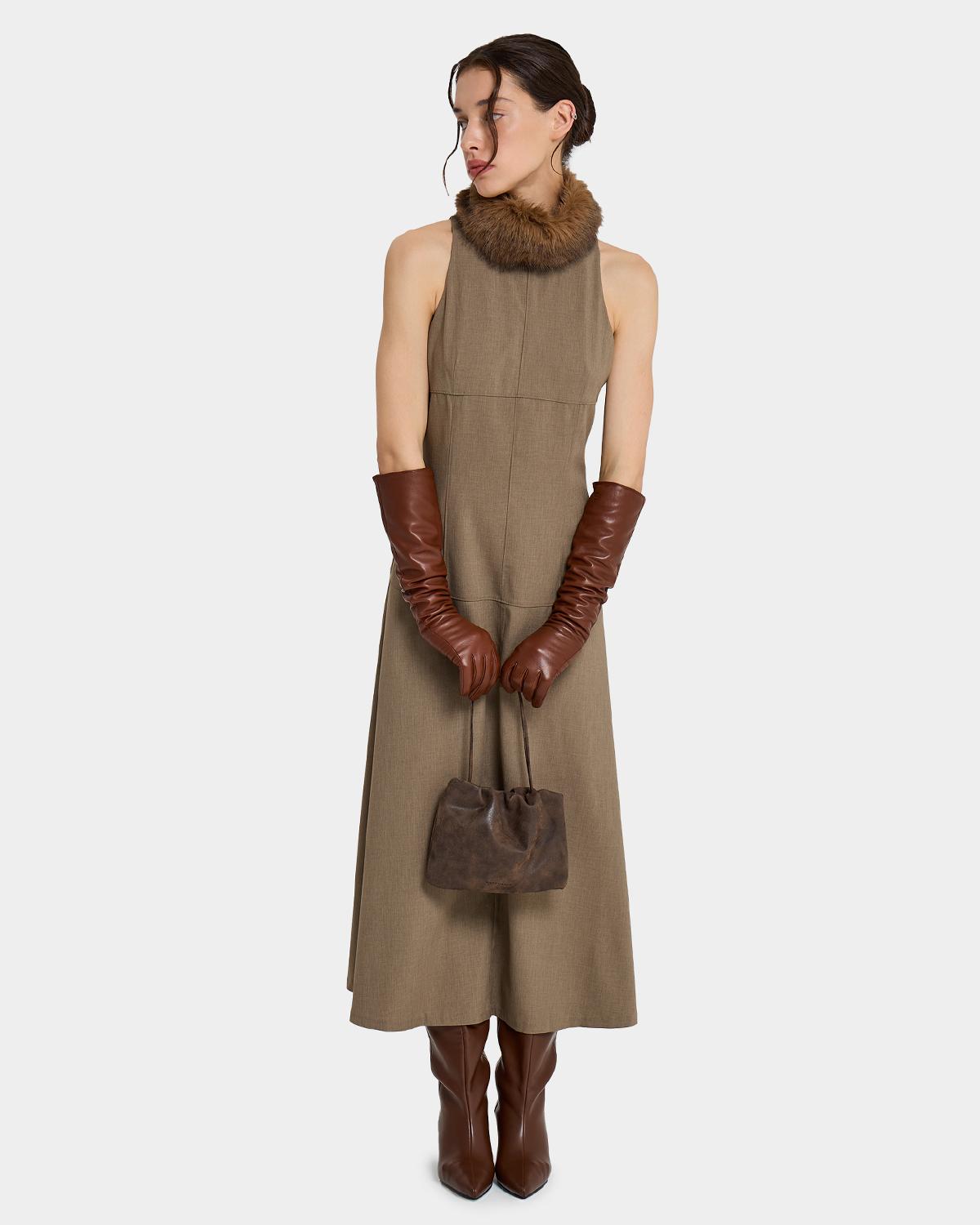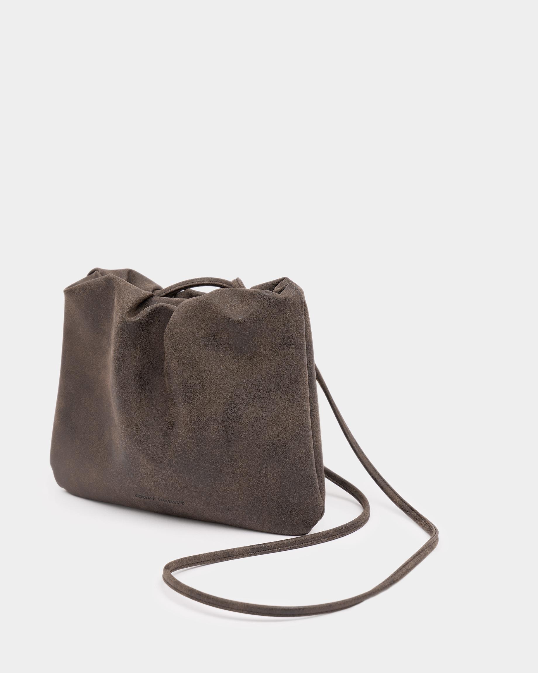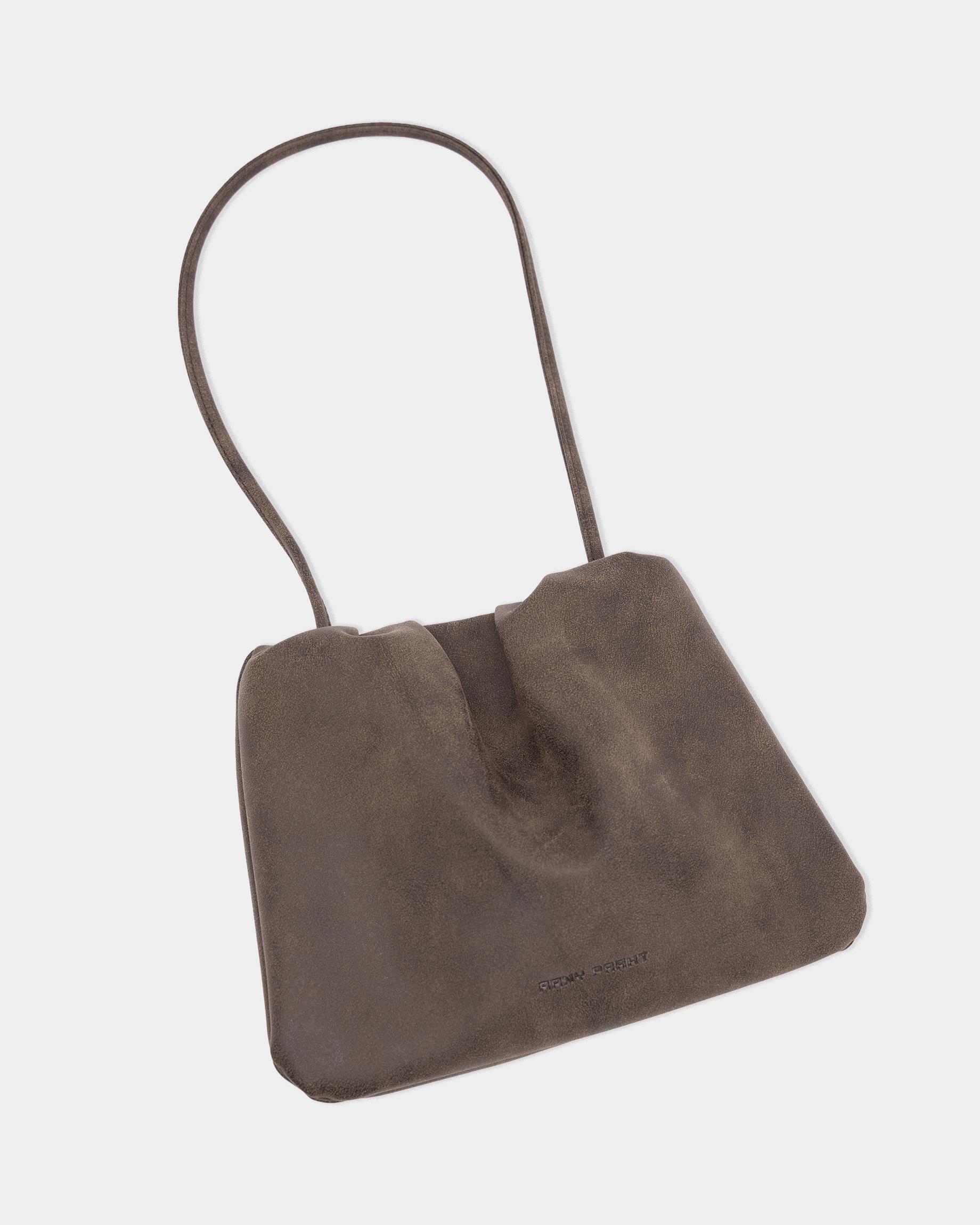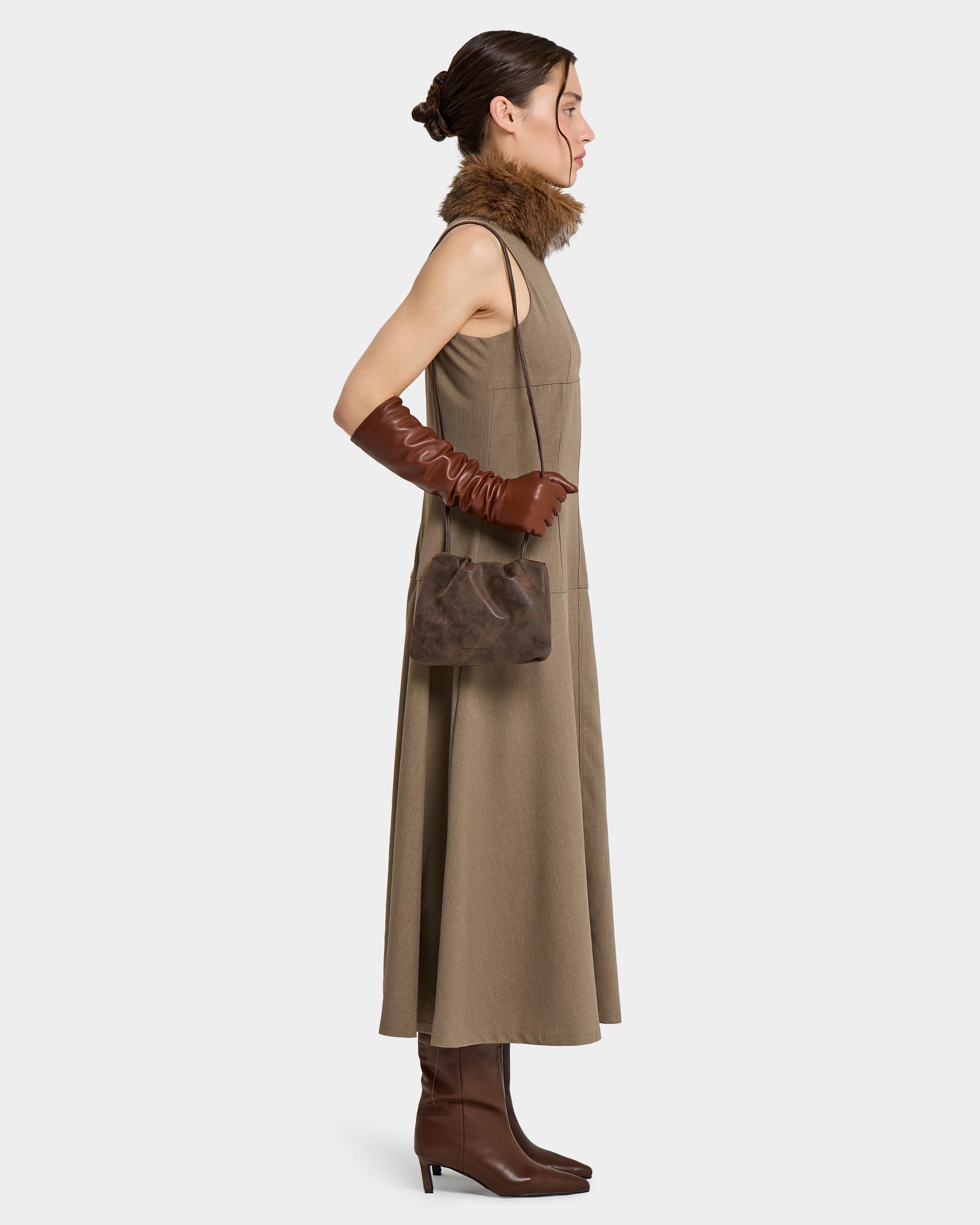 Небольшая мягкая сумка-кисет из замшевой экокожи в цвете брауни