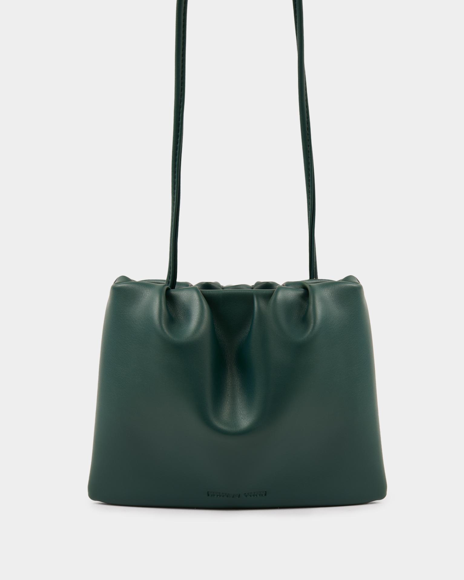 Небольшая мягкая сумка-кисет из экокожи в цвете изумруд