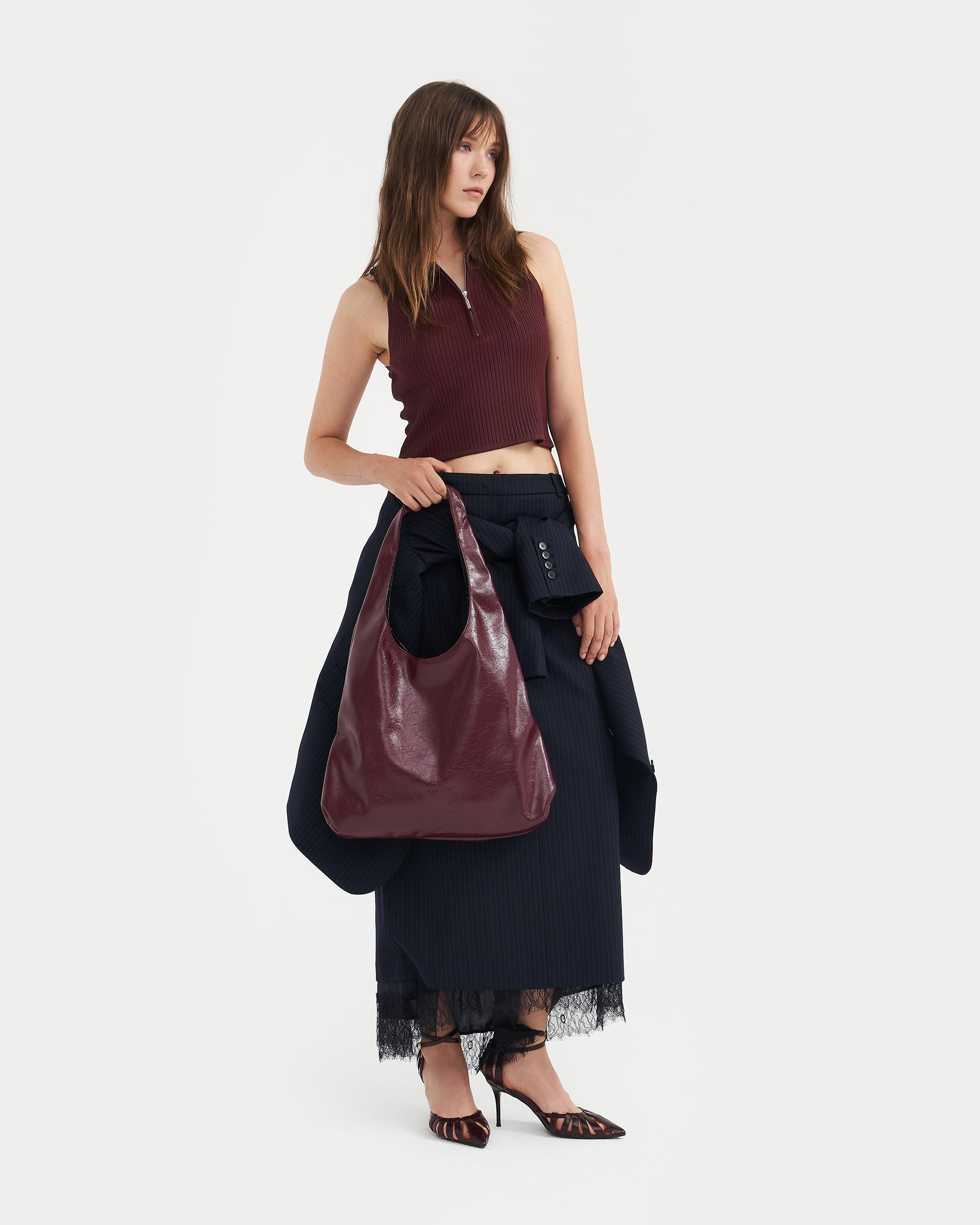 Мягкая сумка-шоппер среднего размера из лаковой экокожи