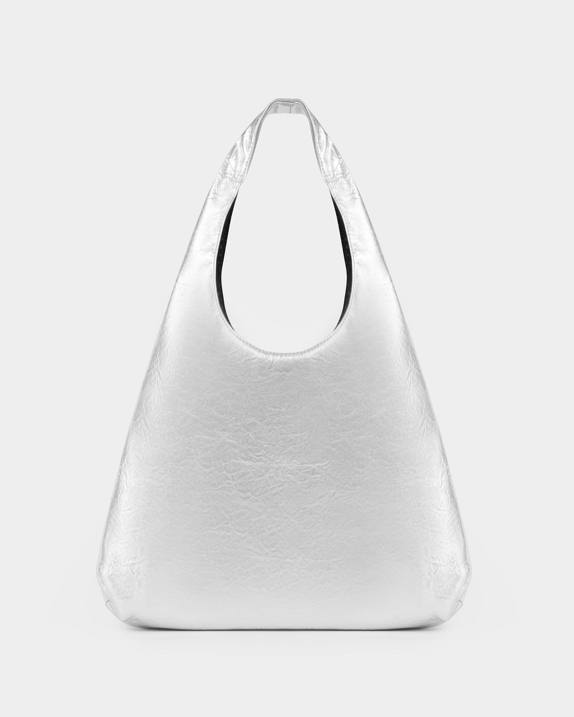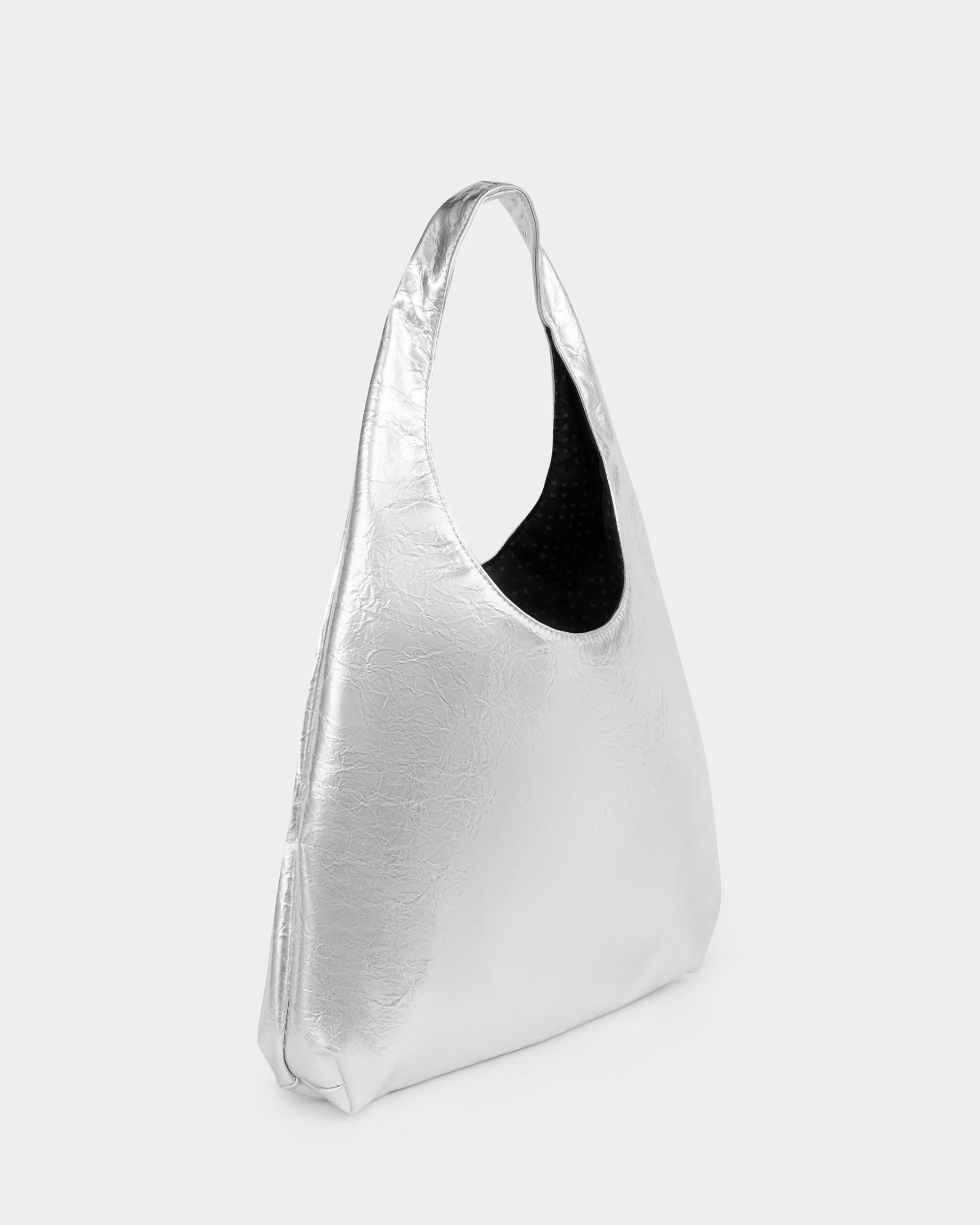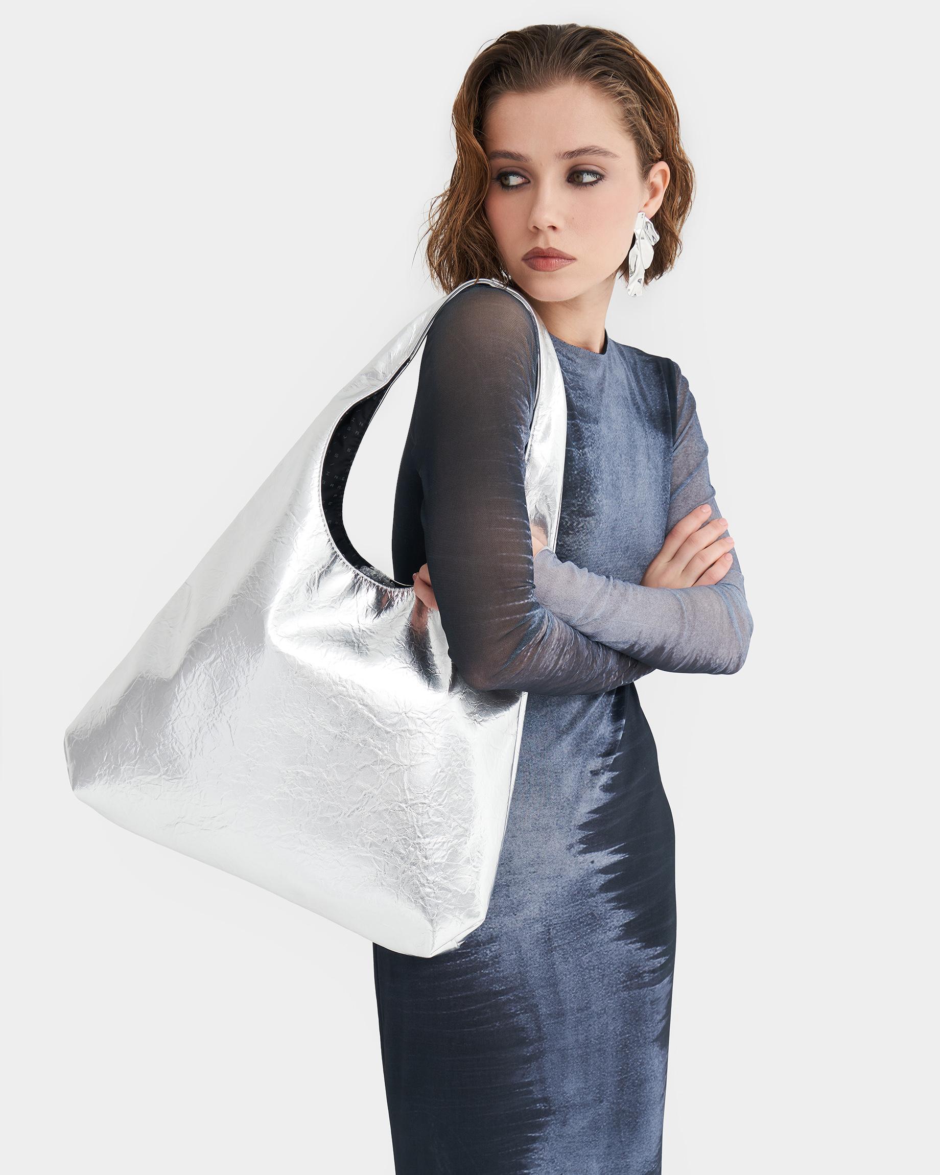Серебристая мягкая женская сумка-шоппер среднего размера