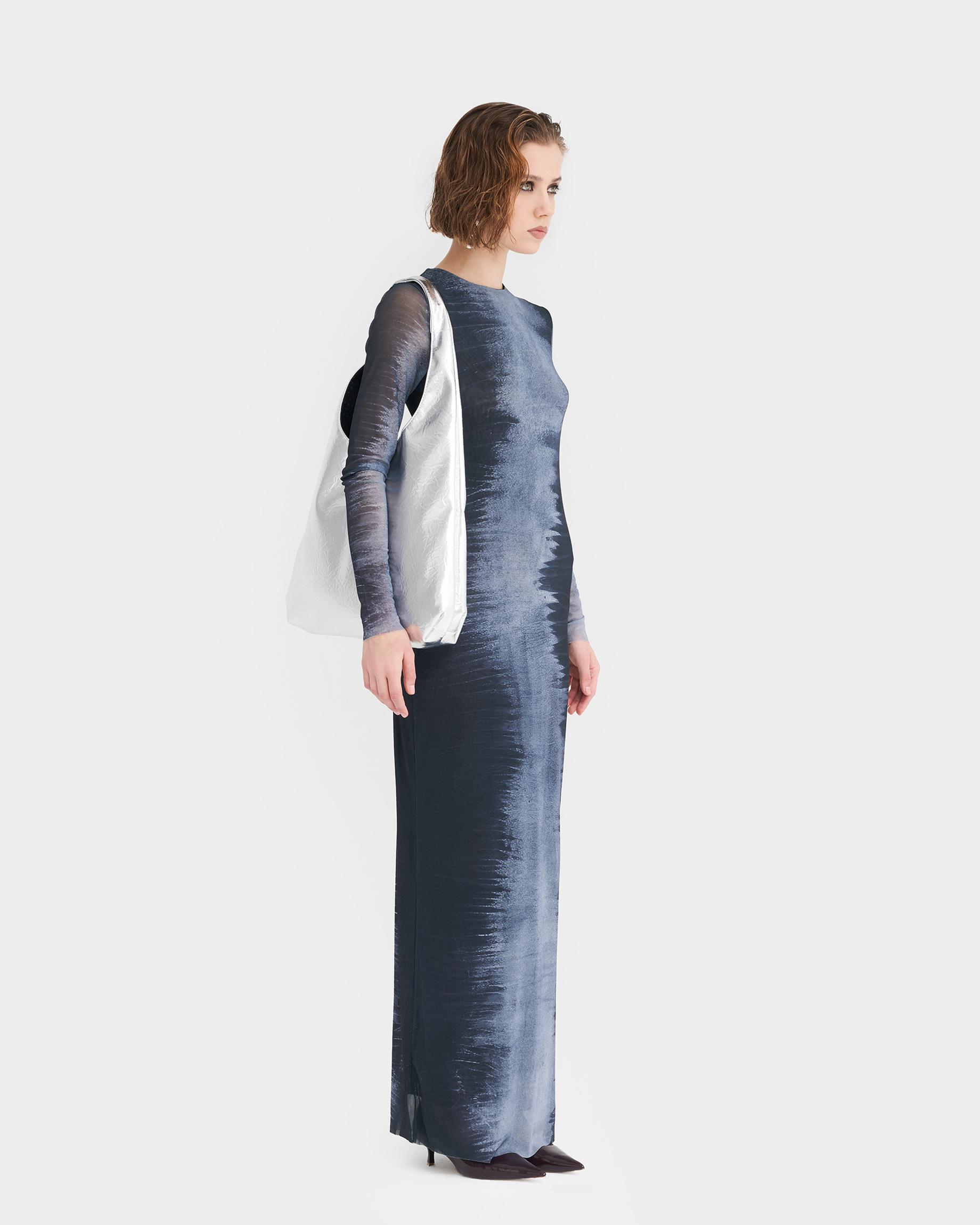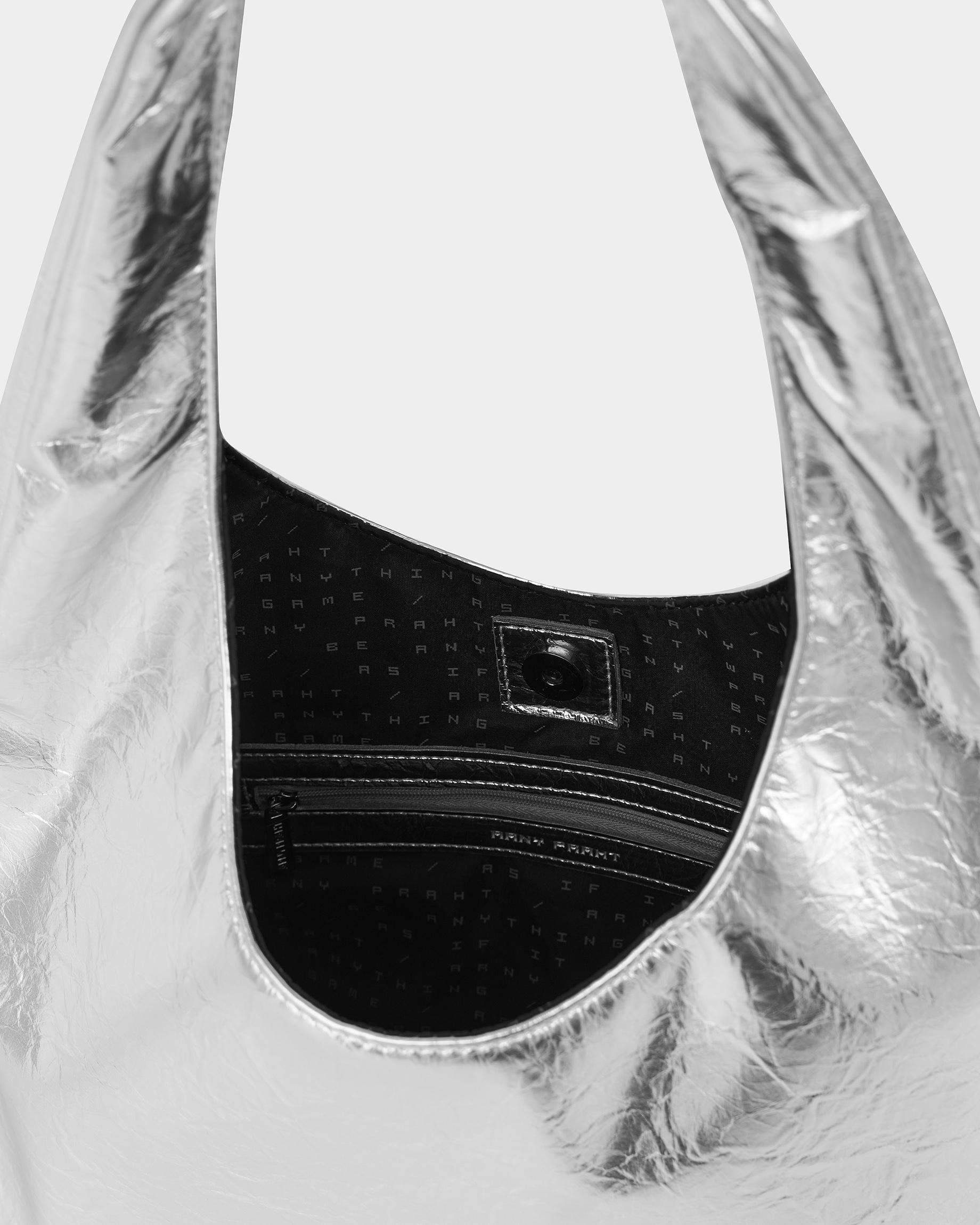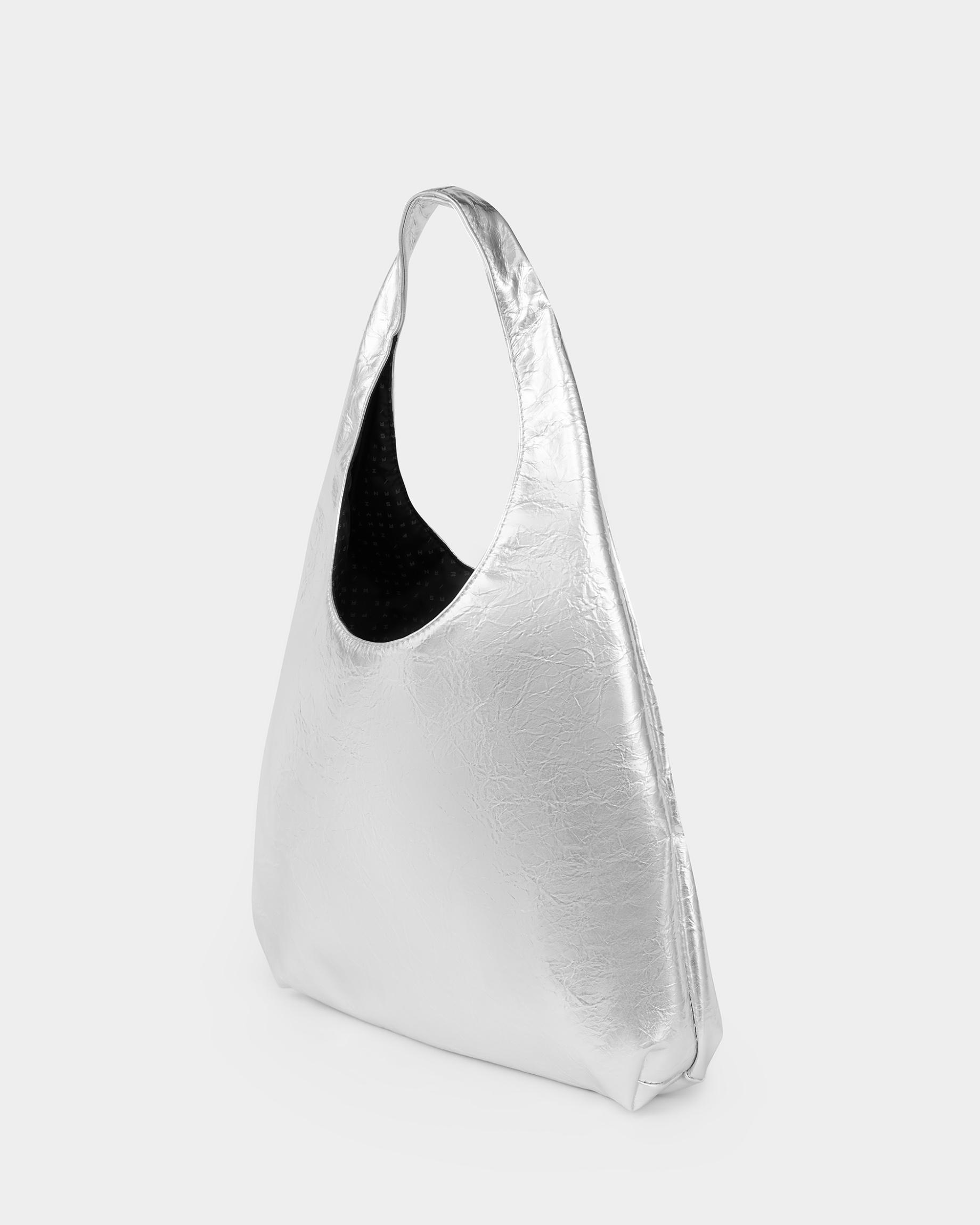 Серебристая мягкая женская сумка-шоппер среднего размера
