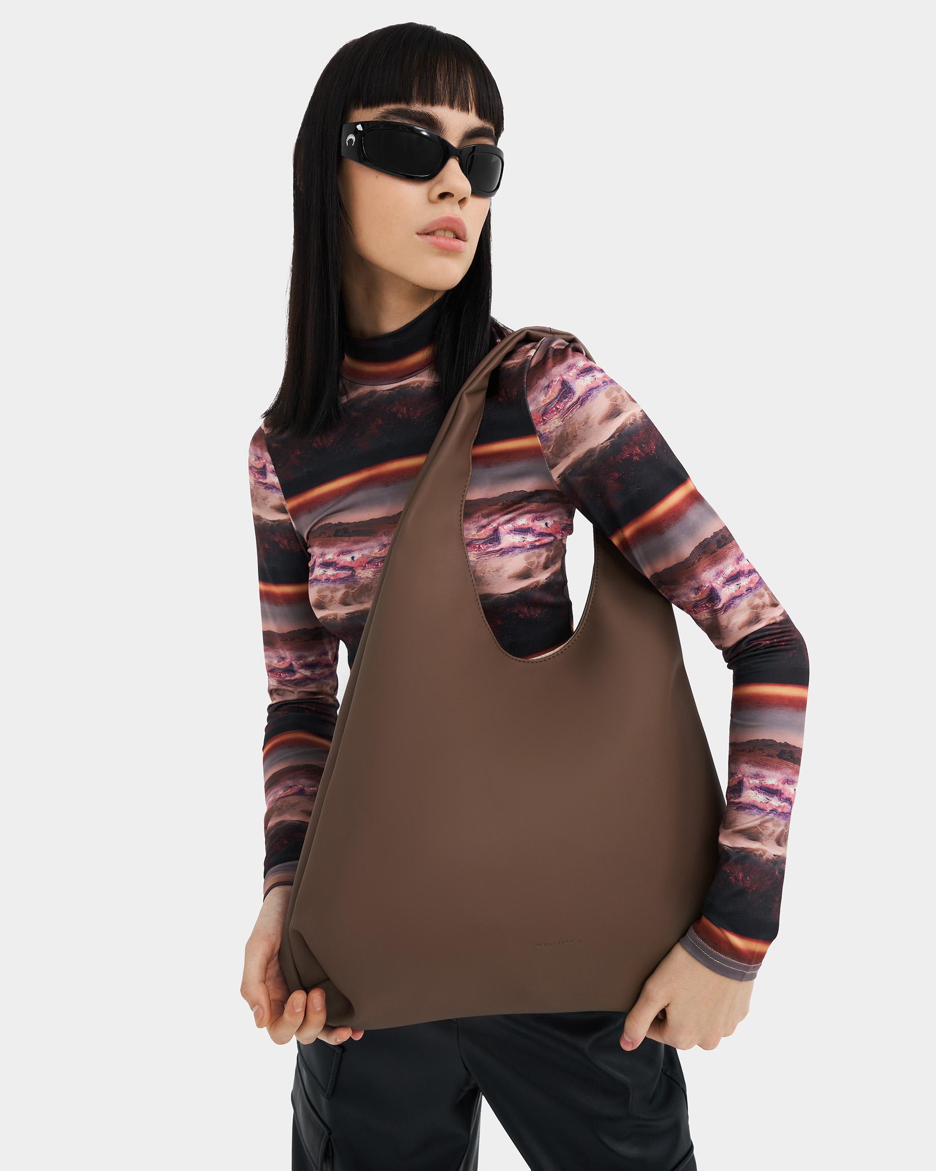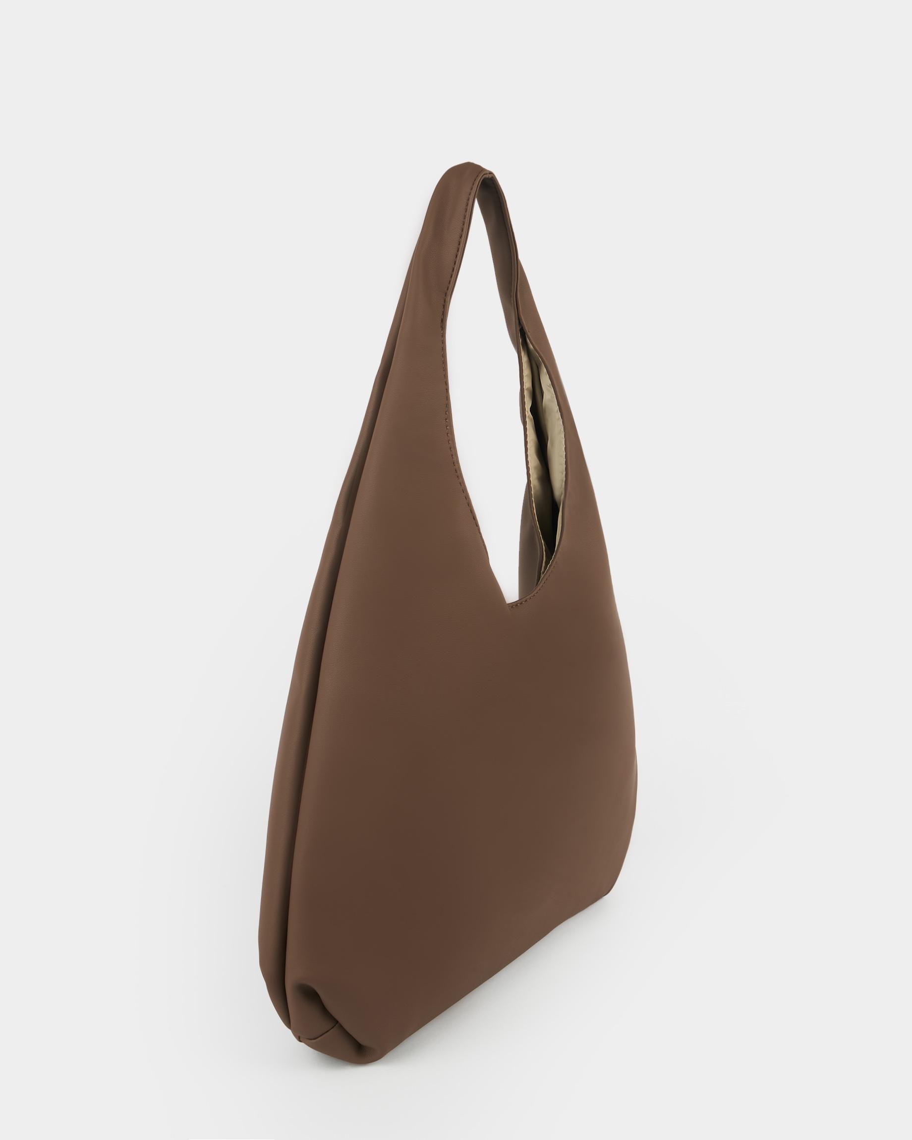Мягкая женская сумка-шоппер среднего размера в цвете тауп