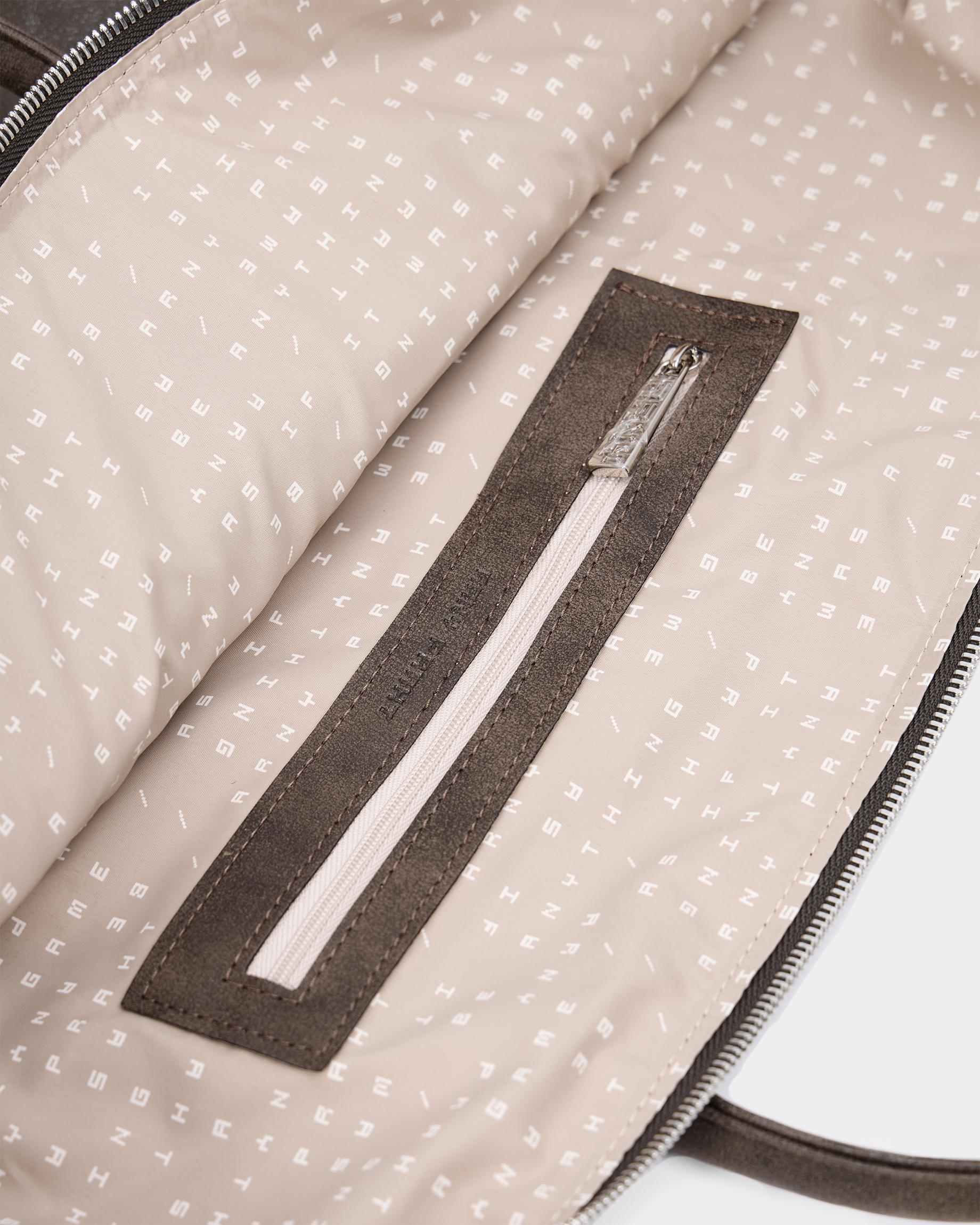 Какая прекрасная текстура замши! Вживую выглядит еще лучше, чем на фото. Про вместимость вообще молчу - вся моя тренировочная форма влезла и даже для ноута место осталось. Отдельное спасибо за ремень через плечо )