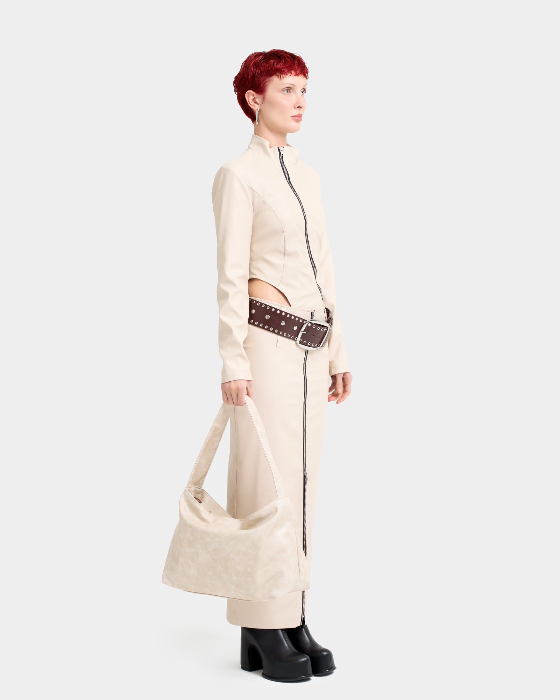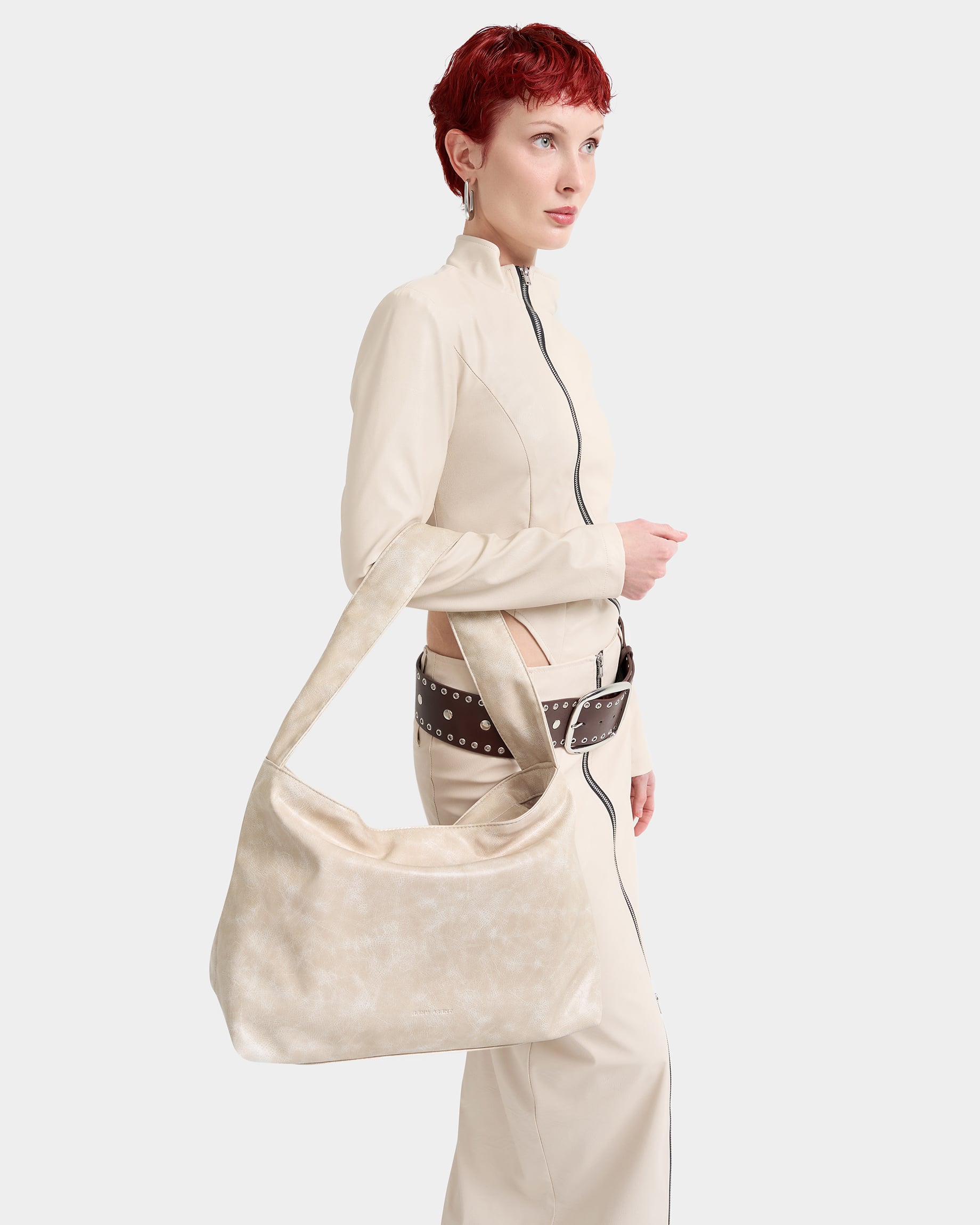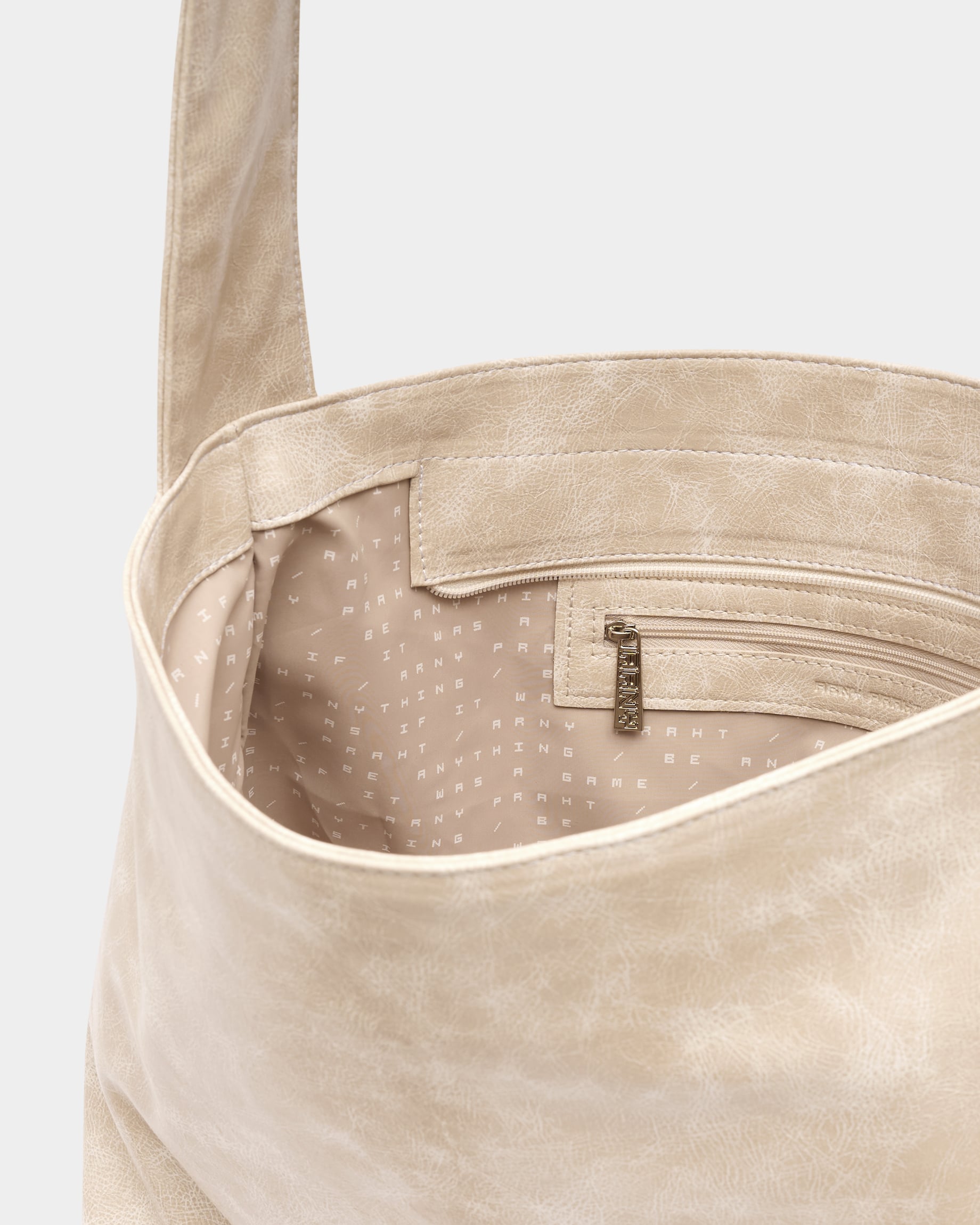 Вместительная прямоугольная женская сумка-мешок цвета кремовый кракле Move S