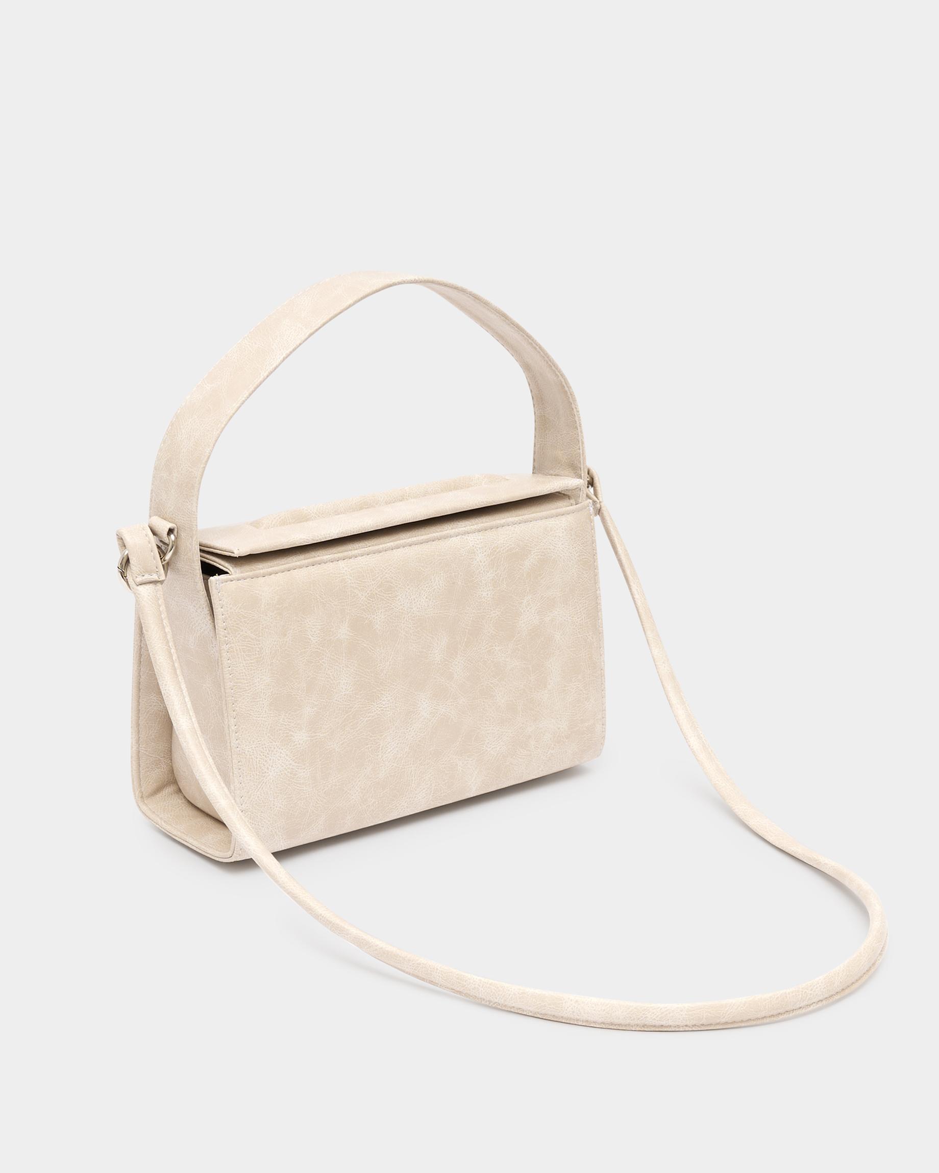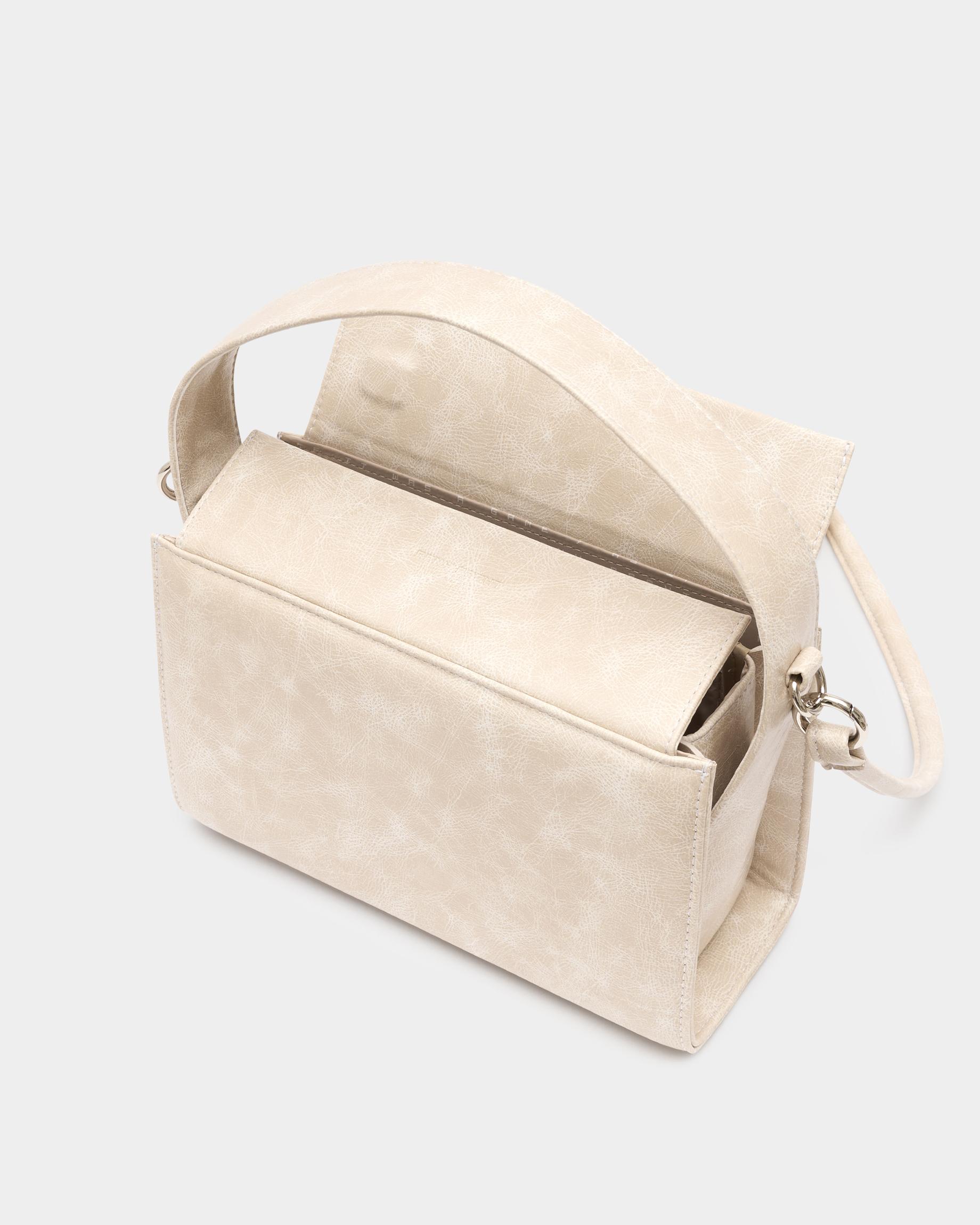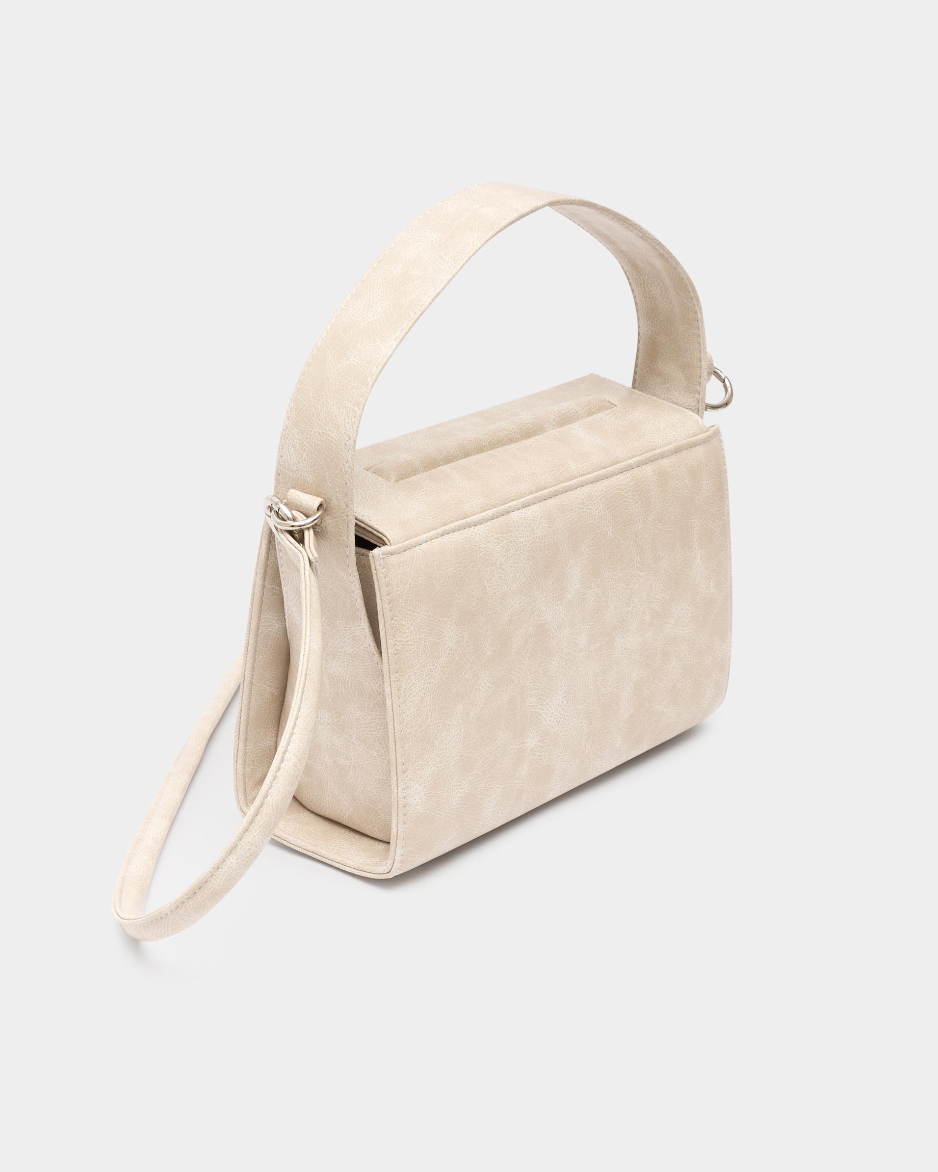 Женская прямоугольная каркасная сумка с рельефом на клапане в цвете кремовый кракле