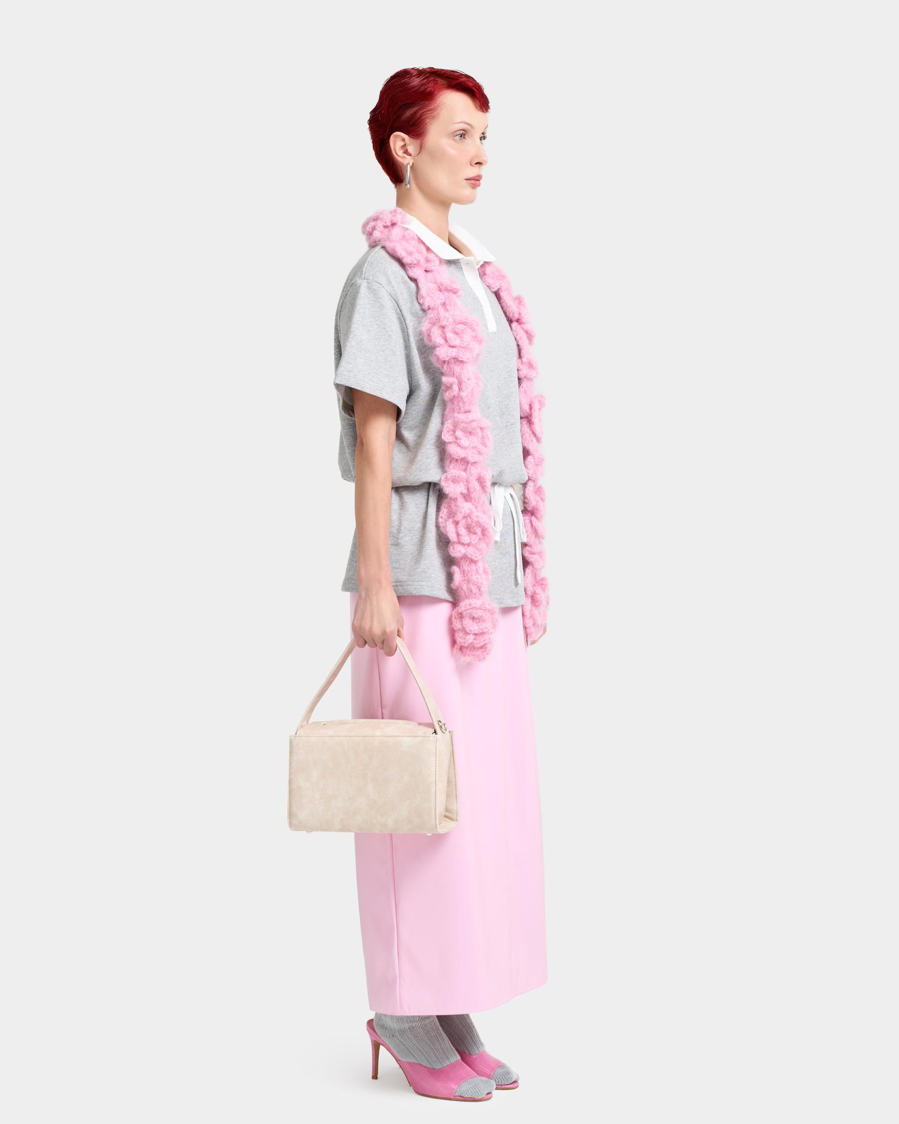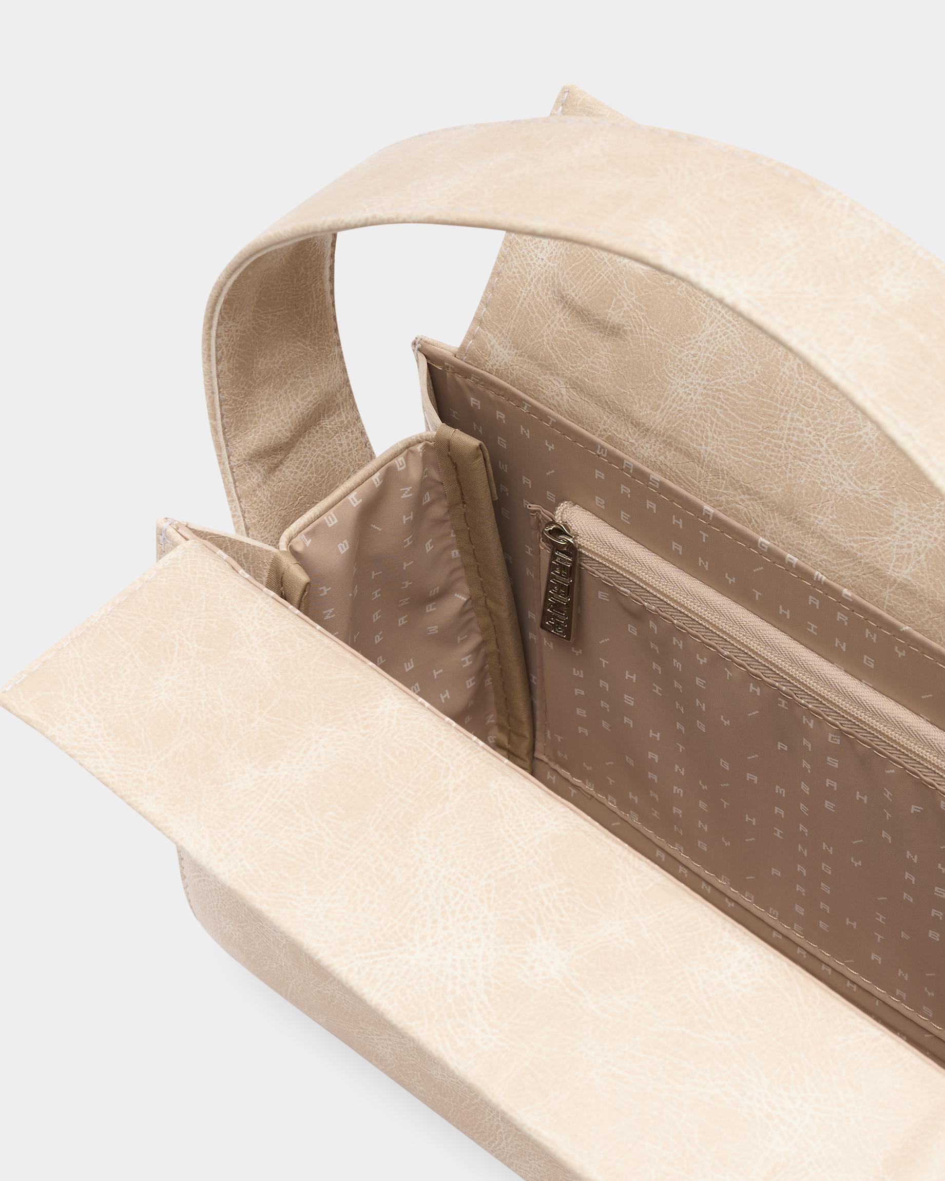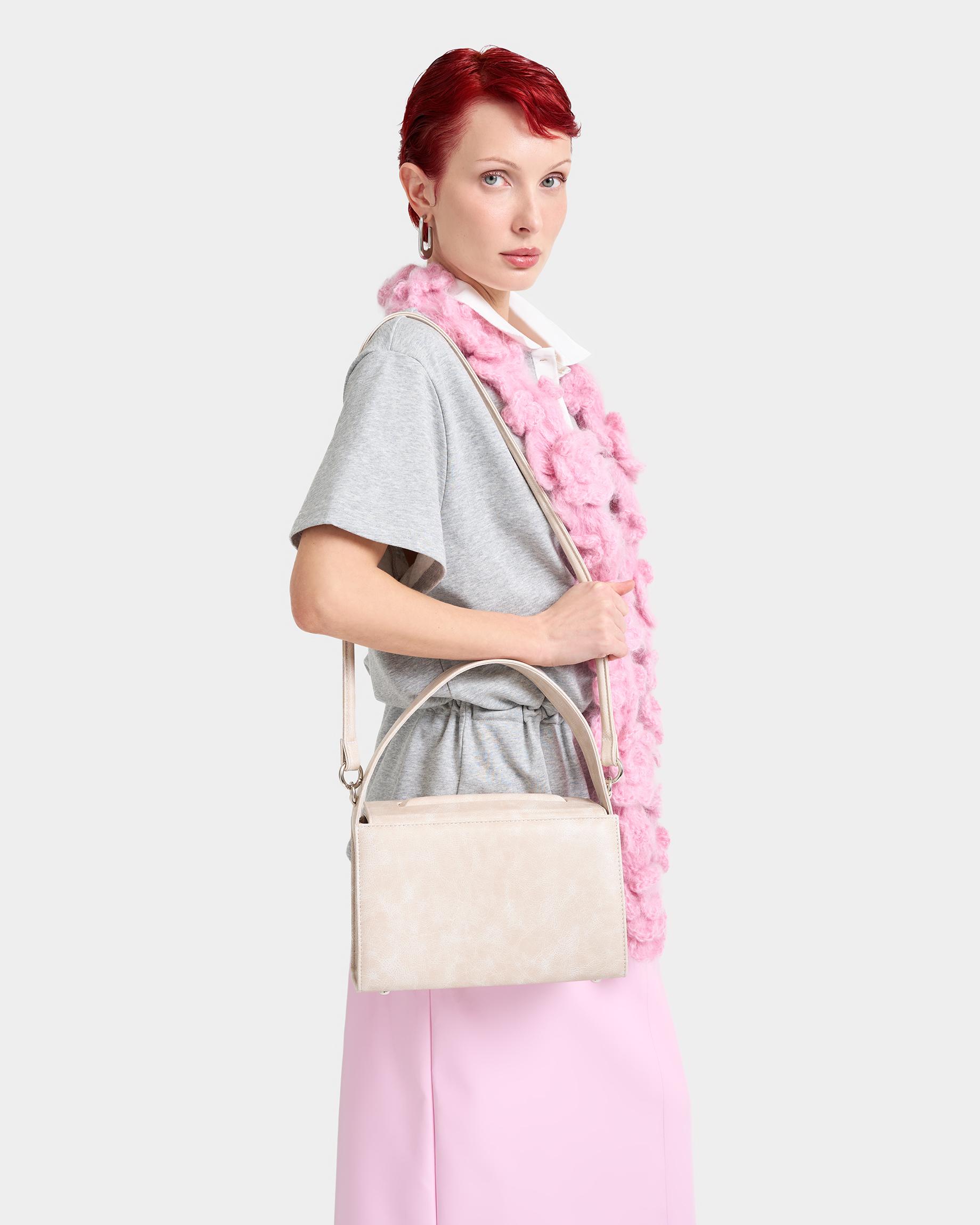 Женская прямоугольная каркасная сумка с рельефом на клапане в цвете кремовый кракле
