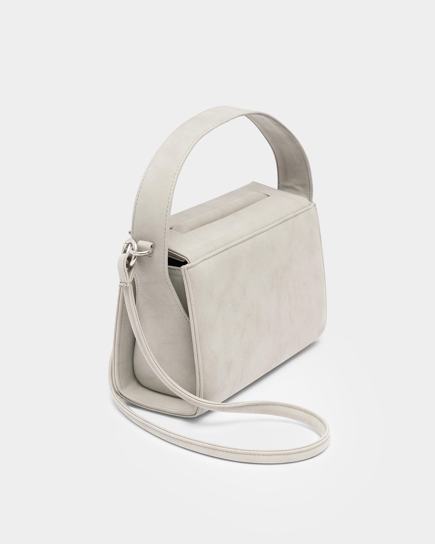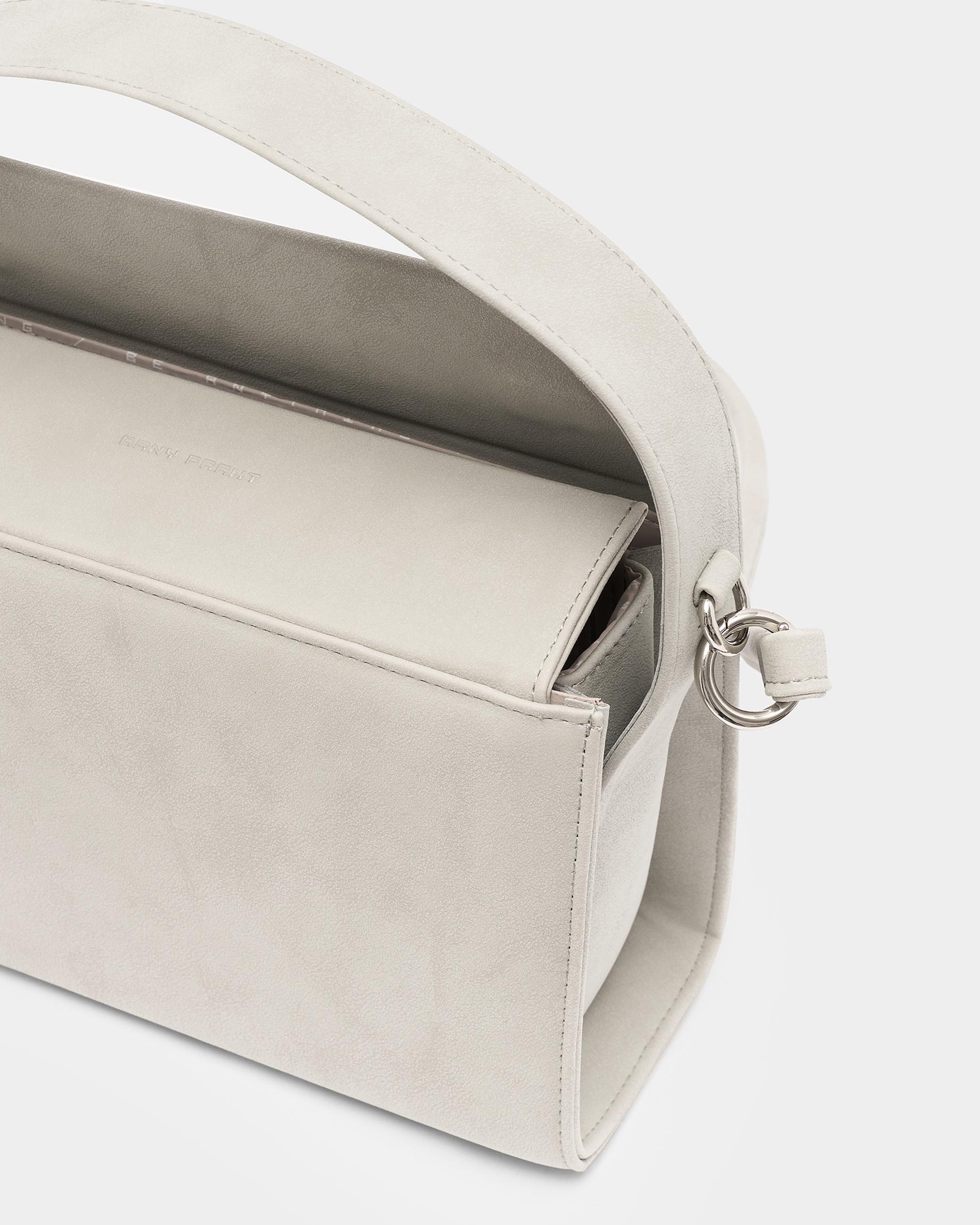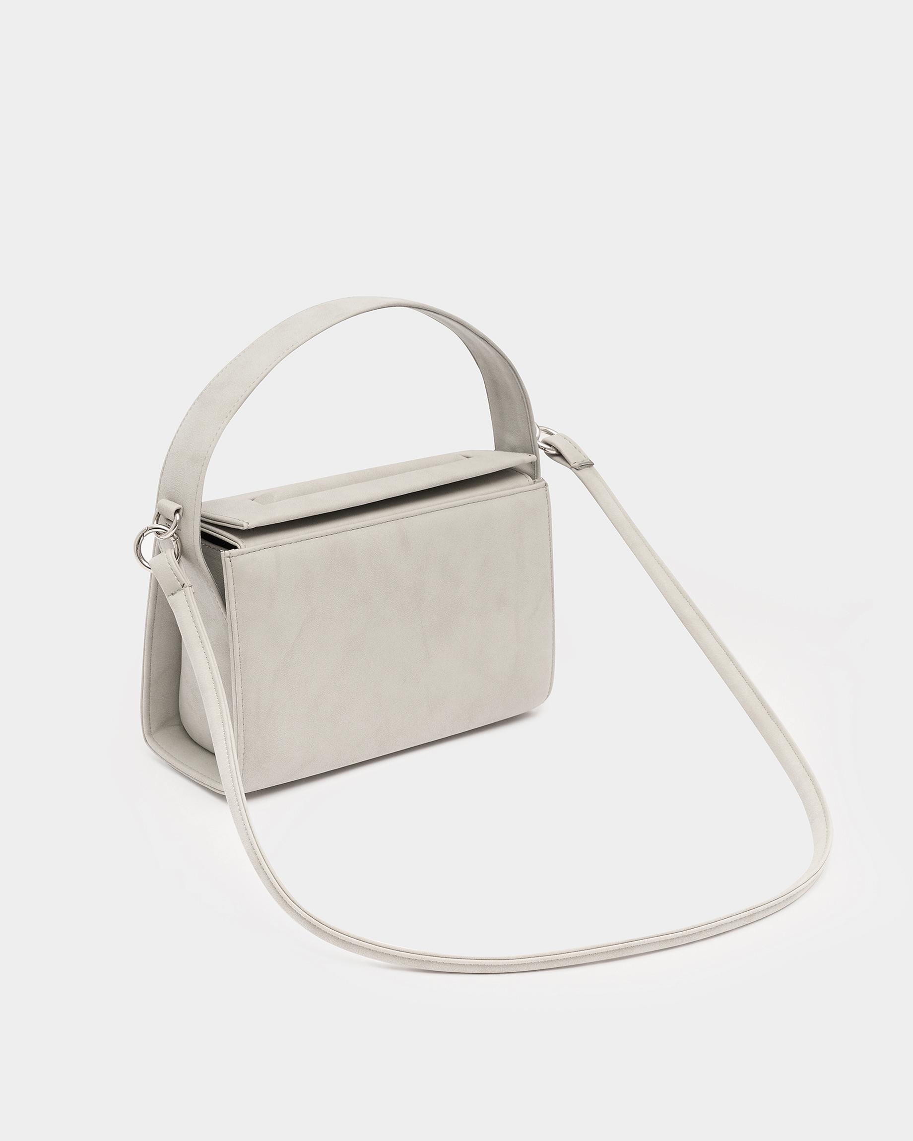 Женская прямоугольная каркасная сумка с рельефом на клапане в цвете жемчужный серый