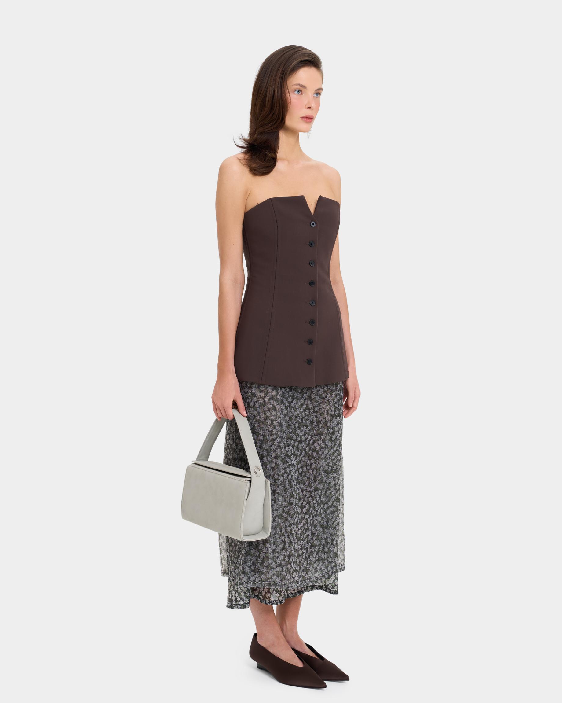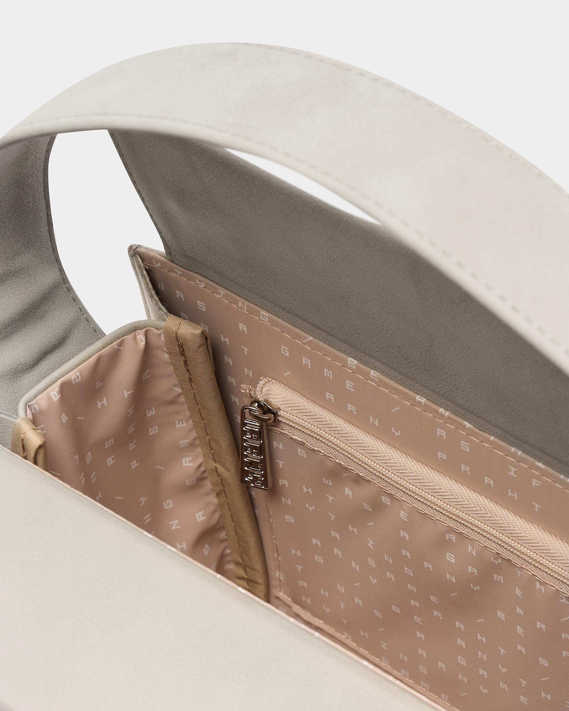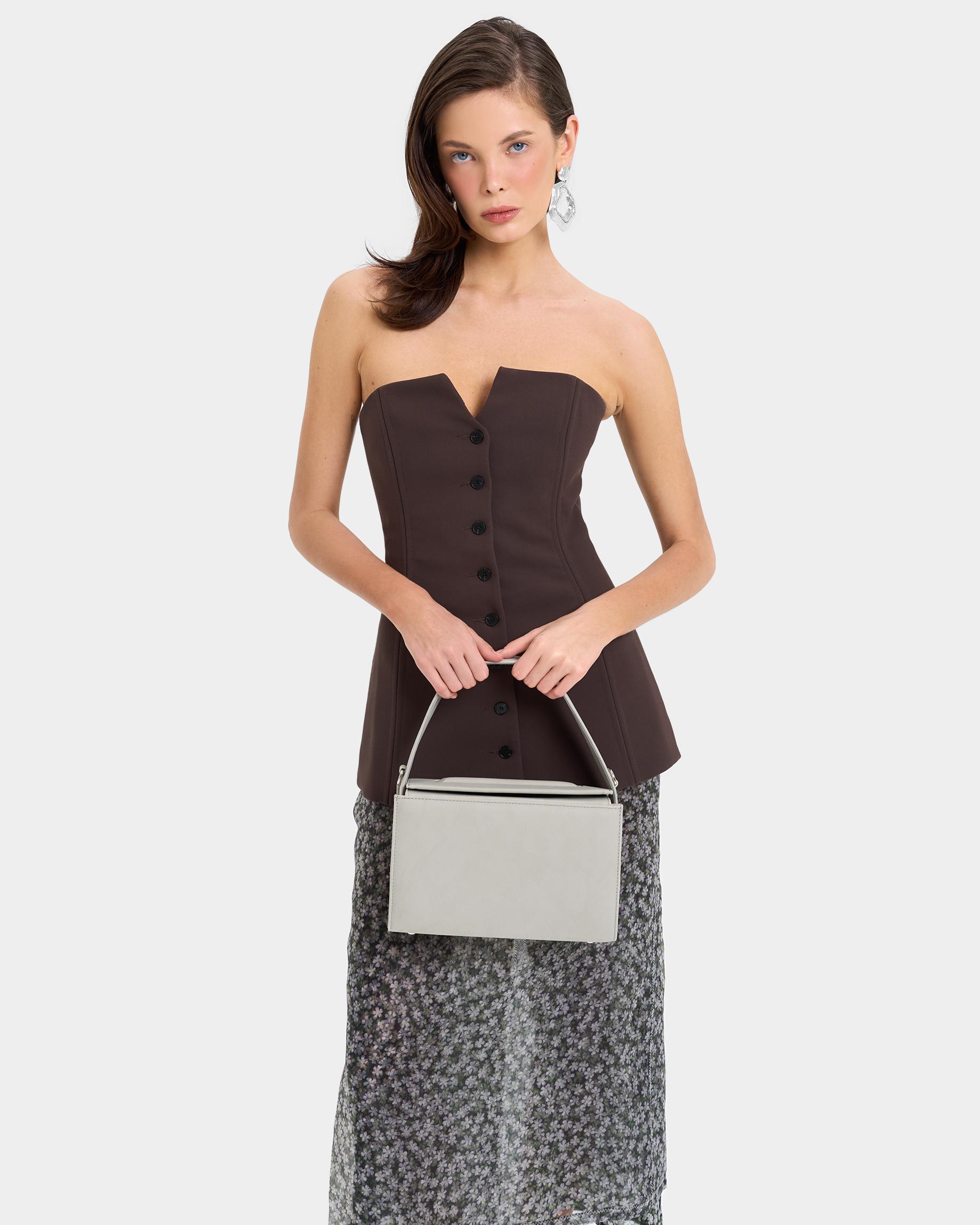 Женская прямоугольная каркасная сумка с рельефом на клапане в цвете жемчужный серый