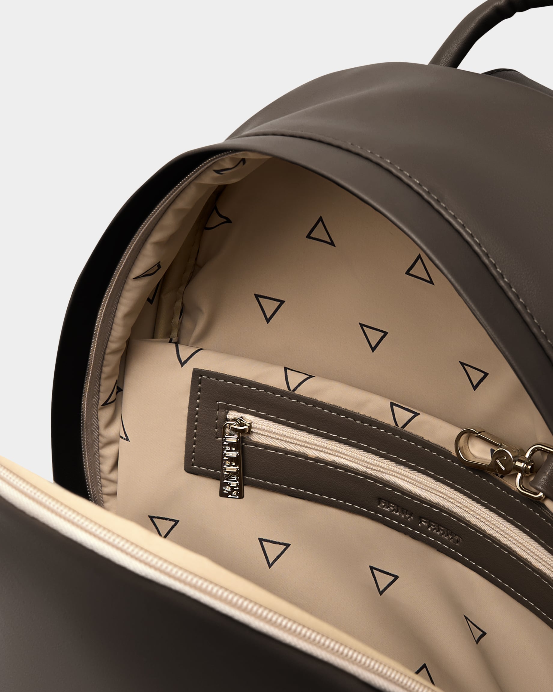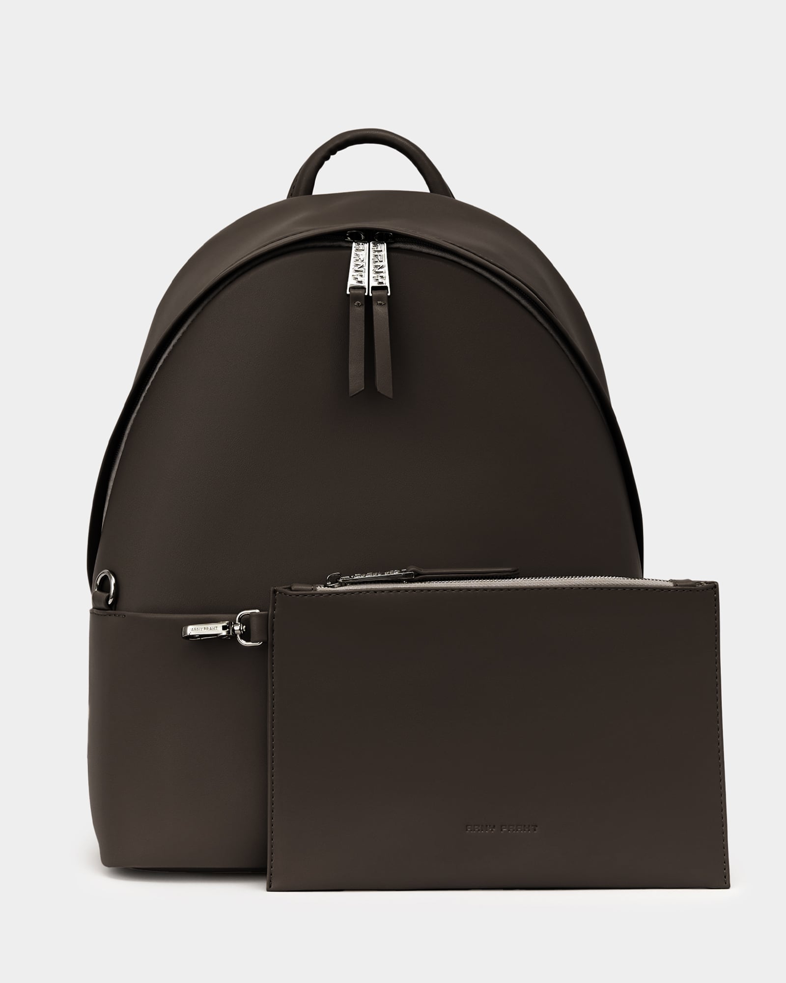 Вместительный рюкзак для ноутбука 13" из замшевой экокожи с широкими лямками в коричневом цвете