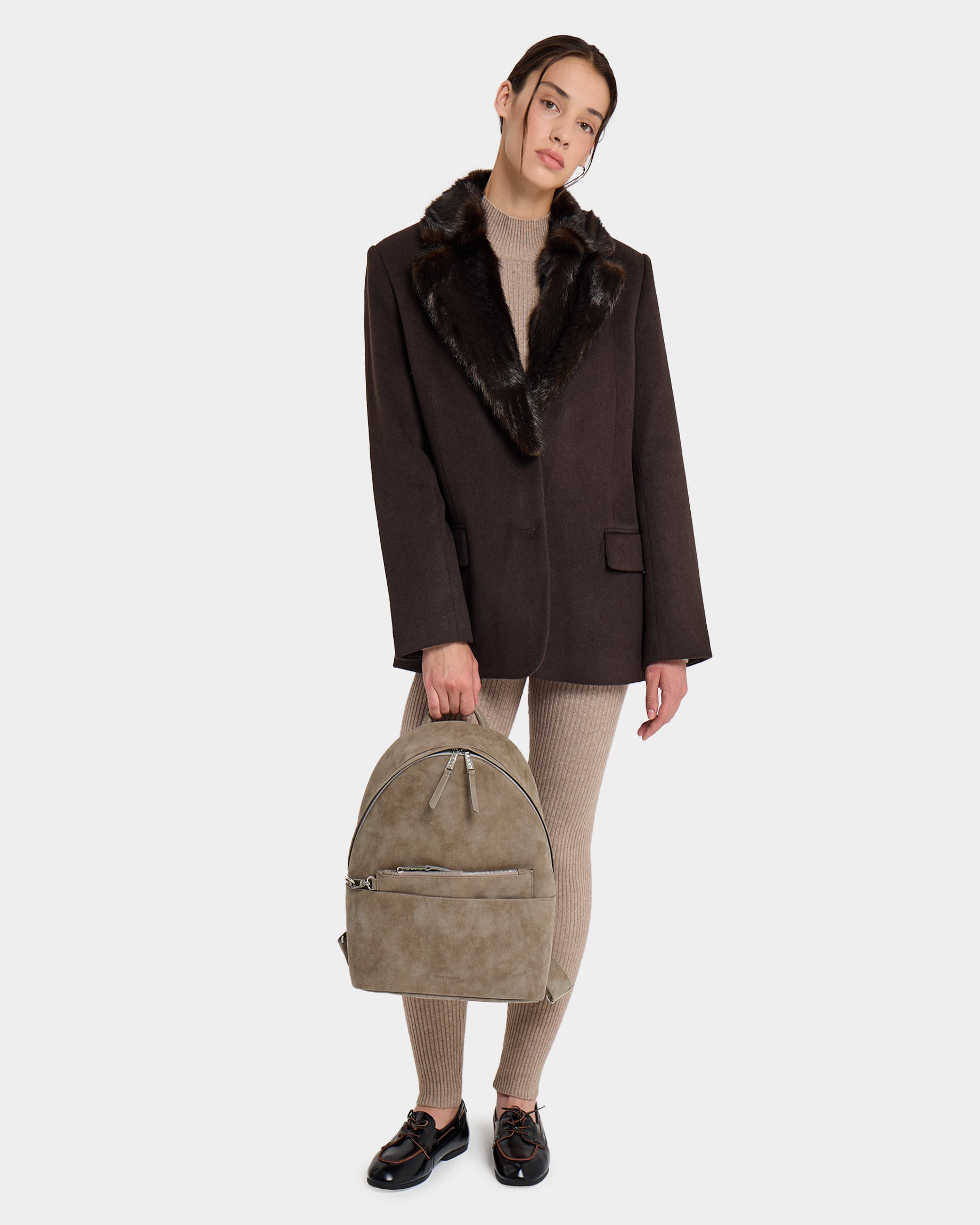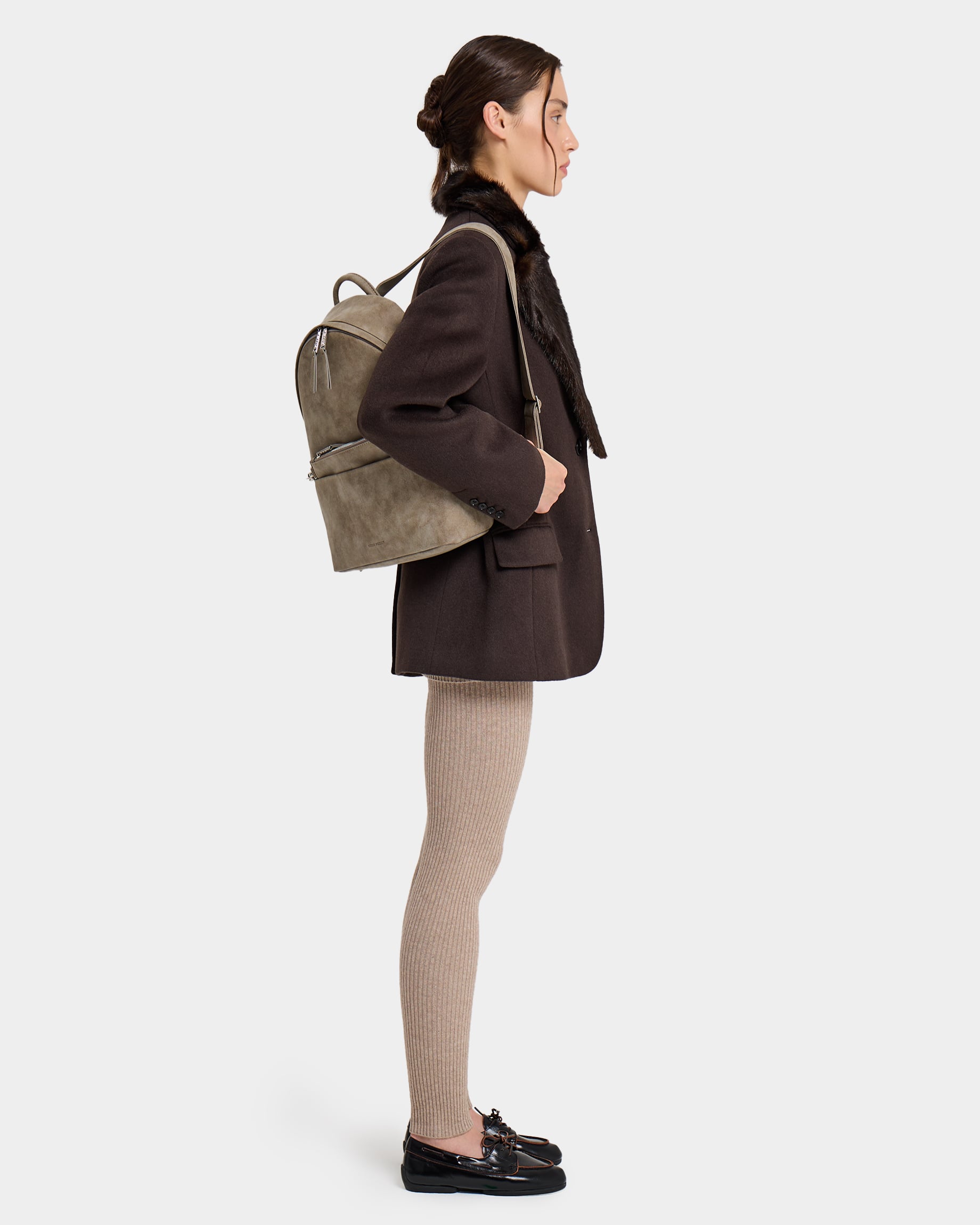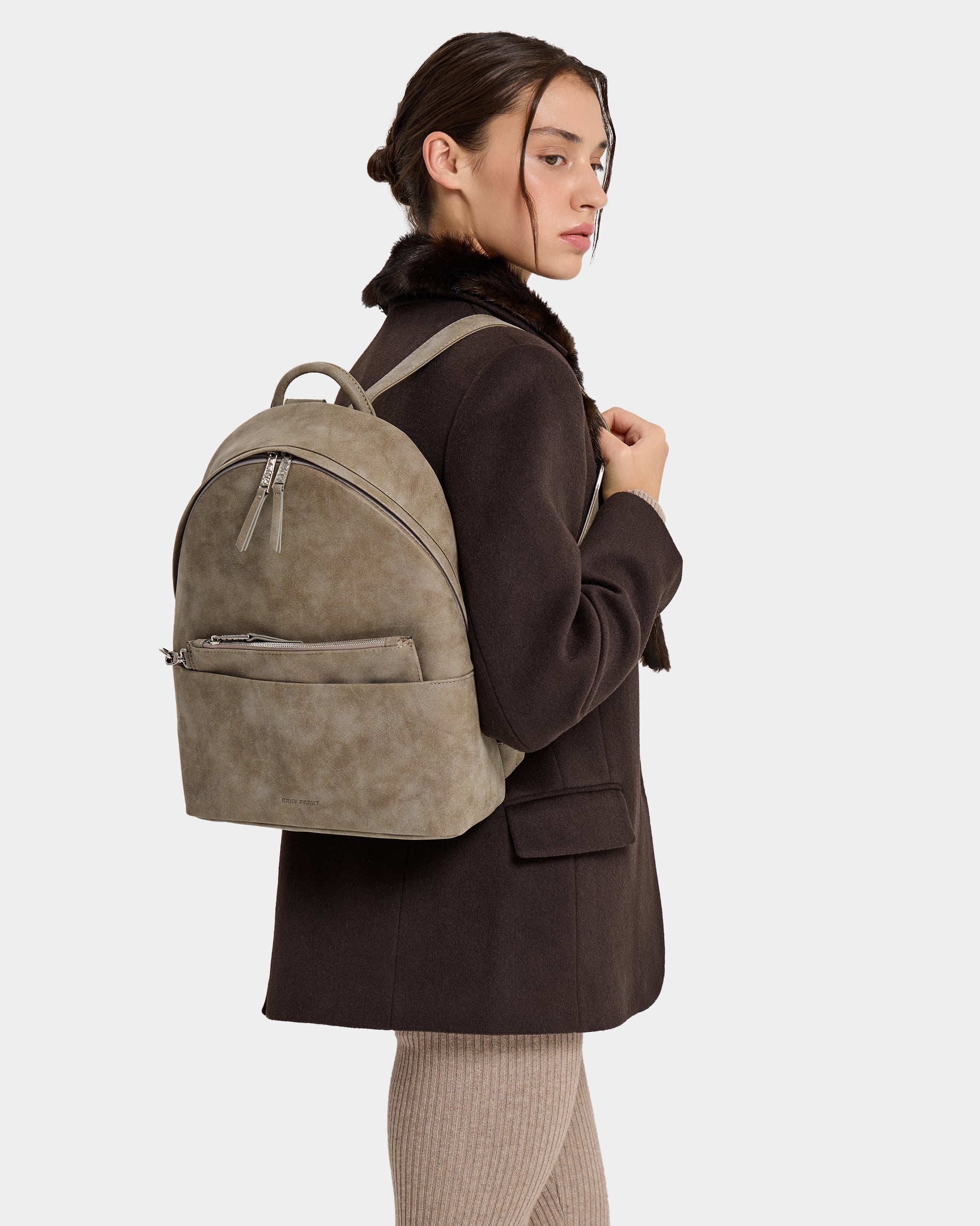 Вместительный рюкзак для ноутбука 13" из замшевой экокожи с широкими лямками в песочном цвете