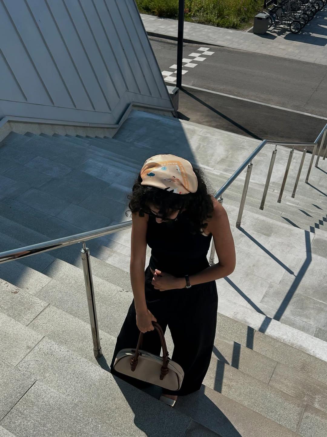 Очень удачная расцветка — идеально с сумочкой цвета Sandrift (но, чую, будет хорошо сочетаться и с нюд, и с тауп, и с коричневым, и чёрным). Удивительно, но подружил мою сандрифтную сумку даже с платьем в красную клетку.<br> <br> По размерам хотелось бы побольше, чтобы хватило носить на шее под пальто (не хватает длины, кончики можно завязать только сзади, а хотелось бы перекинуть через плечи), а так — как шейный платок, в волосы или повязать на сумку — очень даже! Ткань очень гладкая и как будто скользкая, нужно завязывать на два узла, иначе есть риски потерять на ходу — развяжется. Но на ощупь очень приятная. Немного электризуется, но в носке не критично.