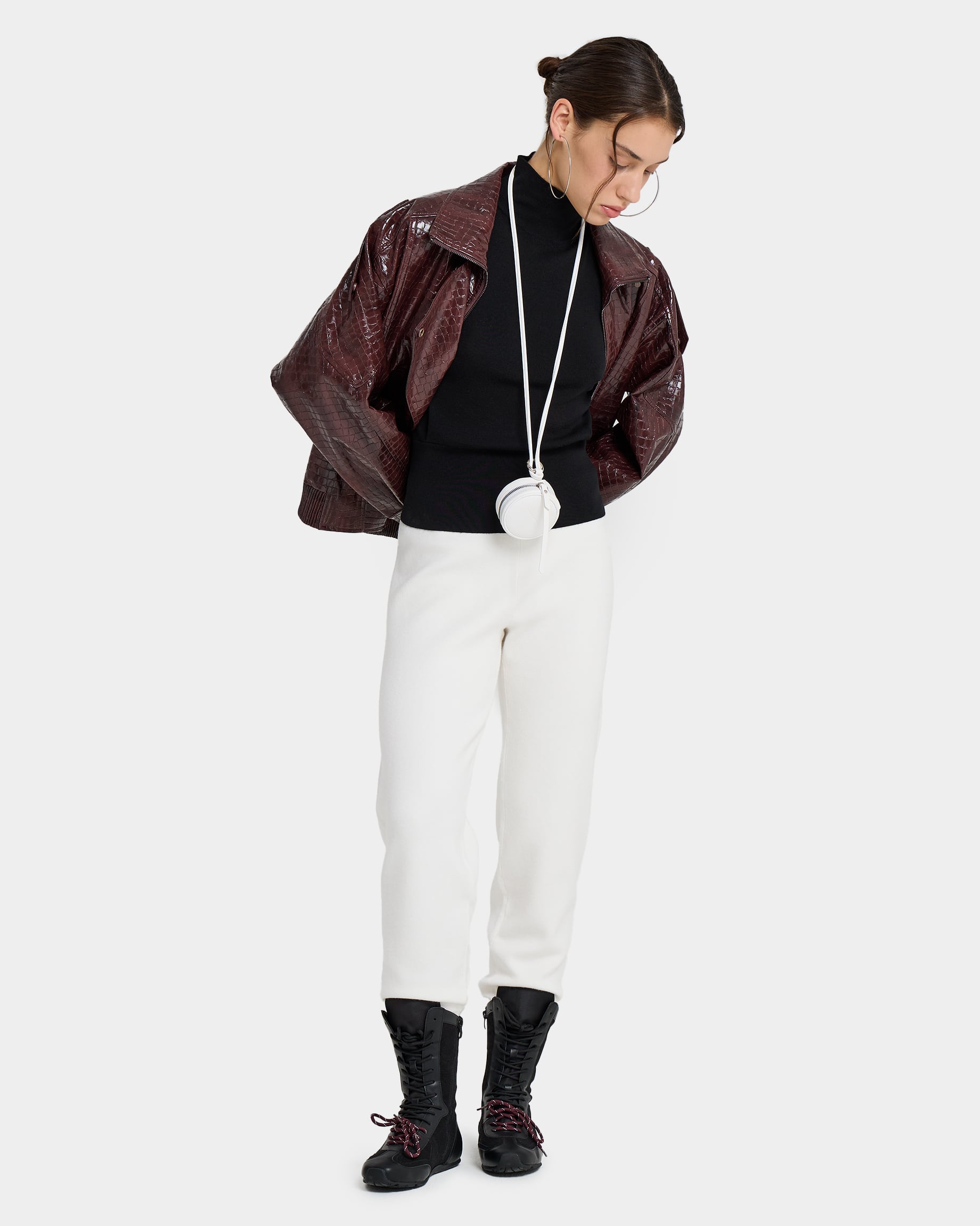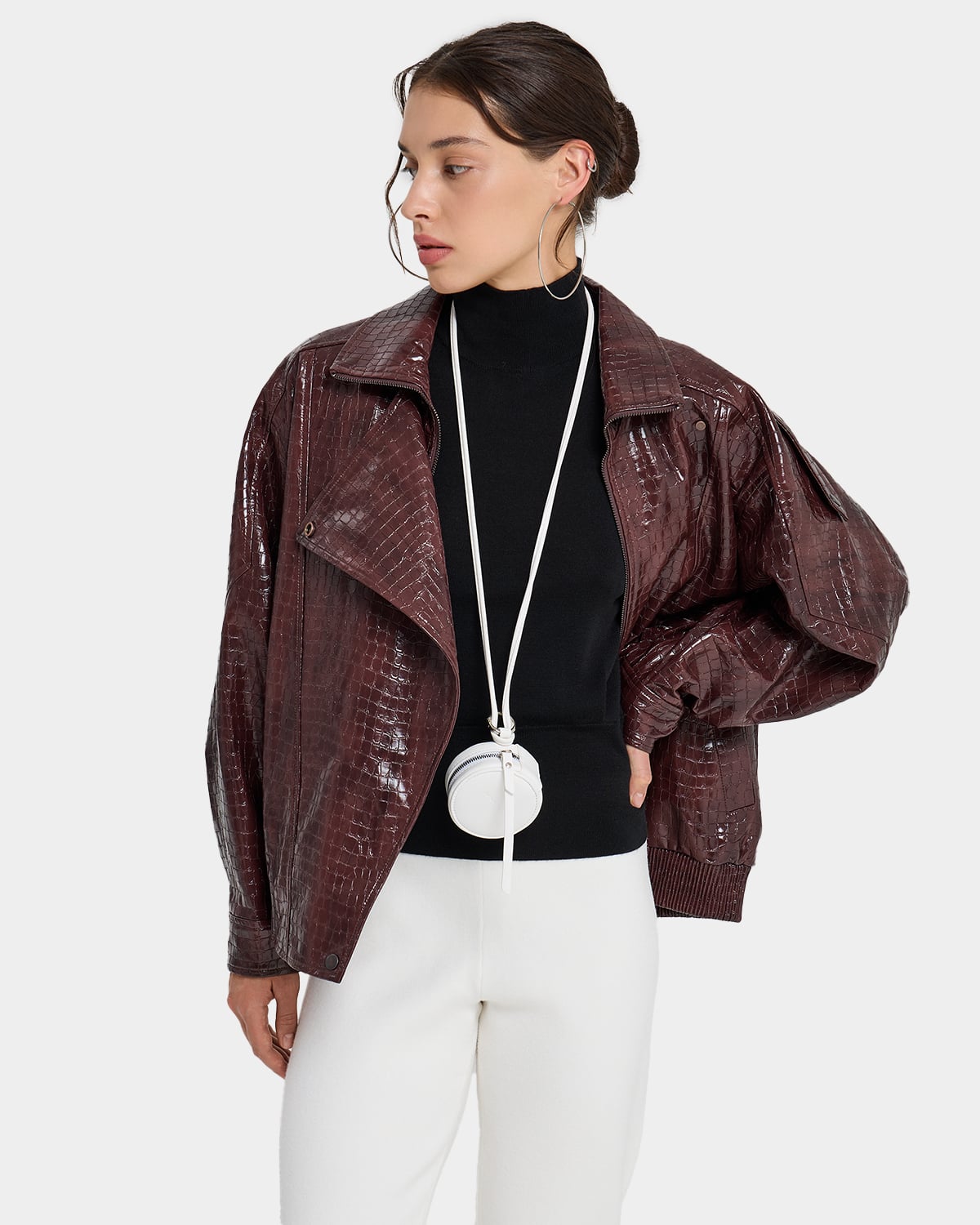 Круглый кошелек с ремнем в молочном цвете из экокожи