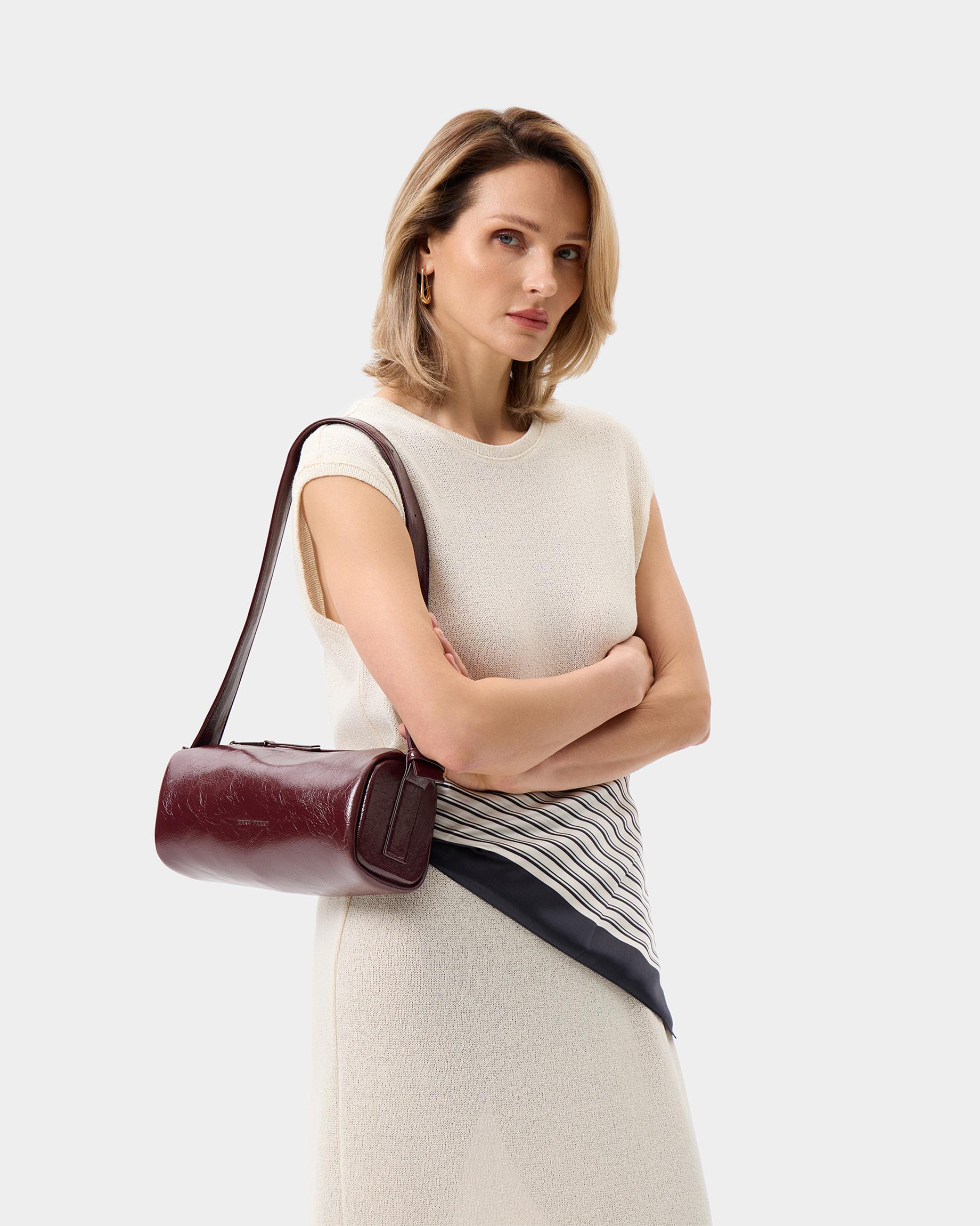 Небольшая мягкая прямоугольная сумка из экокожи в цвете бордо кракле