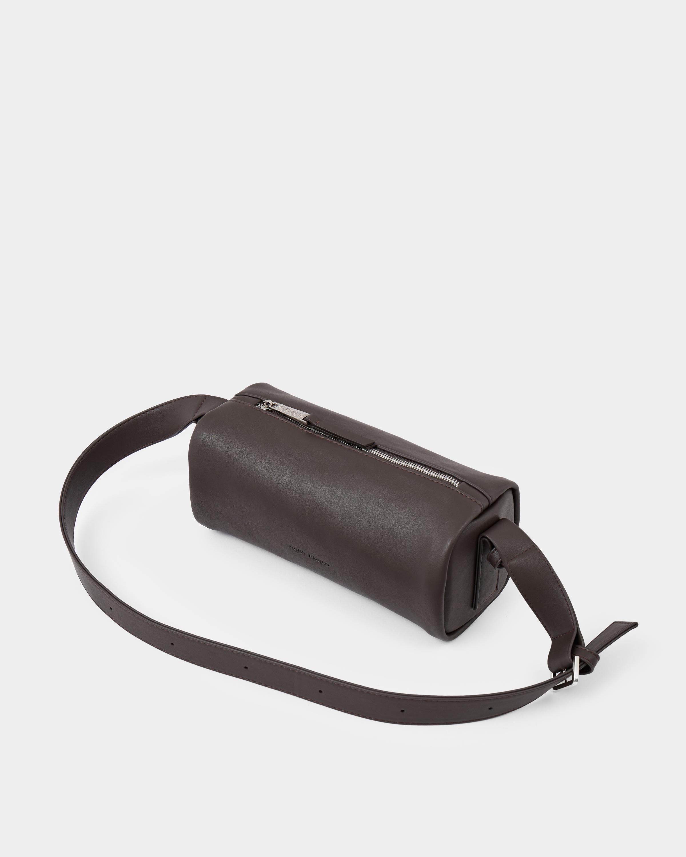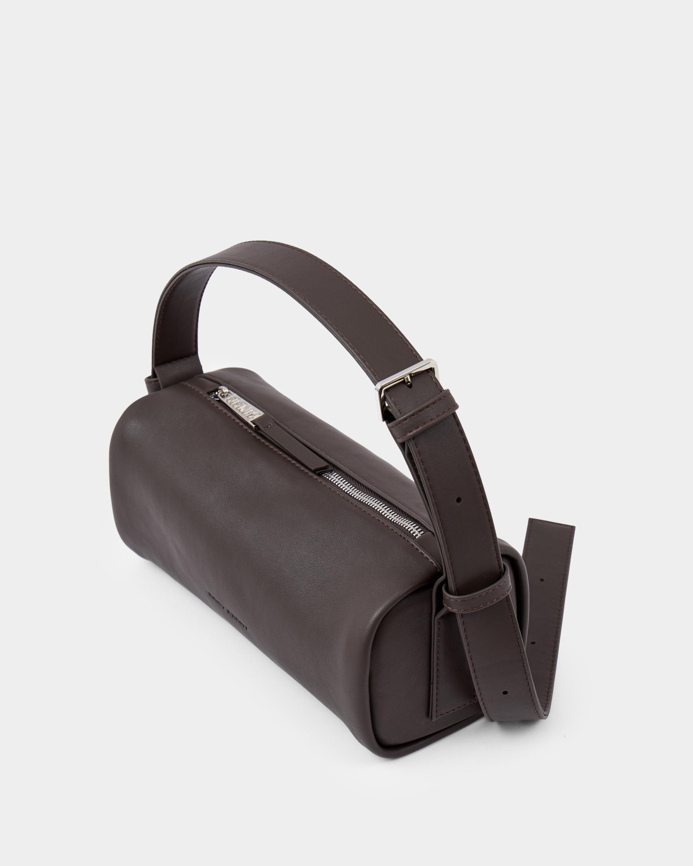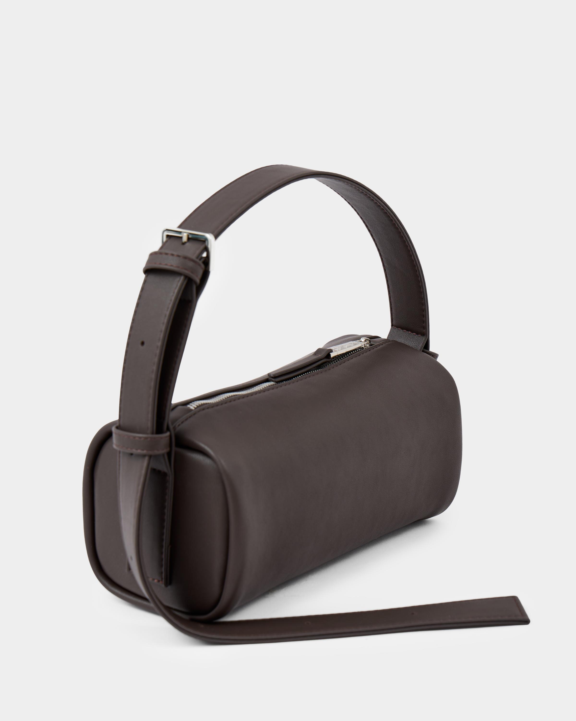 Небольшая мягкая прямоугольная сумка из экокожи в коричневом цвете
