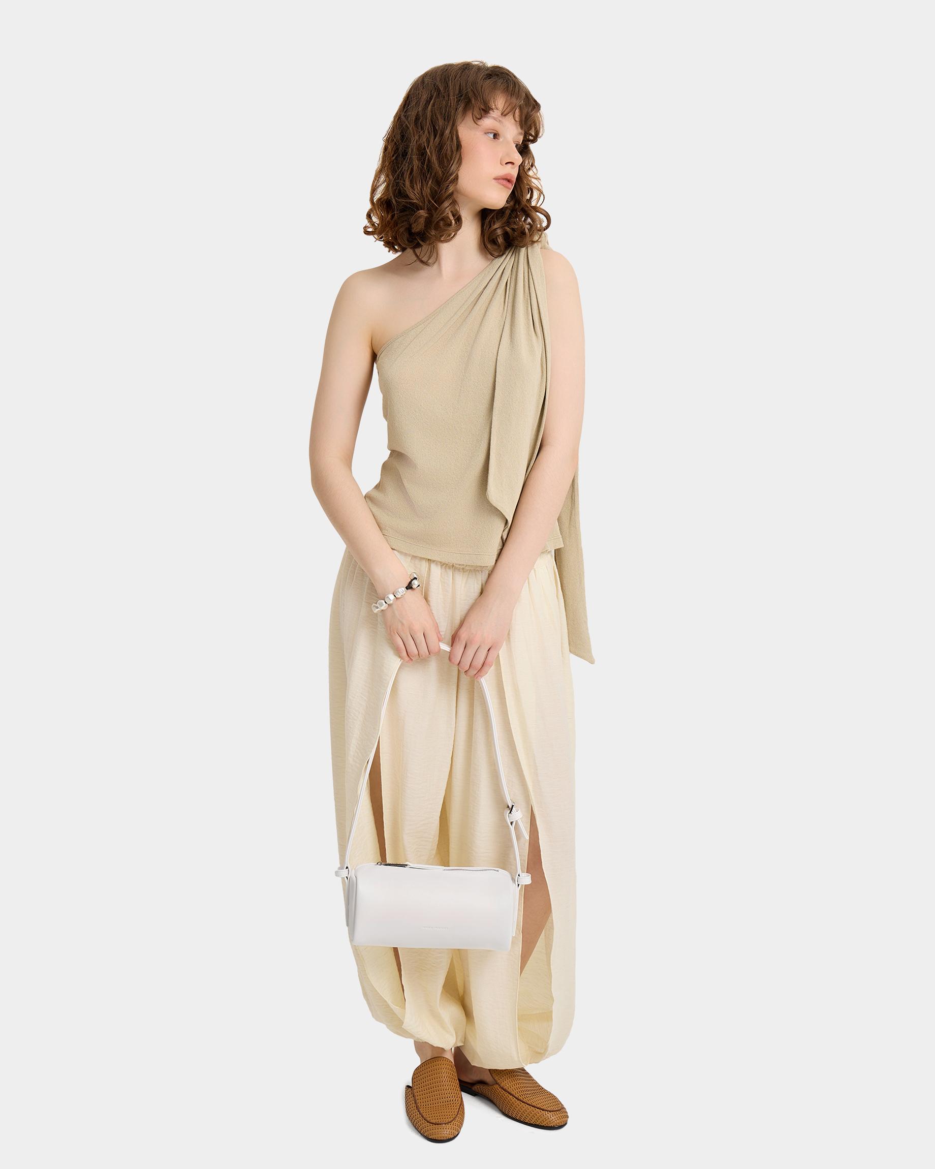 Небольшая мягкая прямоугольная сумка из экокожи в молочном цвете