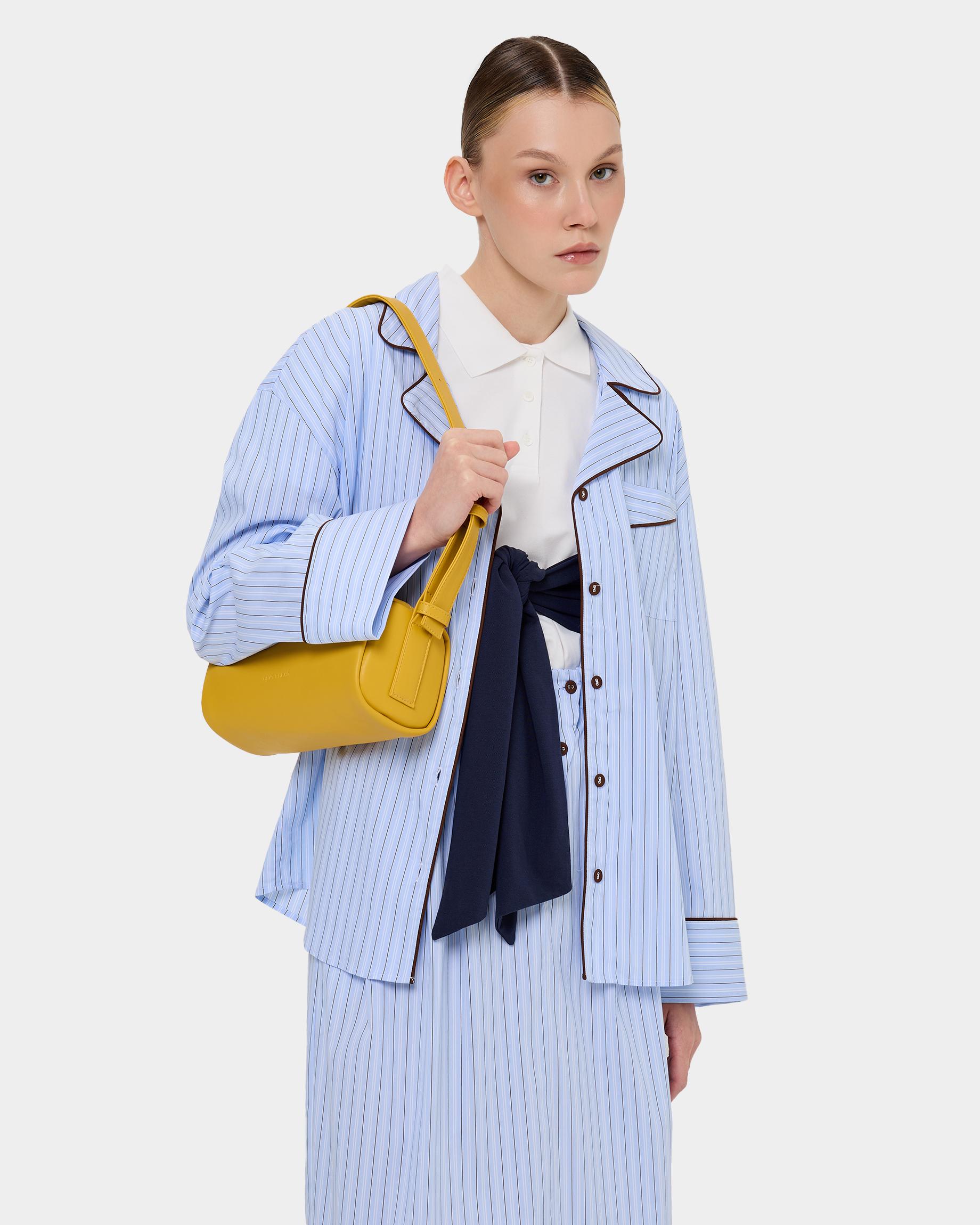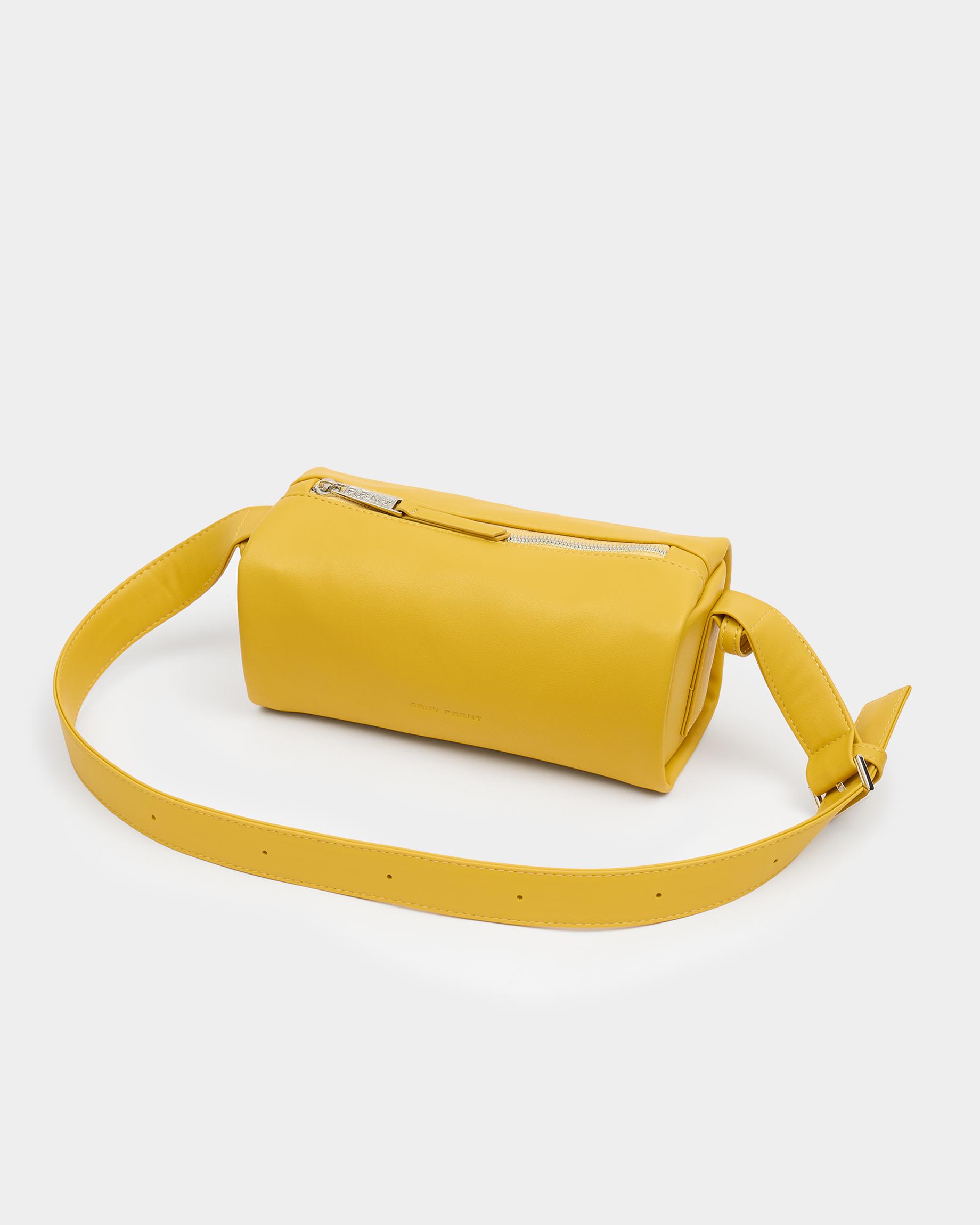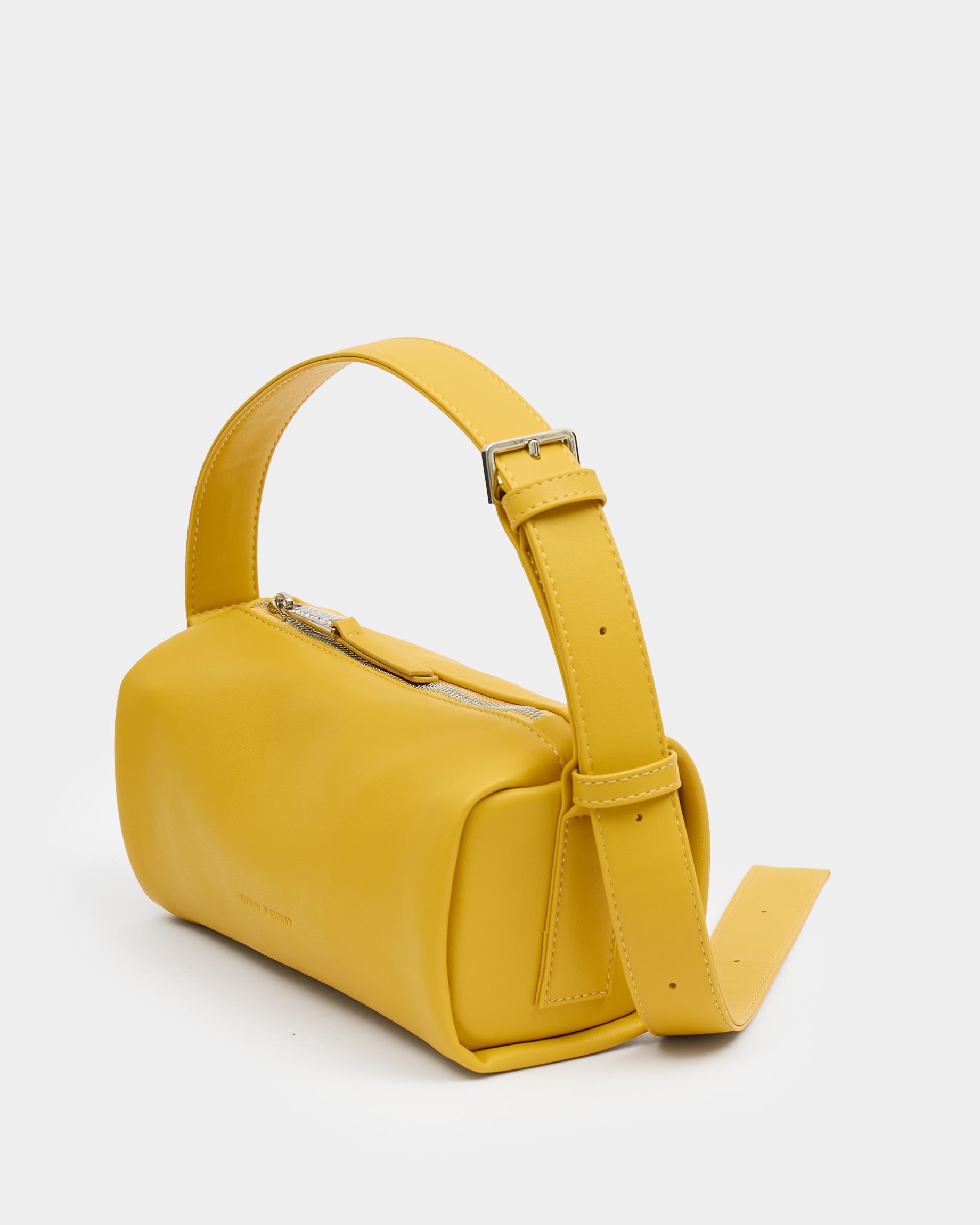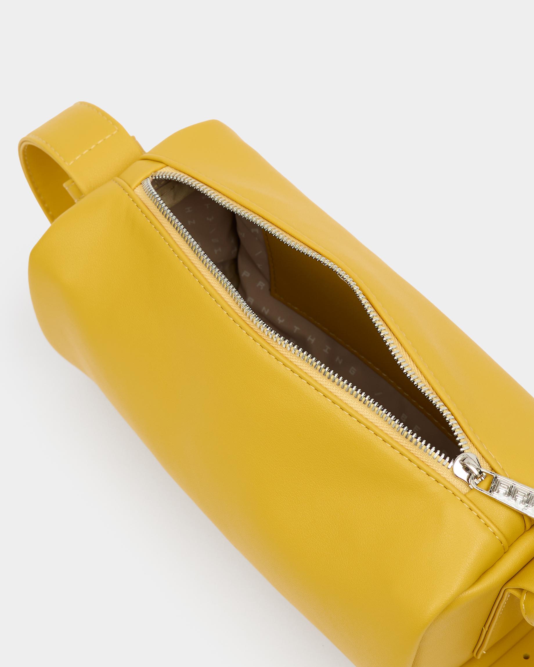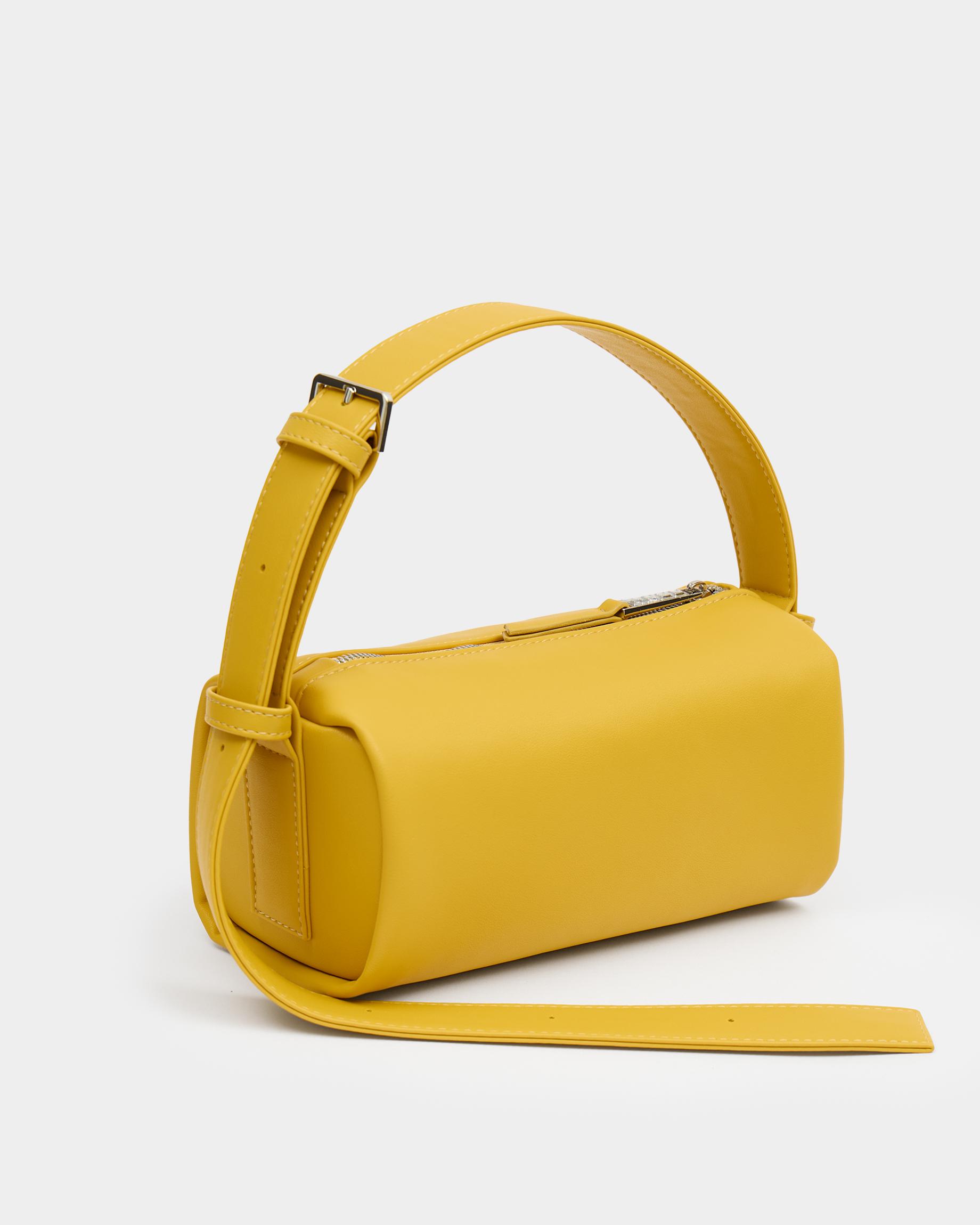 Небольшая мягкая прямоугольная сумка из экокожи в горчичном цвете