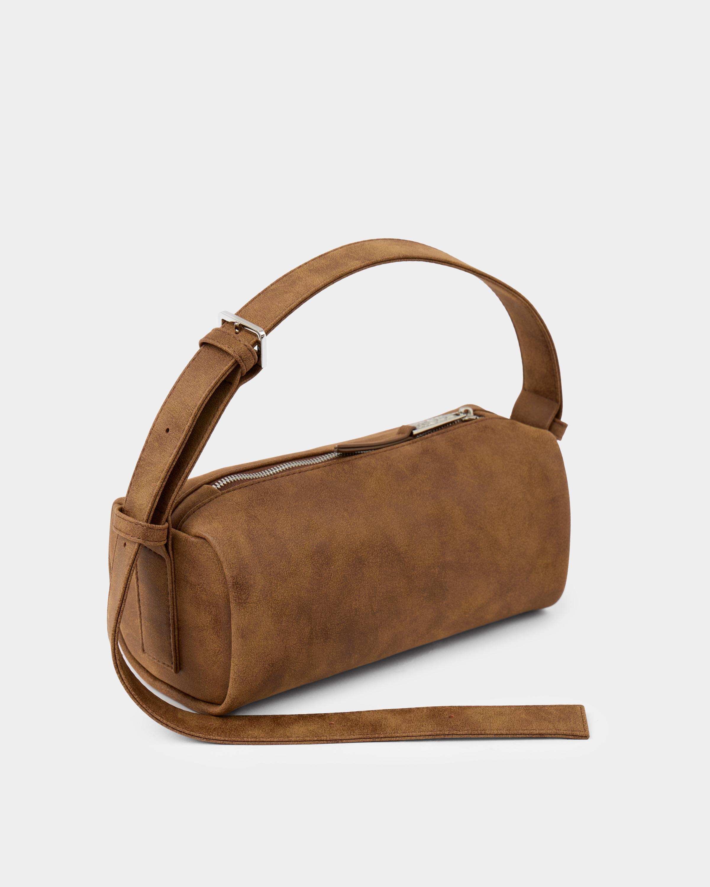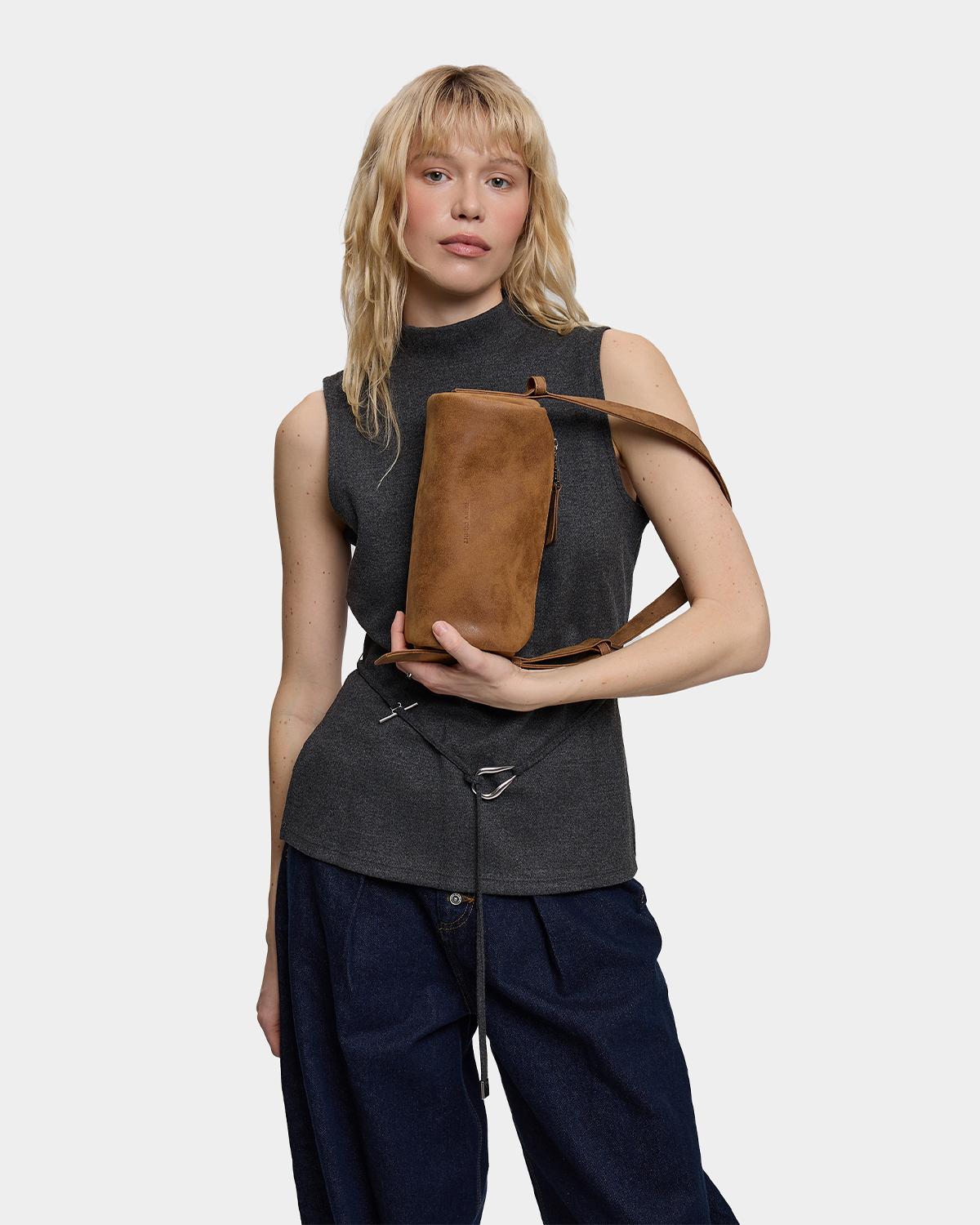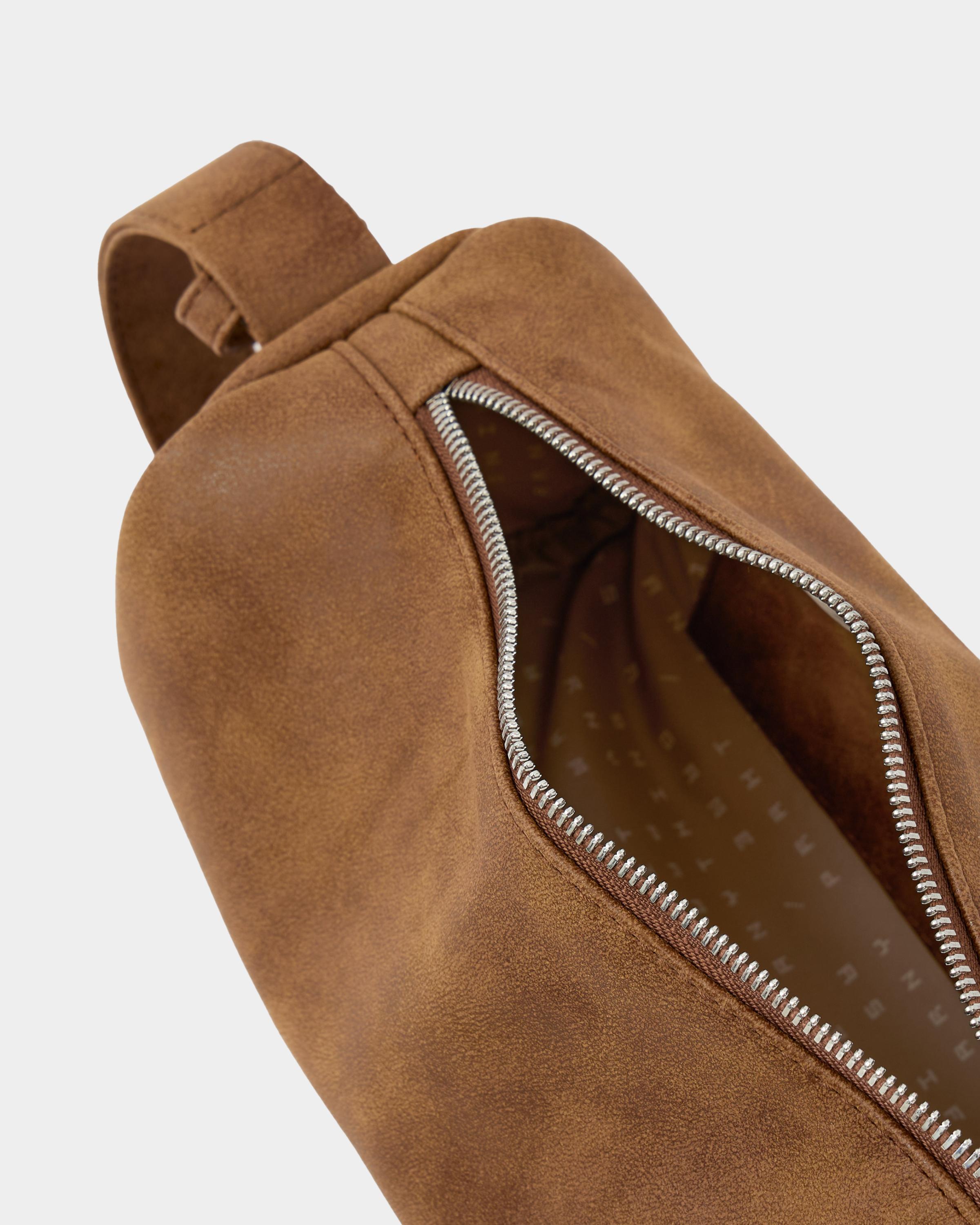 Небольшая мягкая прямоугольная сумка из замшевой экокожи в цвете пекан