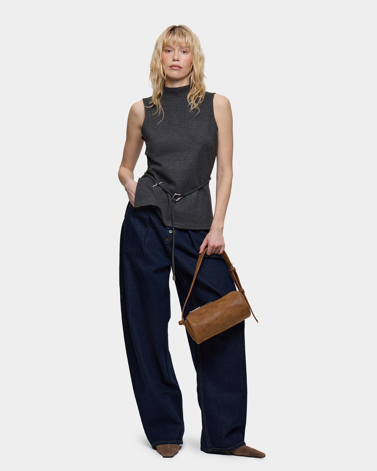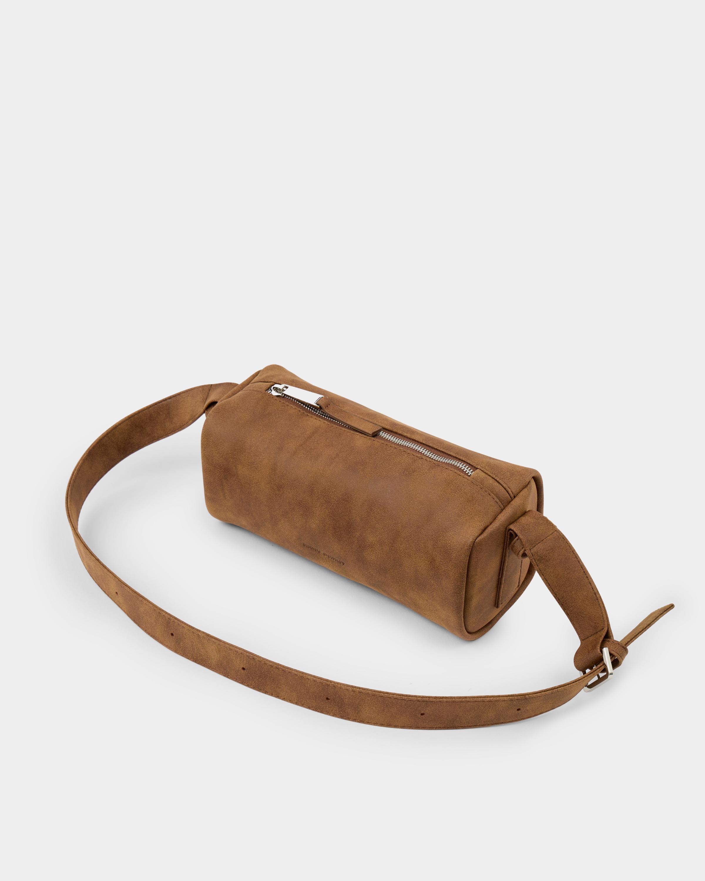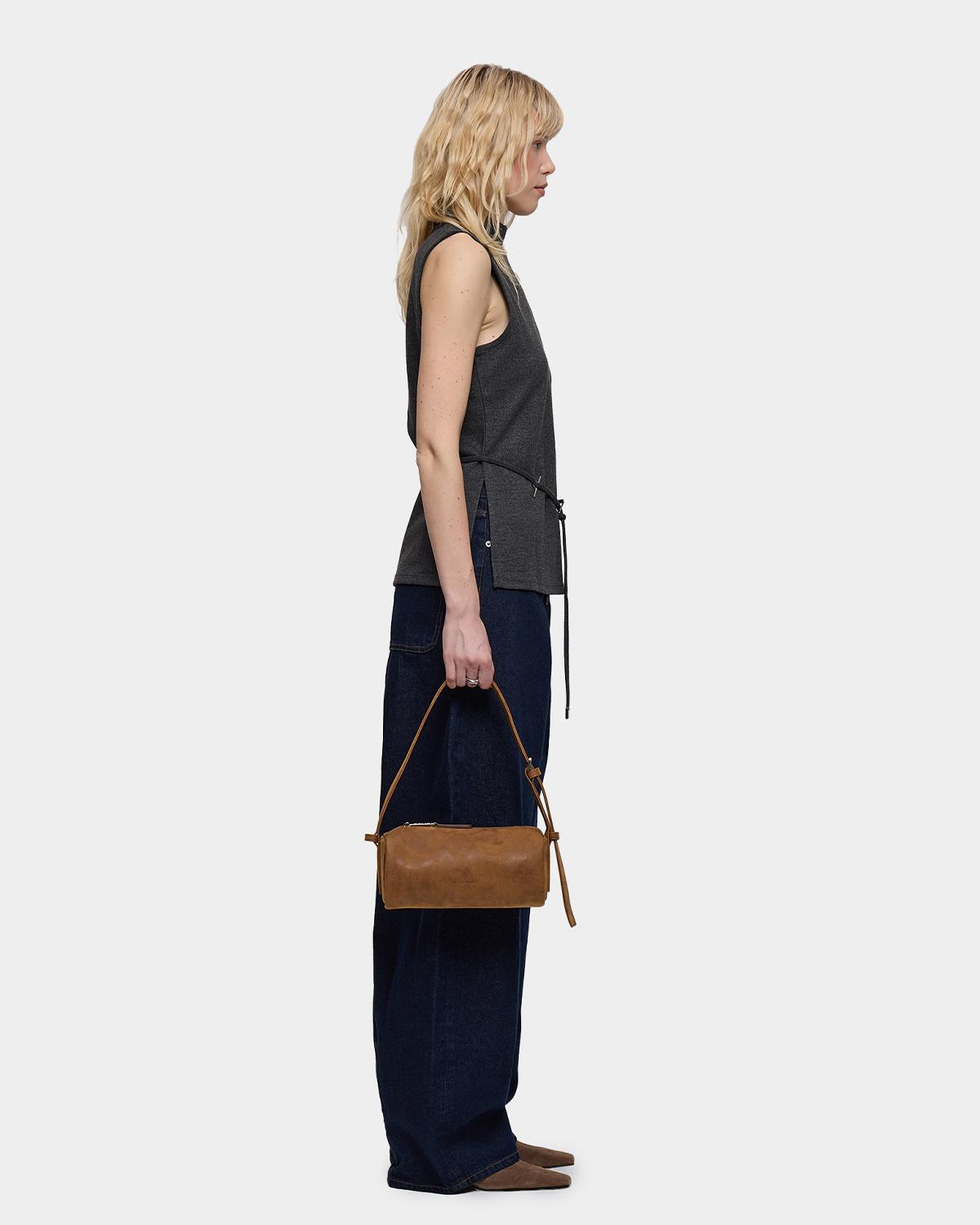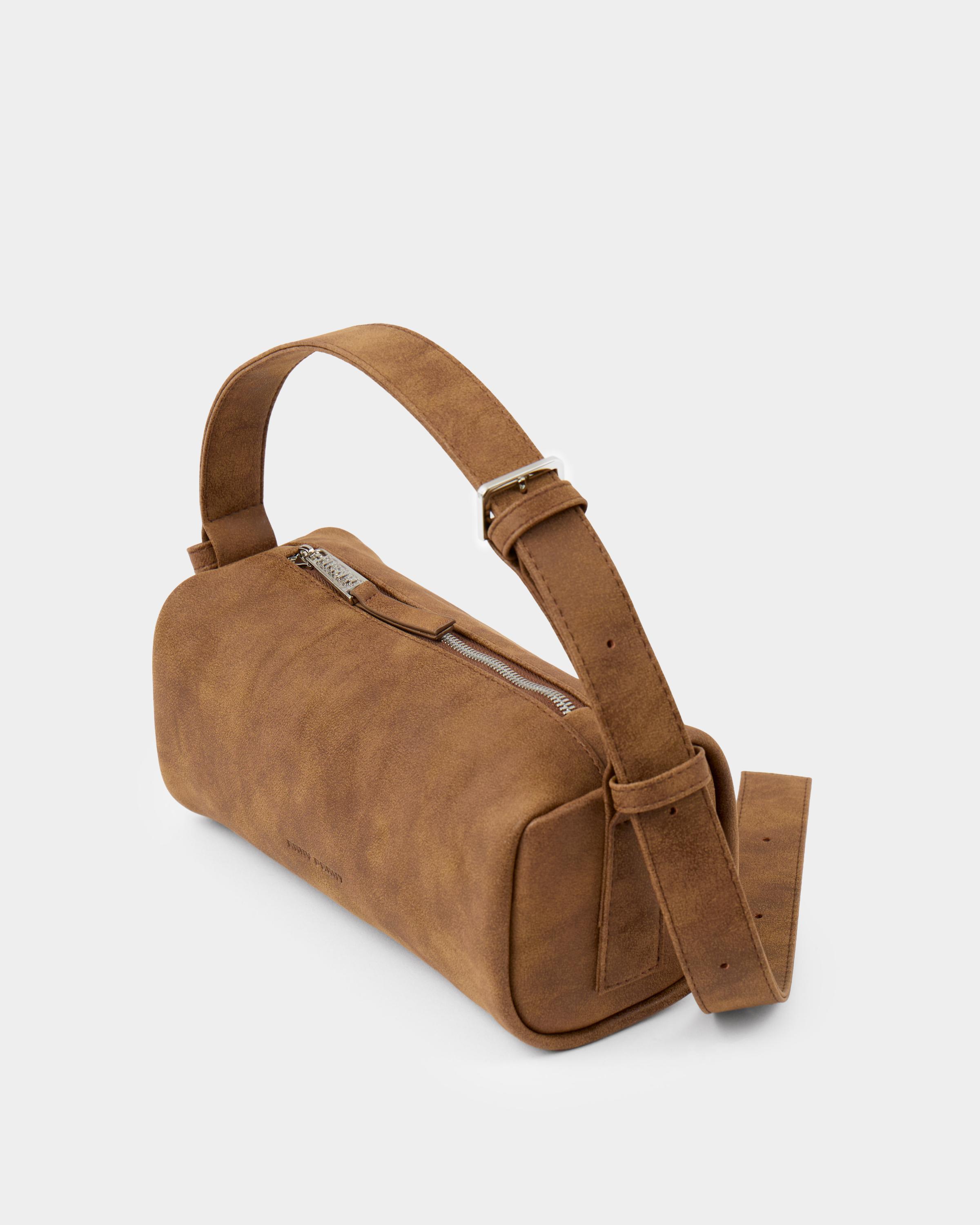 Небольшая мягкая прямоугольная сумка из замшевой экокожи в цвете пекан