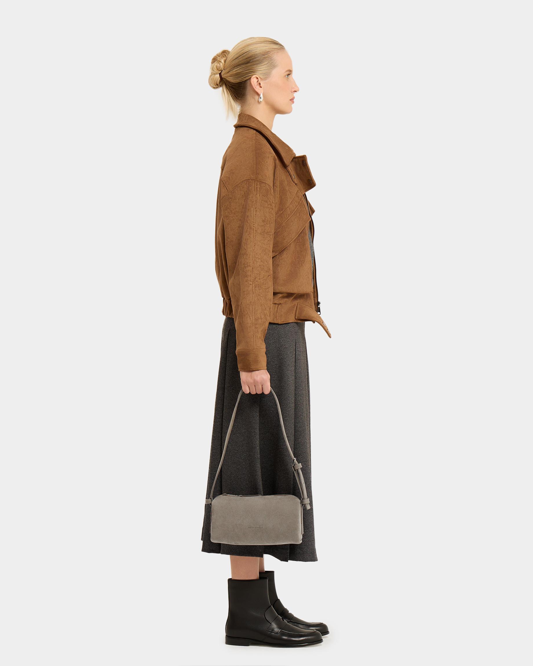 Небольшая мягкая прямоугольная сумка из экокожи в цвете песочный