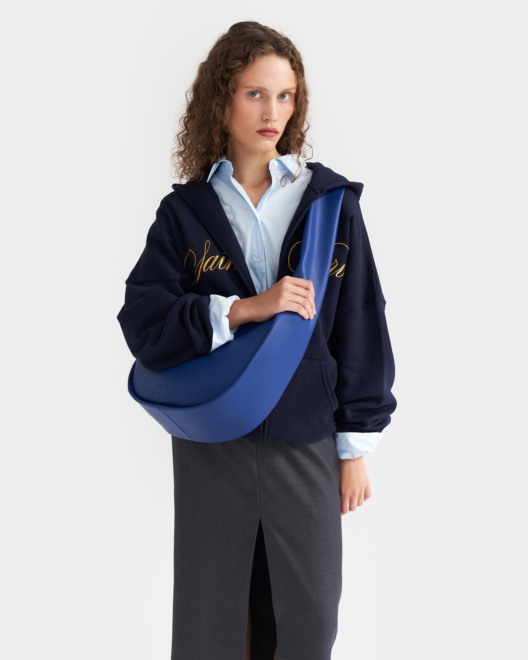 Здравствуйте! В синем цвете не ожидаем поступления. В весенней коллекции модель будет представлена в следующих оттенках: черный, кофе, голубой деним :)