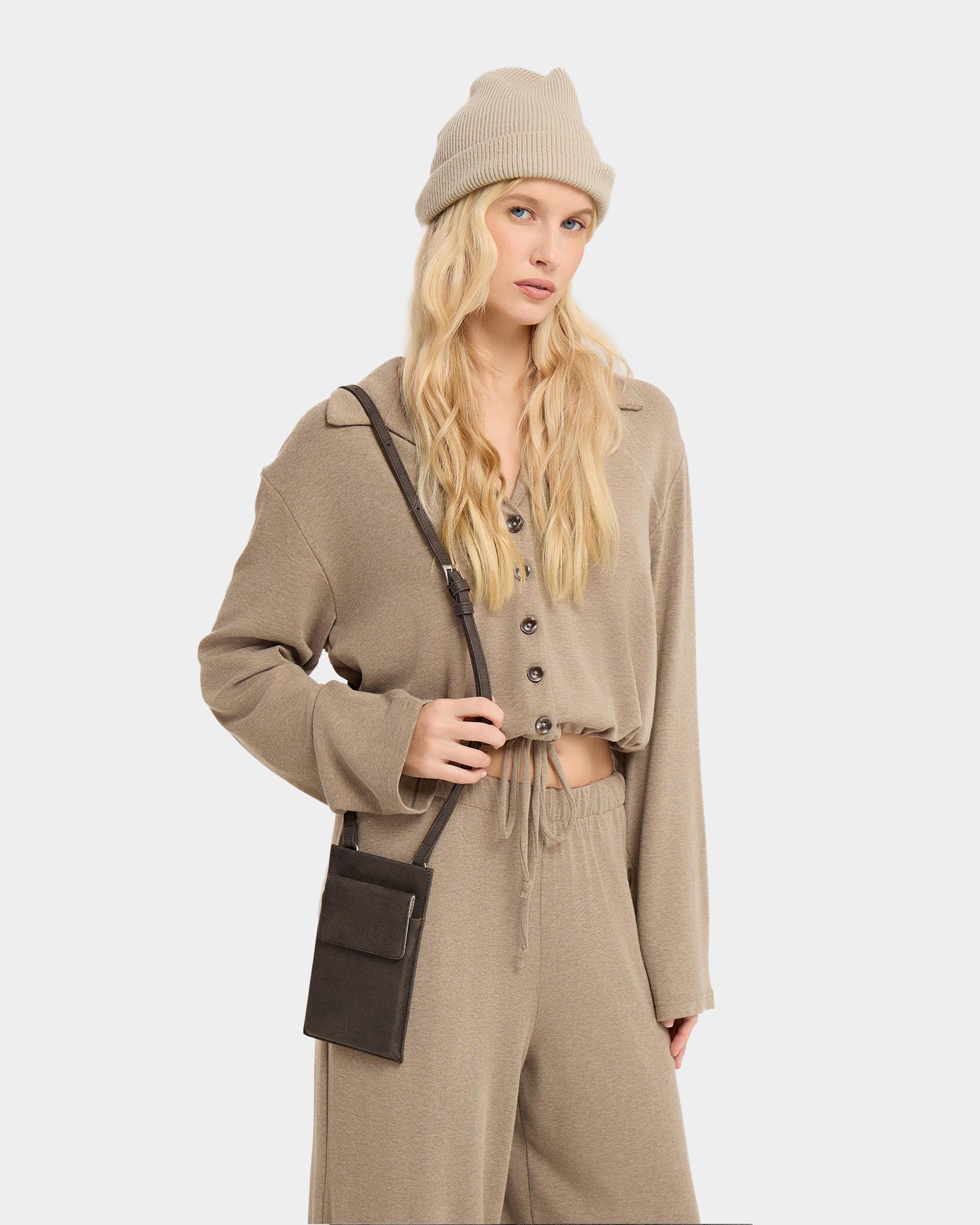 Сумка для телефона из замшевой экокожи в цвете брауни