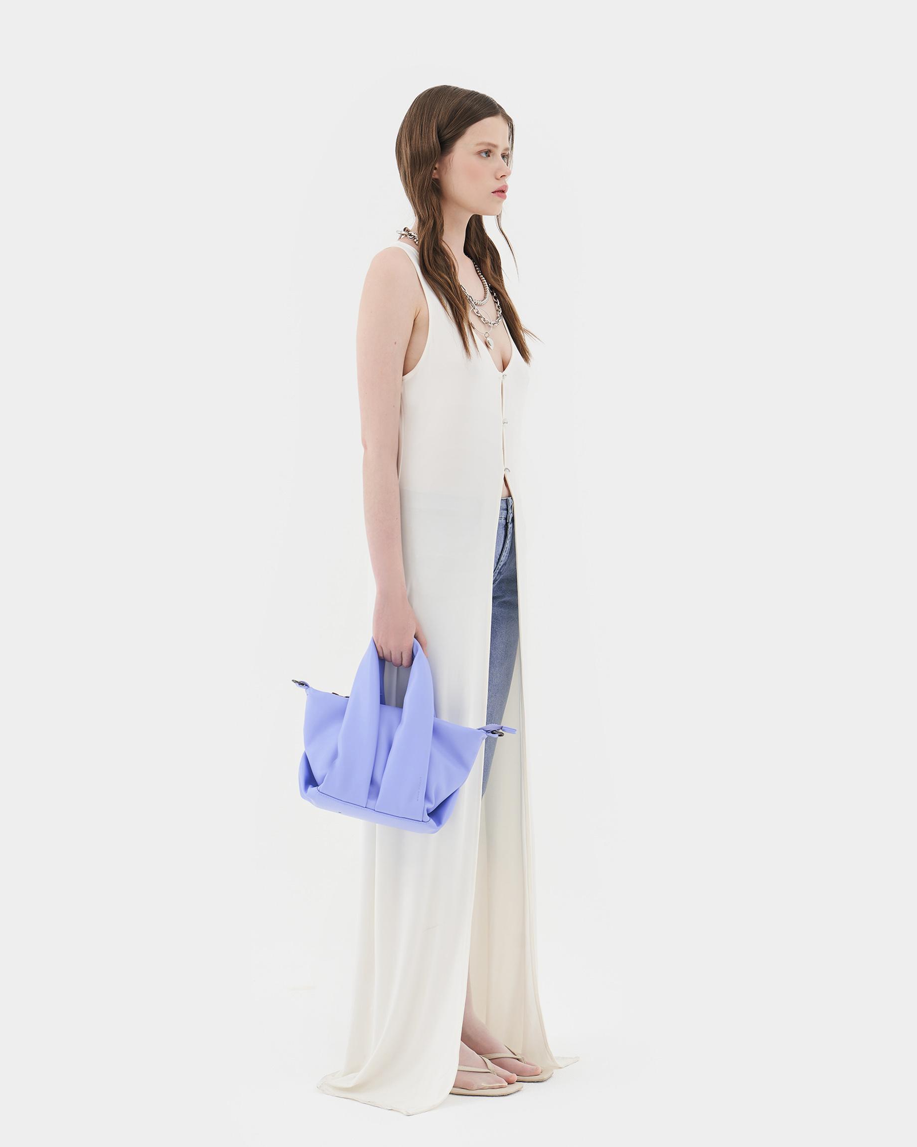 Универсальная повседневная женская сумка с тонким ремнем в цвете голубая матча