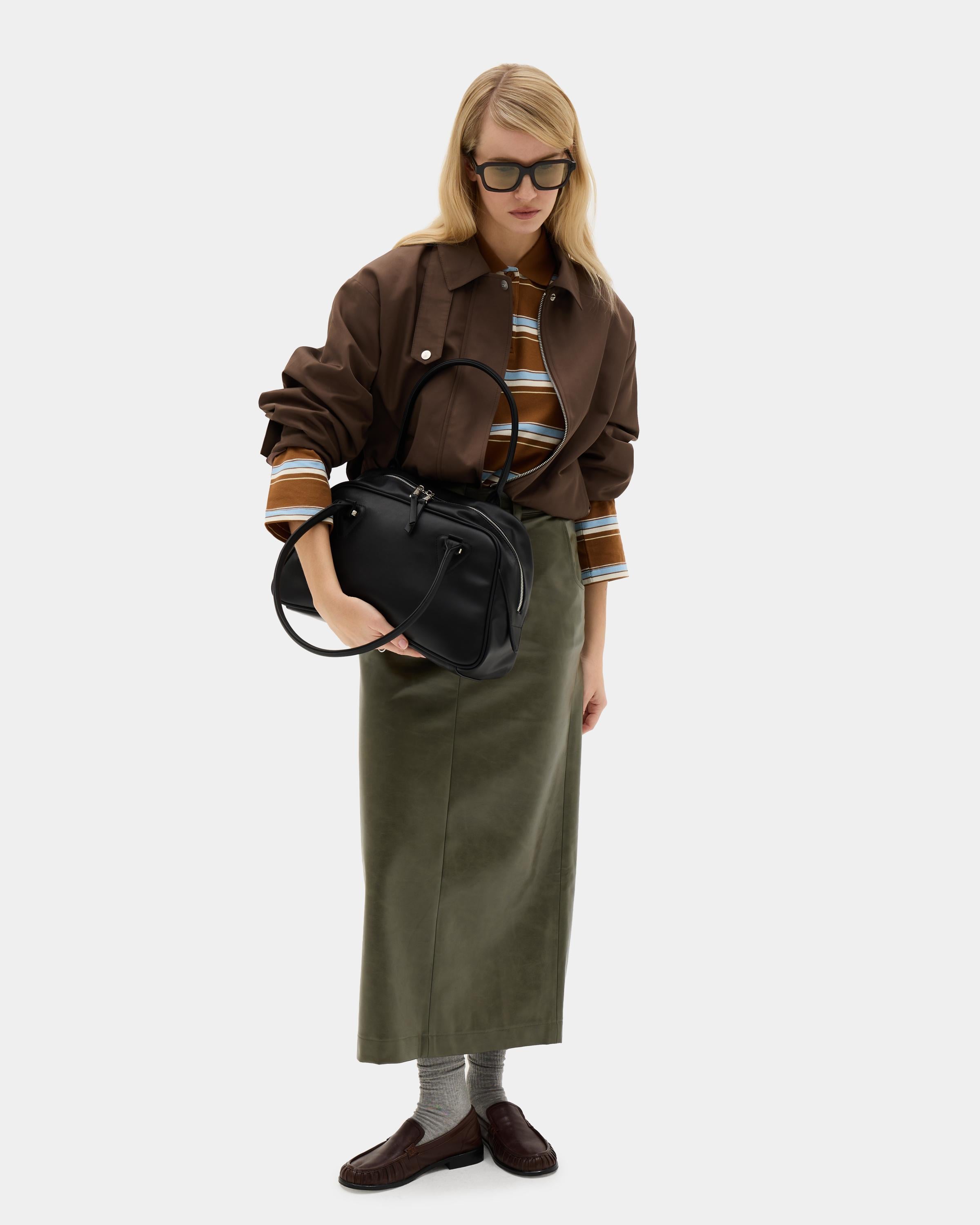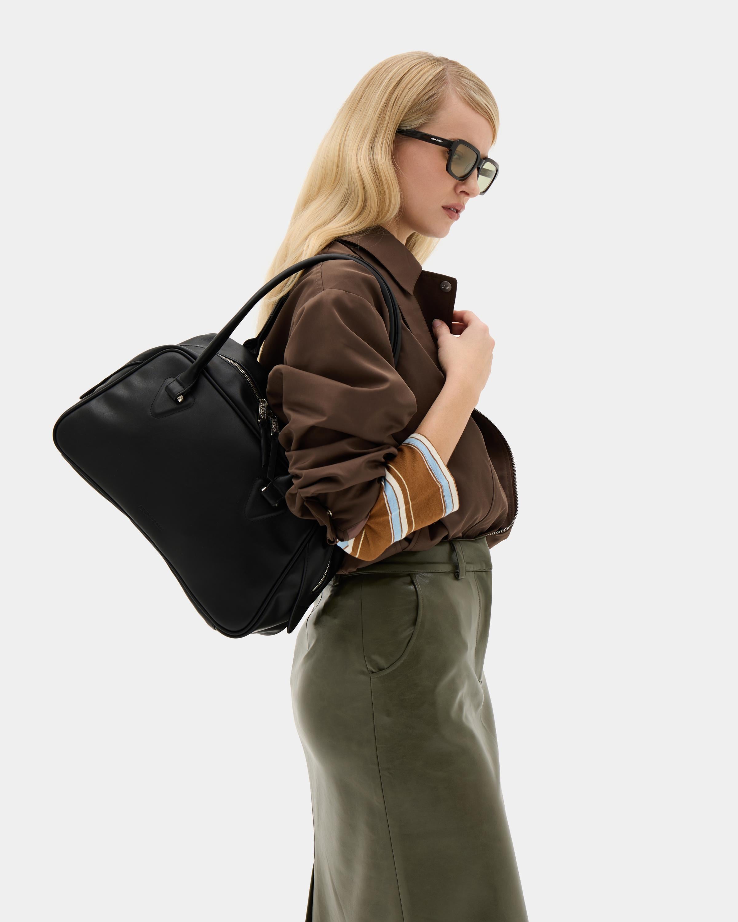Вместительная сумка боулер с цветным подкладом
