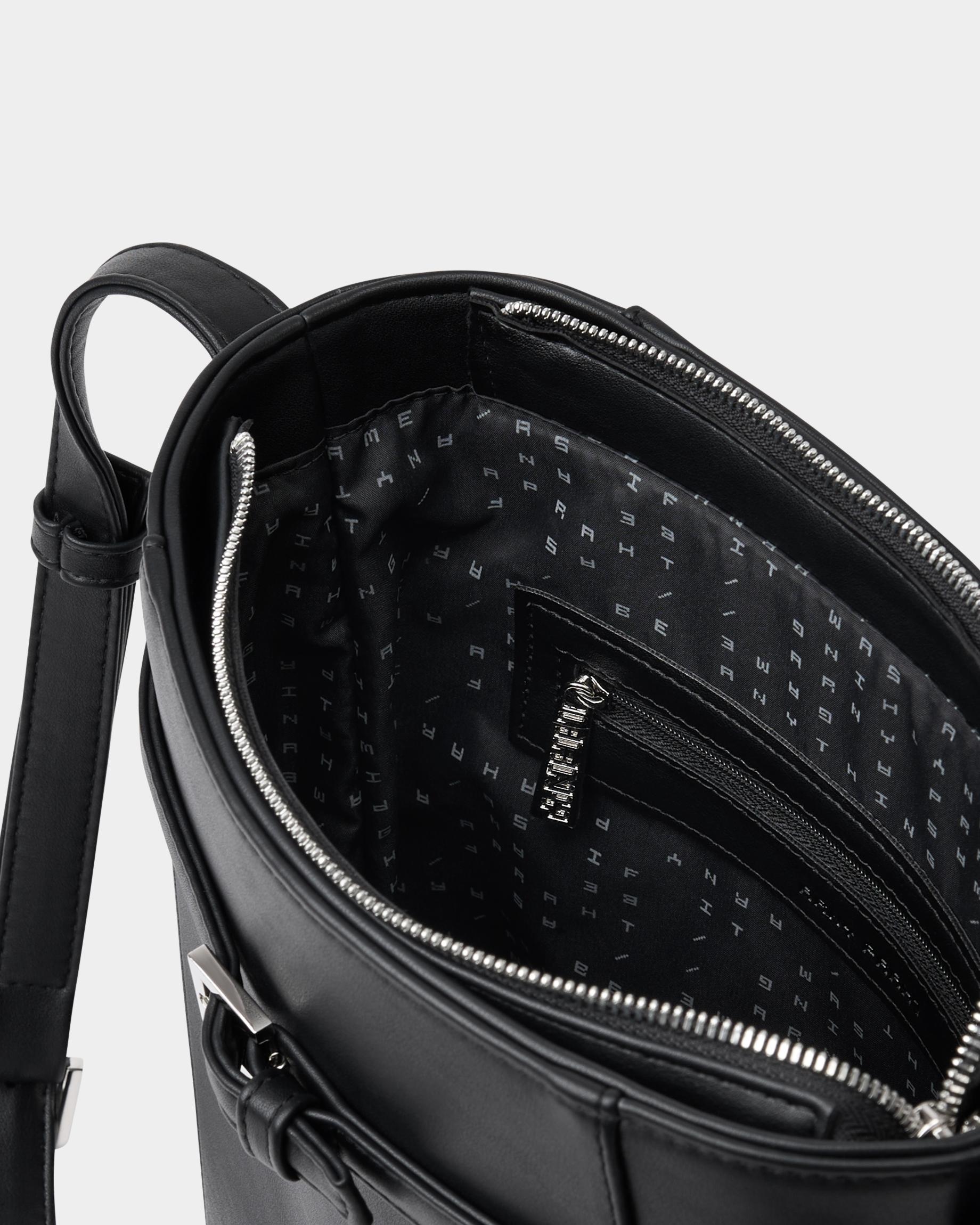 Вместительная повседневная сумка-ведро с широким дном в черном цвете