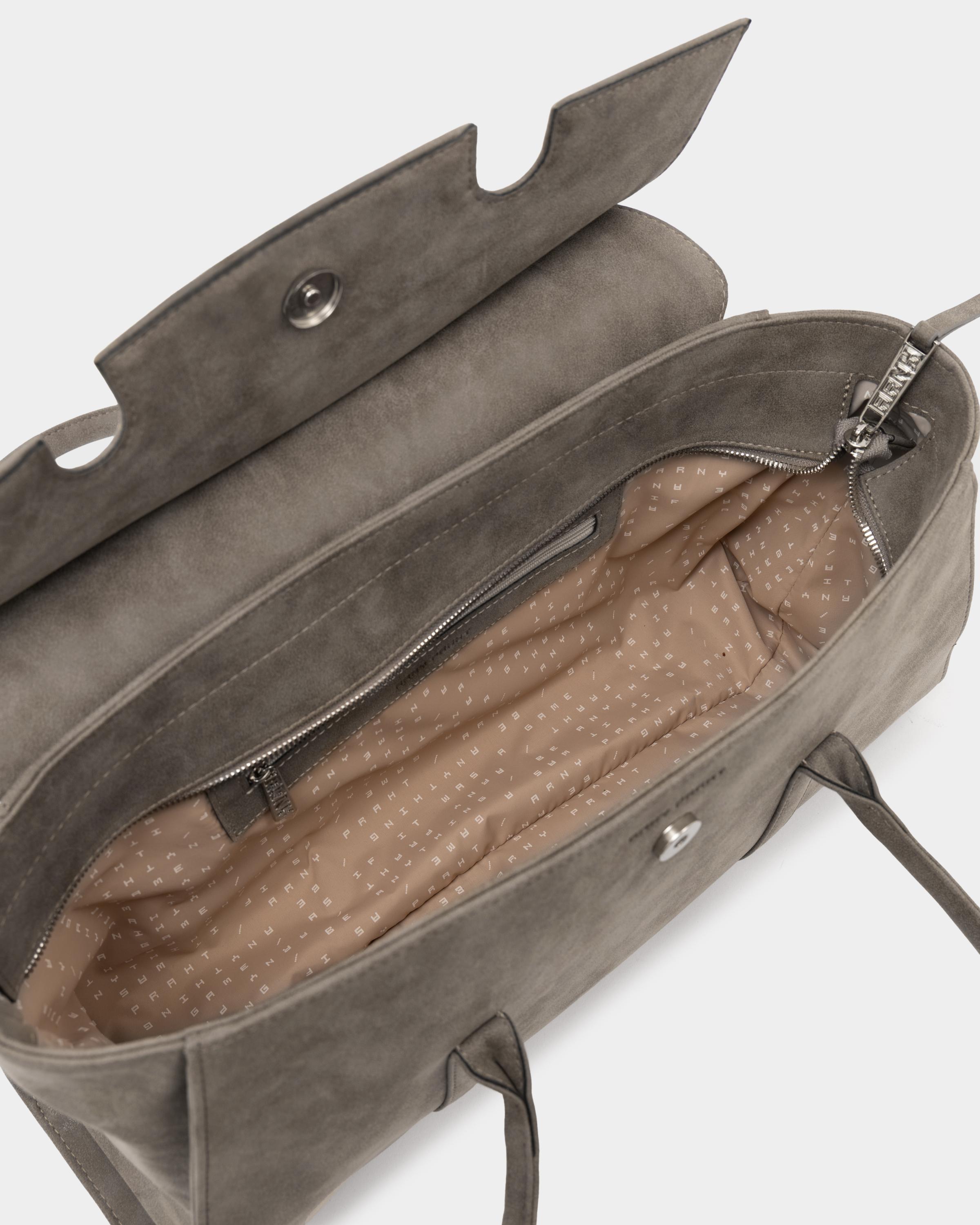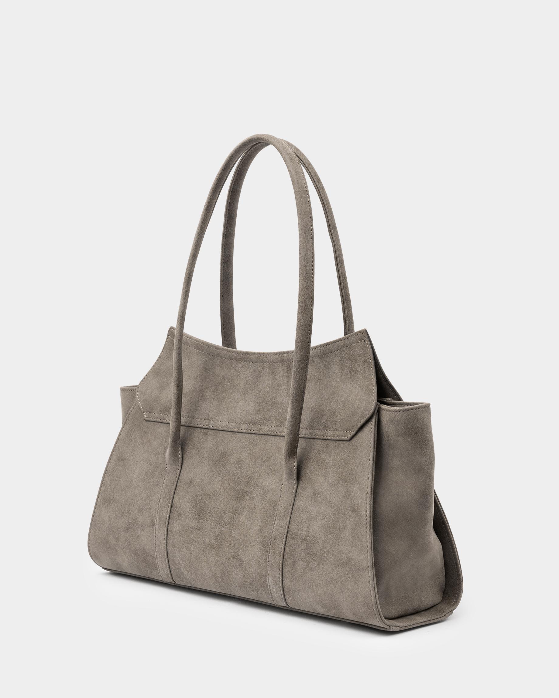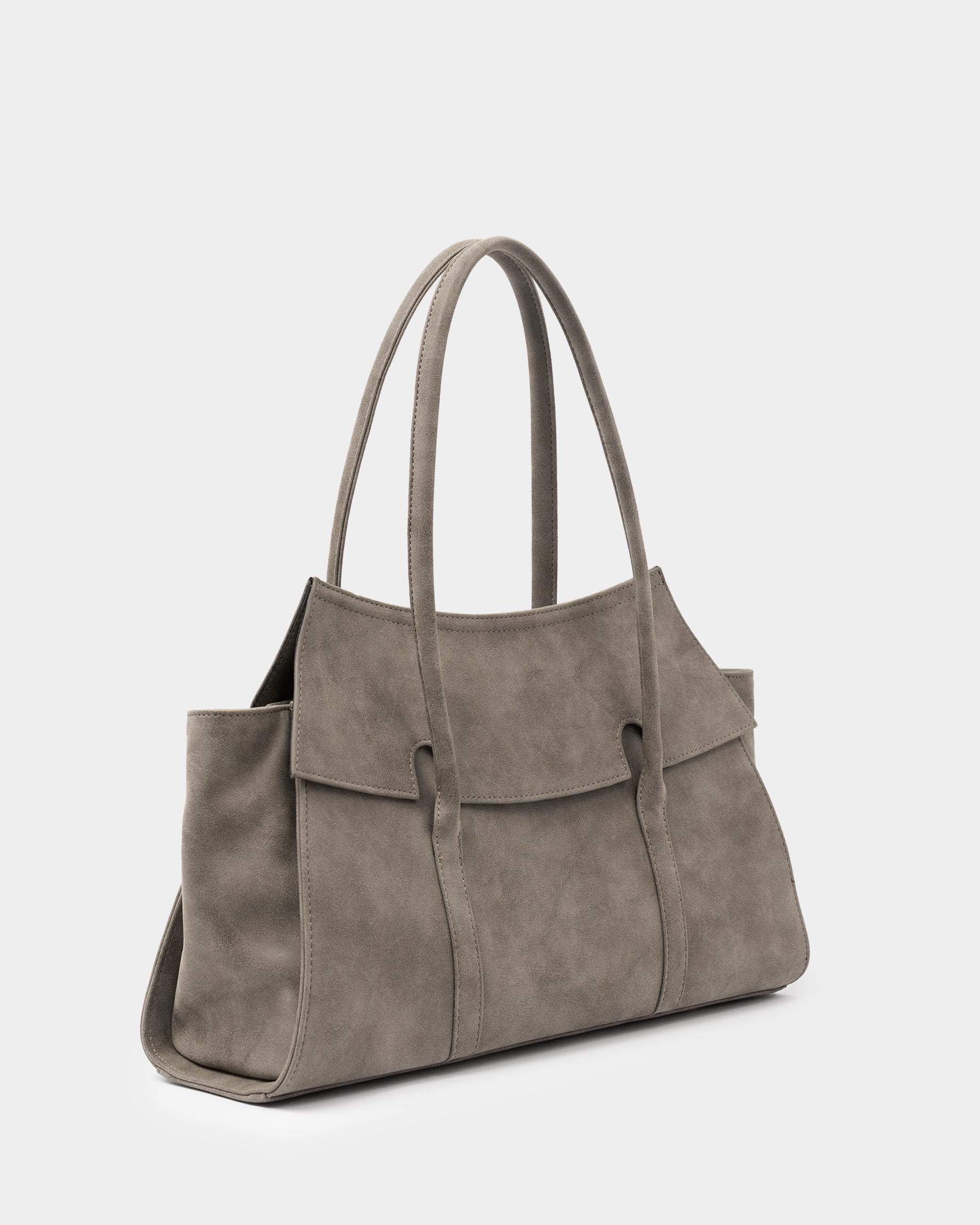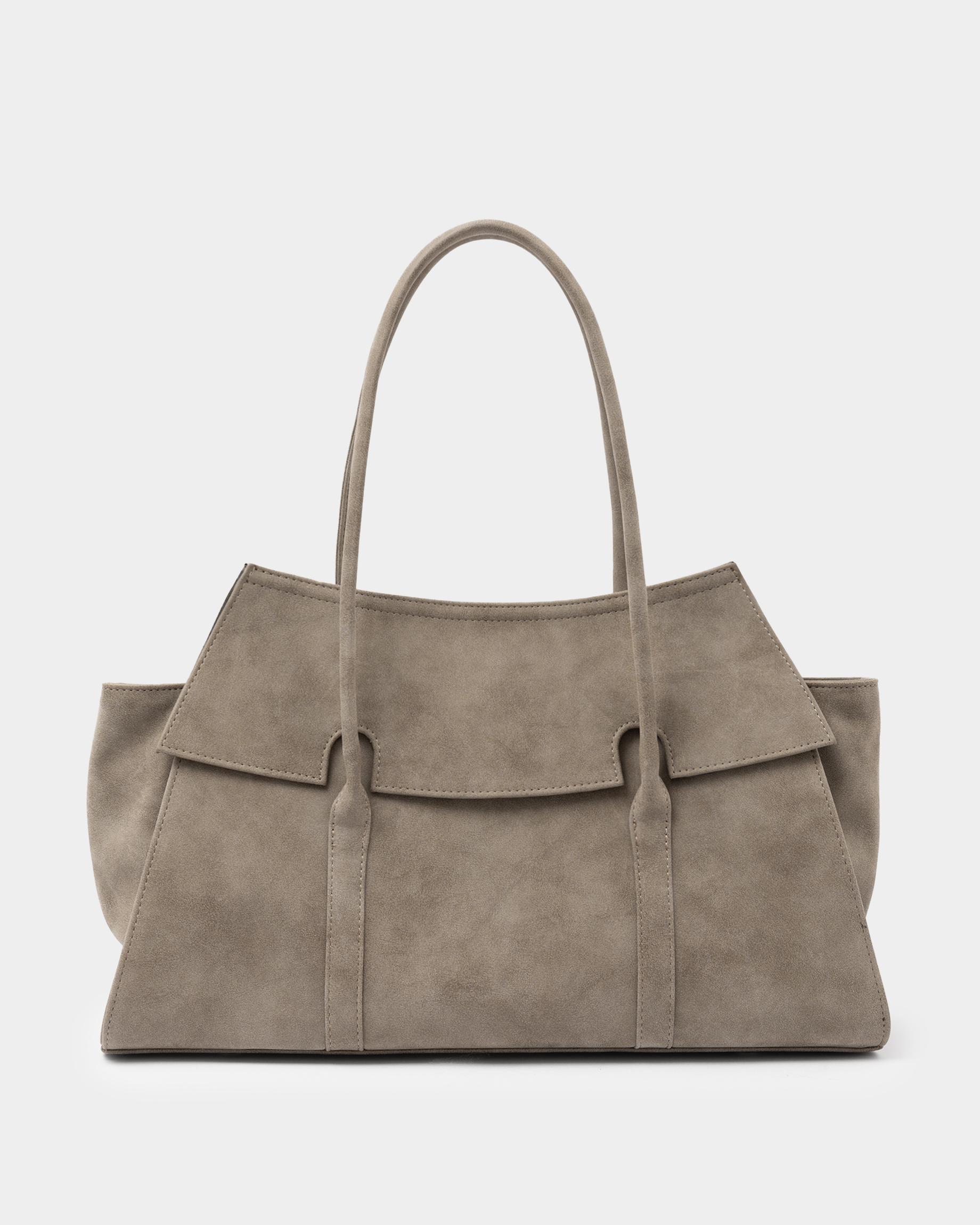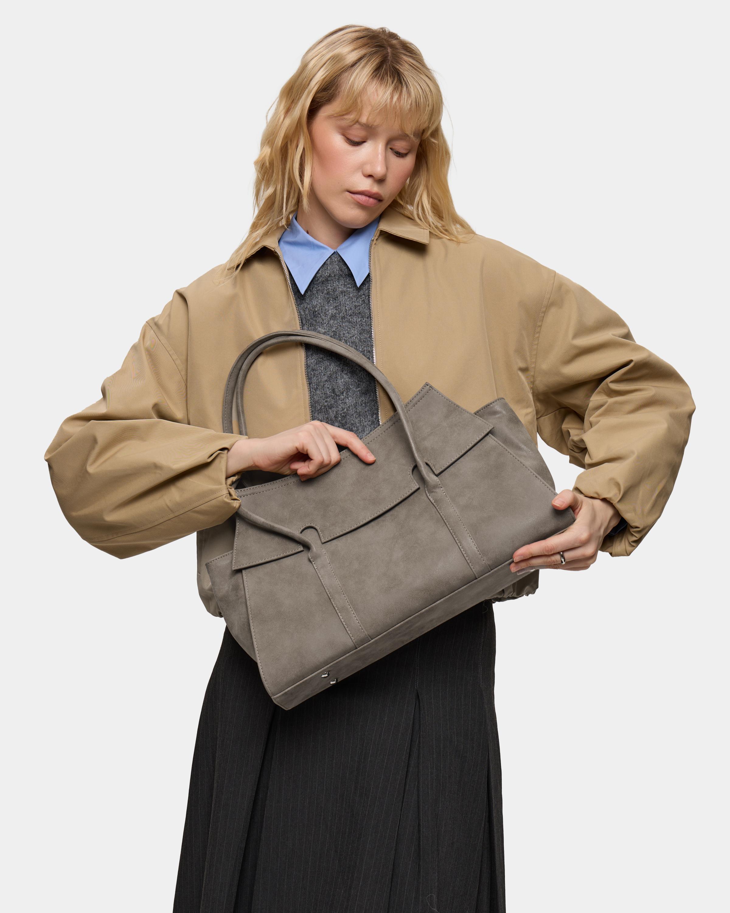 Вместительная сумка из замшевой экокожи с фиксированными ручками