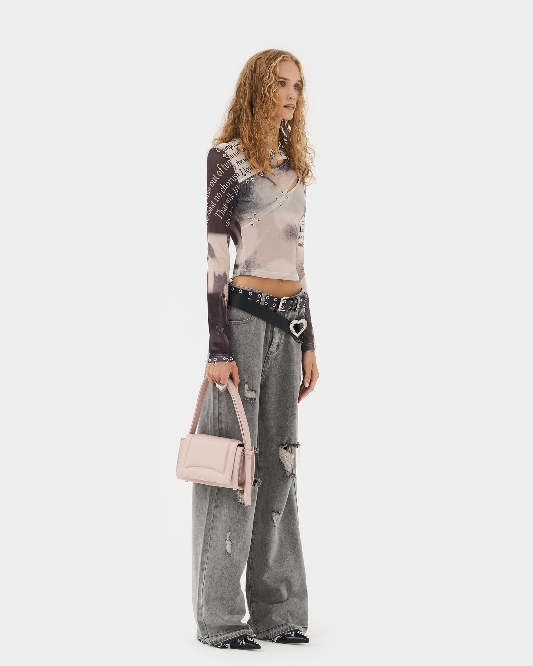 Универсальная каркасная сумка с широким ремнем в цвете нюд