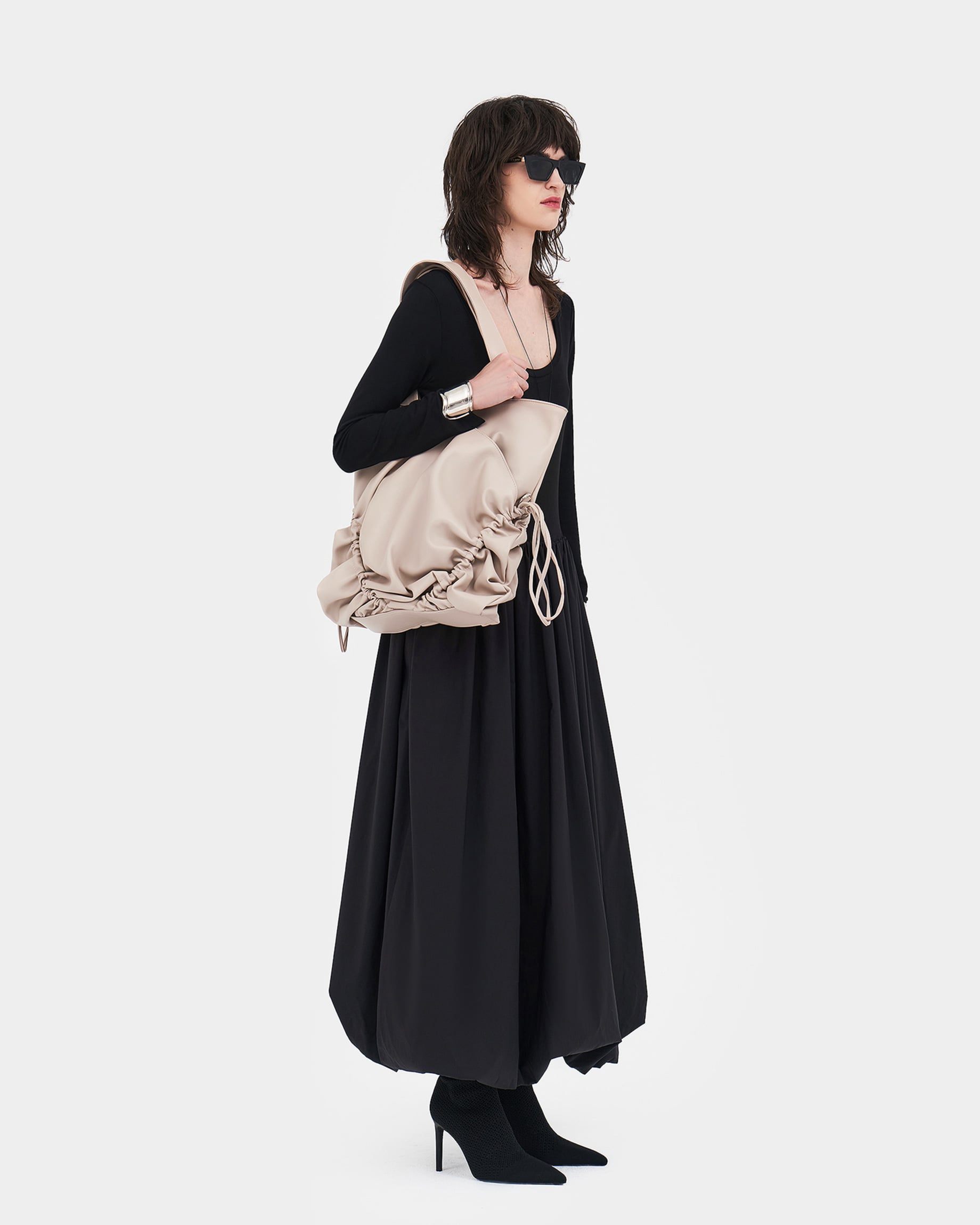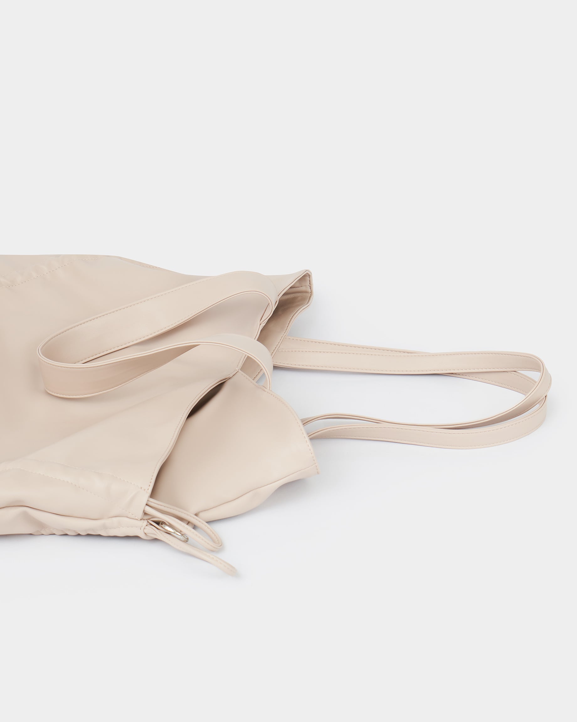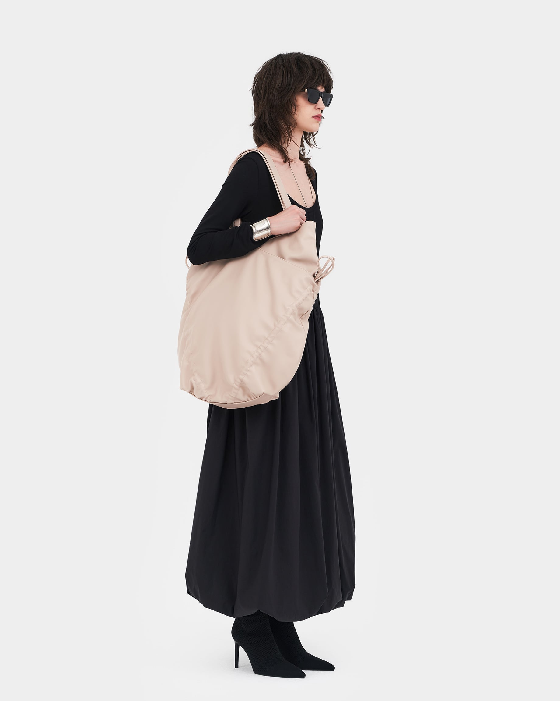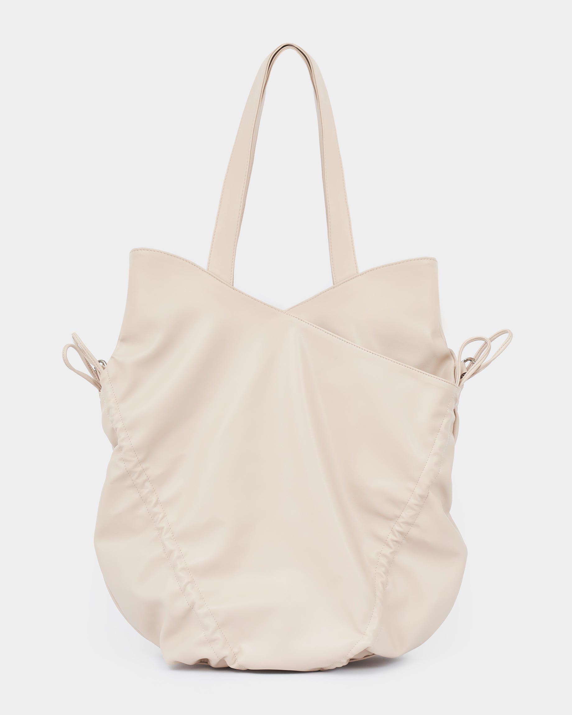 Объёмная сумка-трансформер мягкой формы со сборками в бежевом цвете