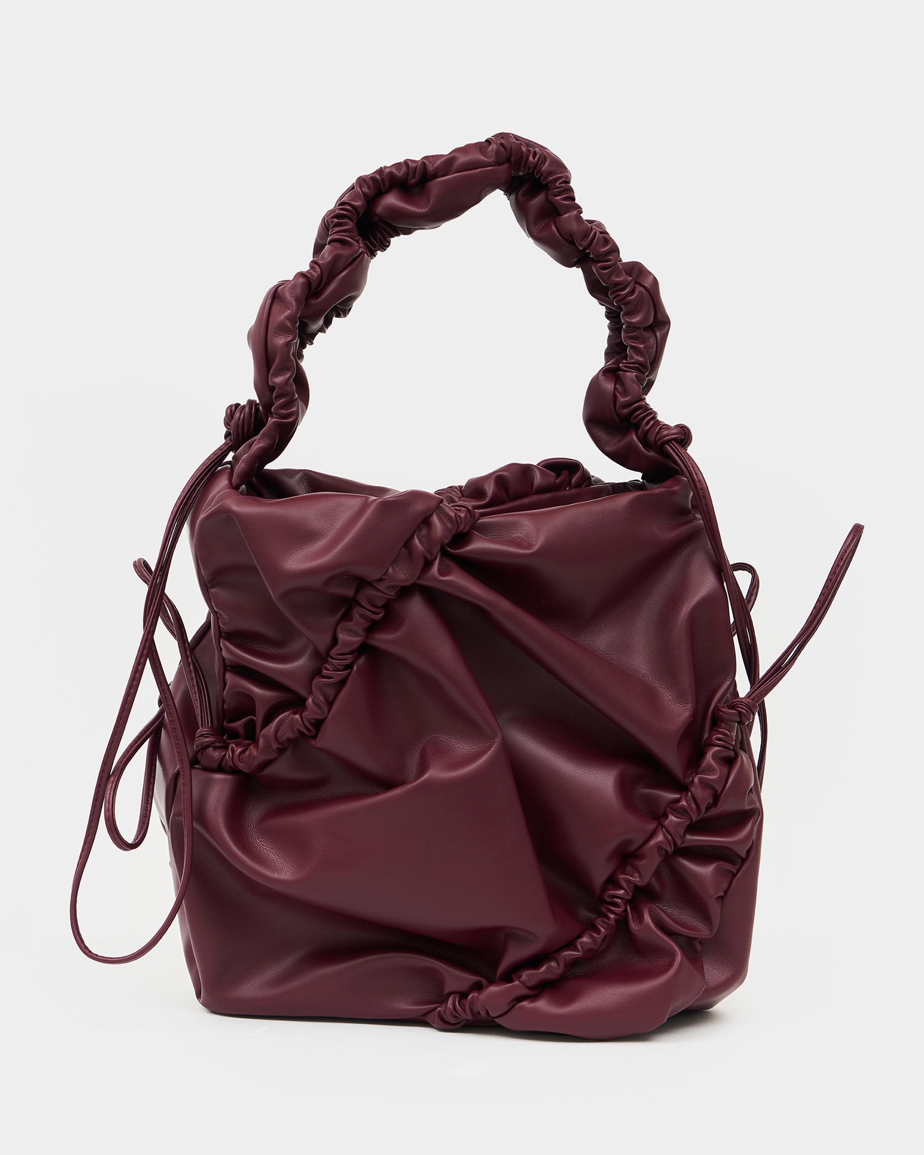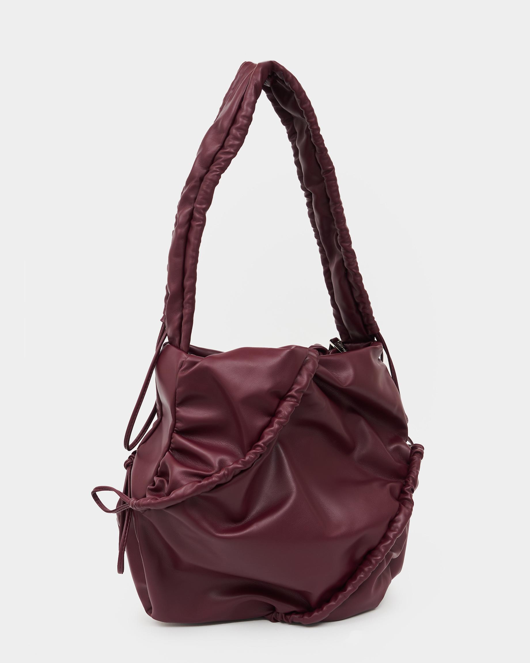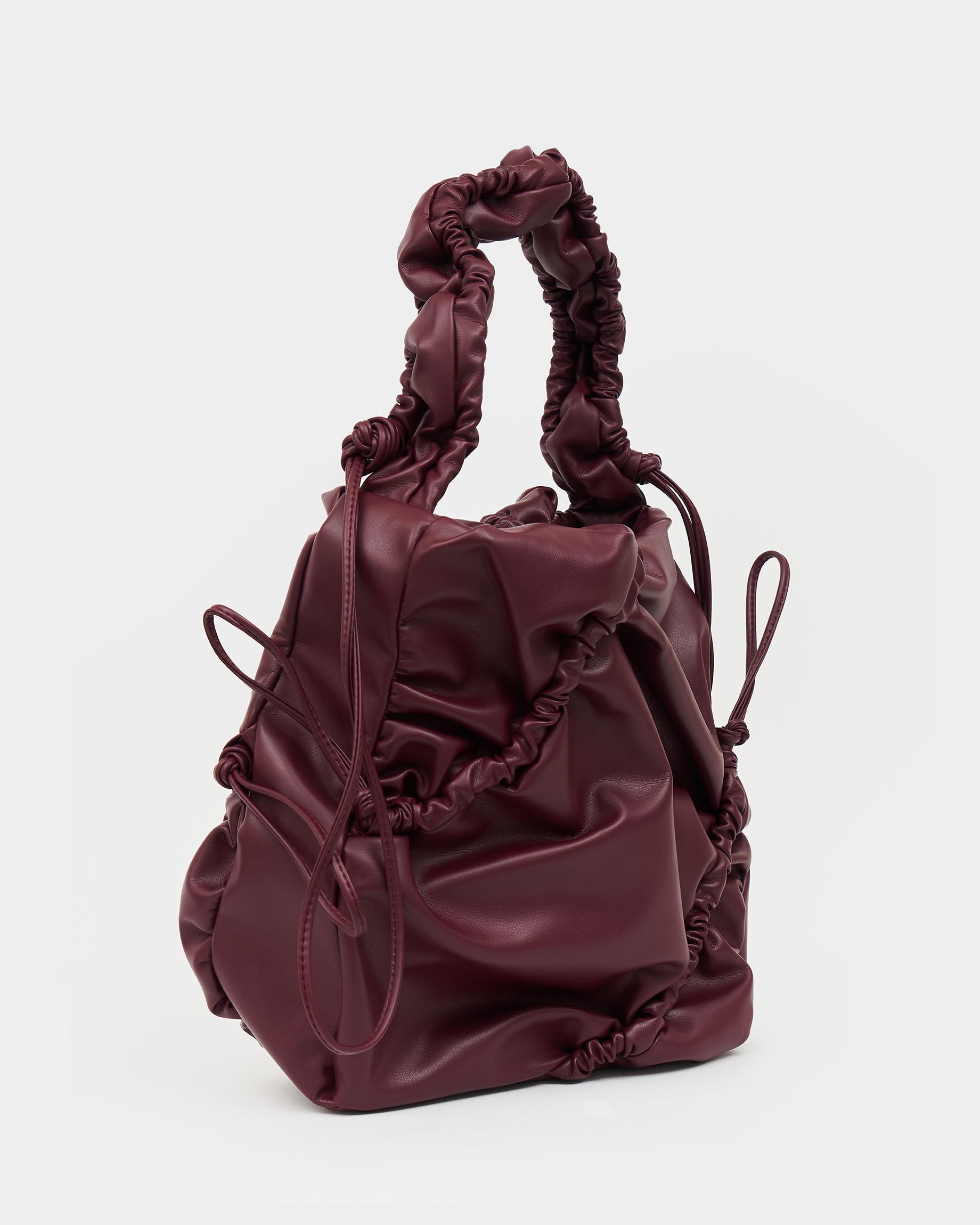 Мягкая сумка-шоппер со сборками в бордовом цвете
