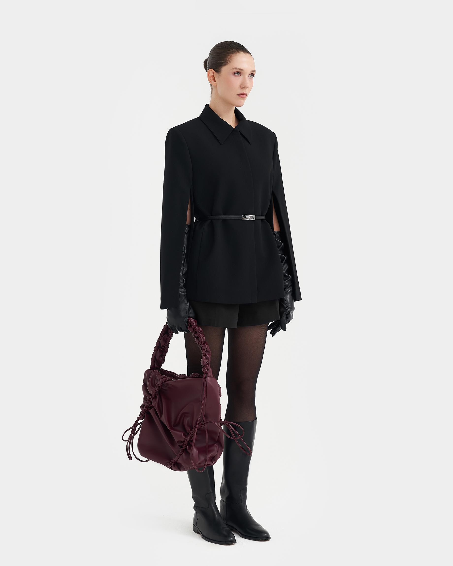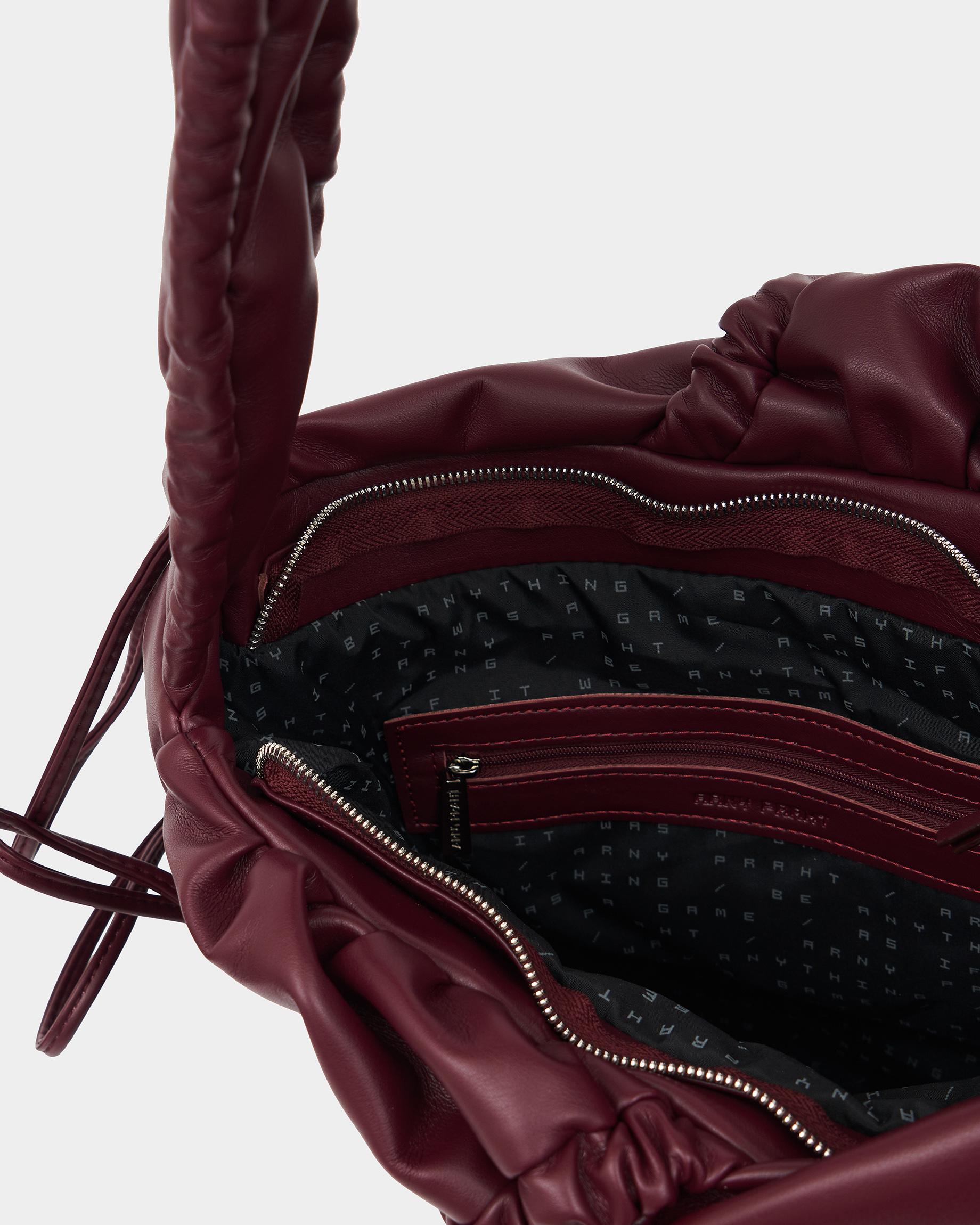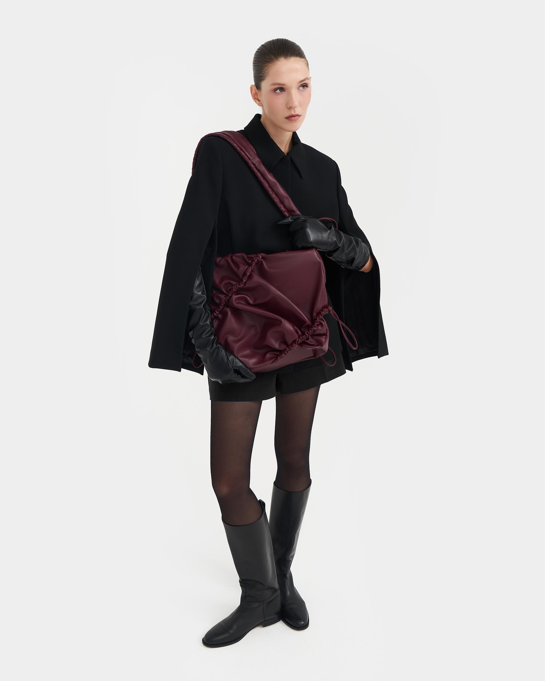 Мягкая сумка-шоппер со сборками в бордовом цвете