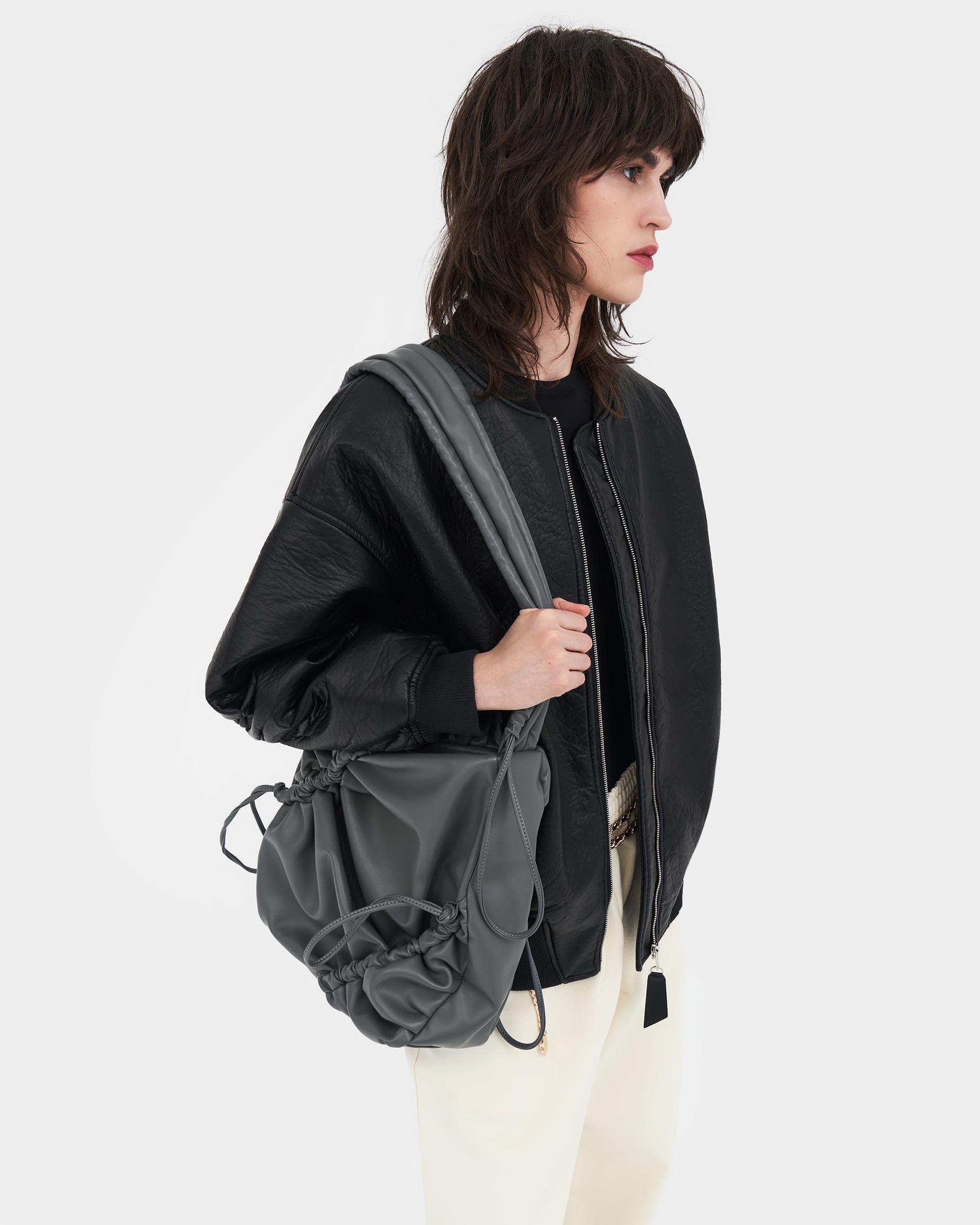 Мягкая сумка-шоппер со сборками в сером цвете