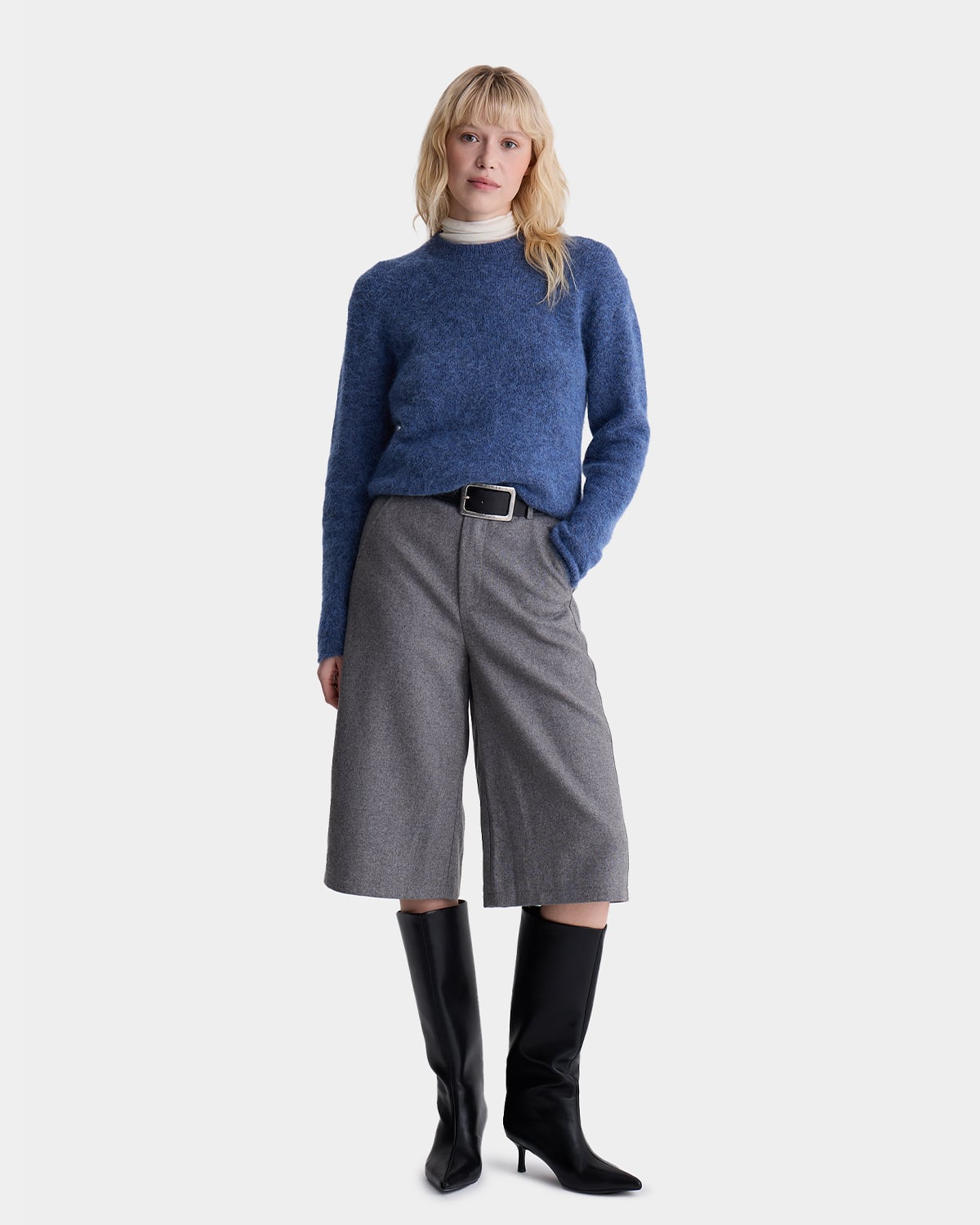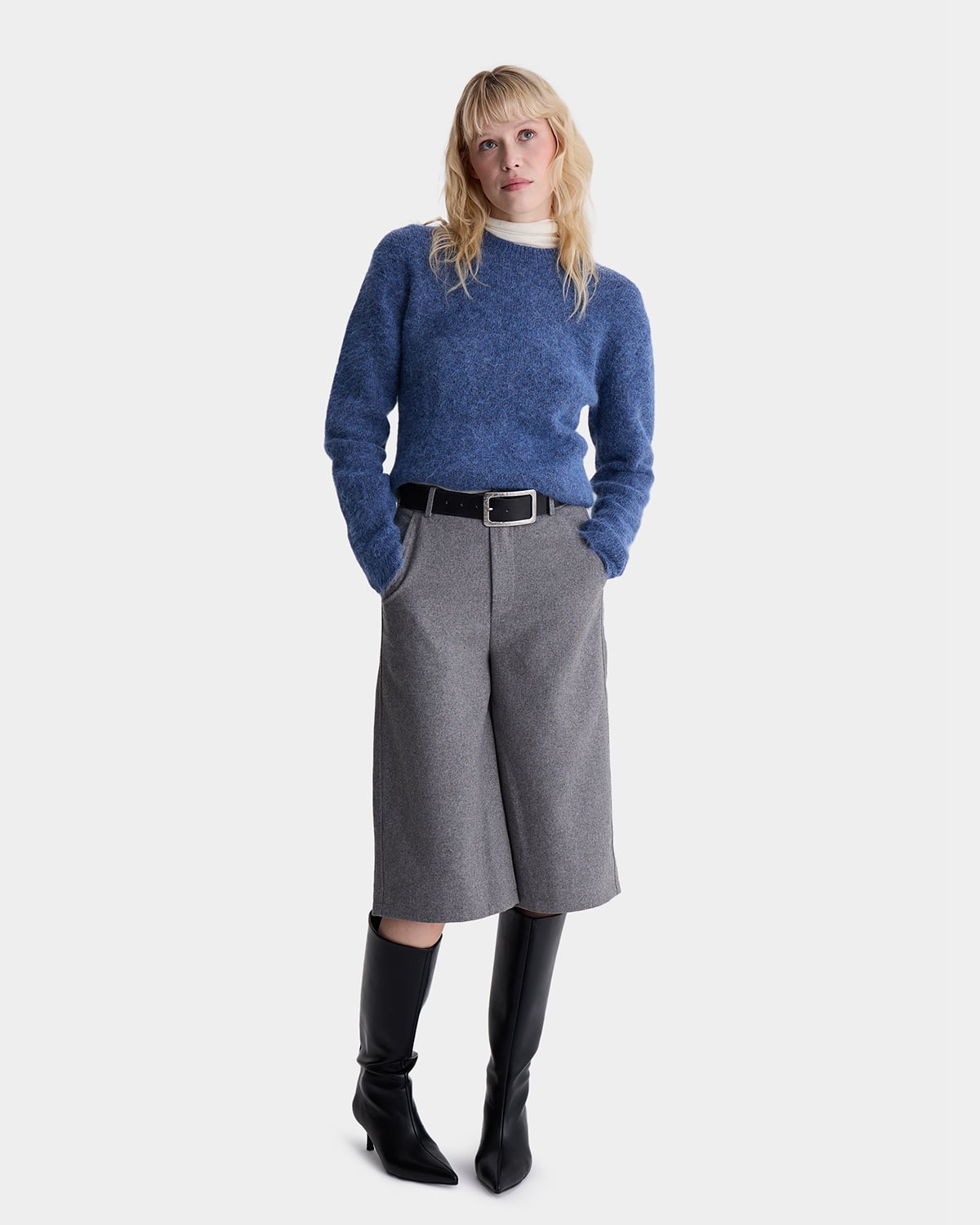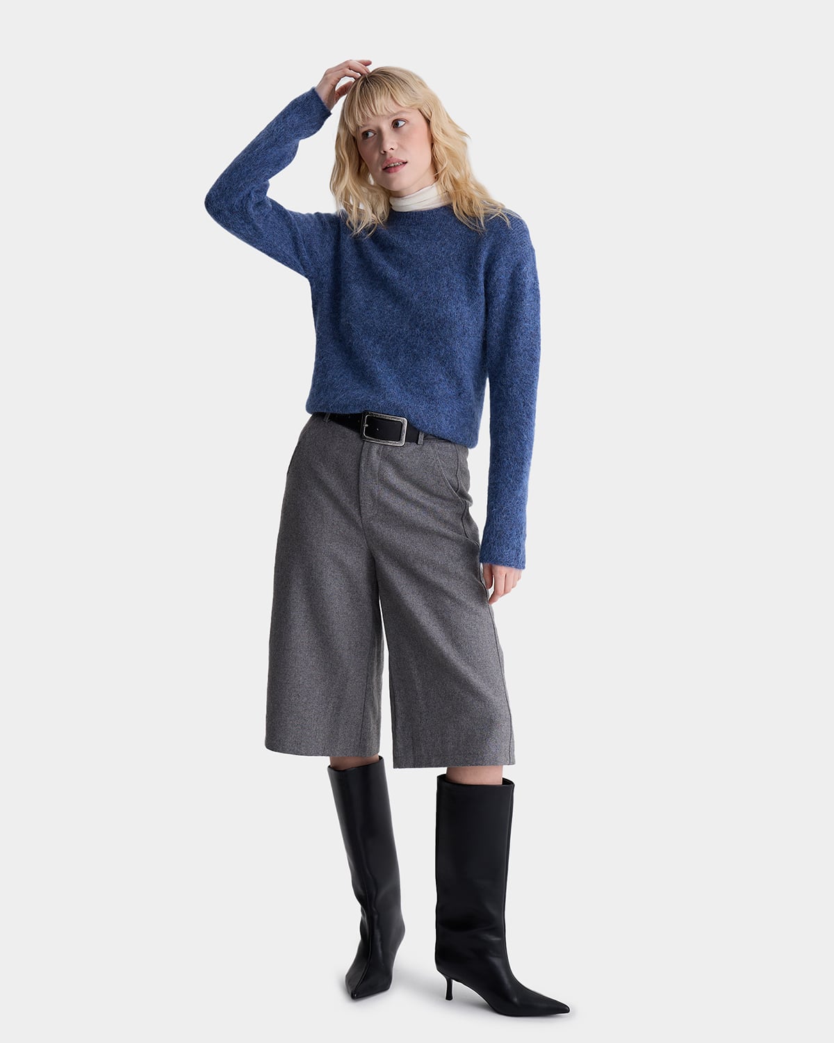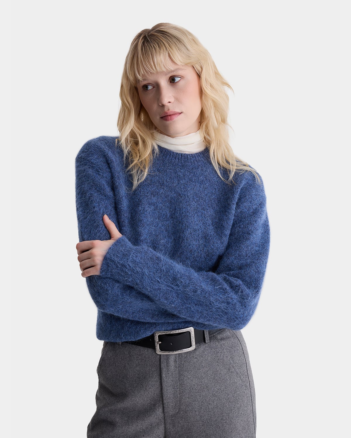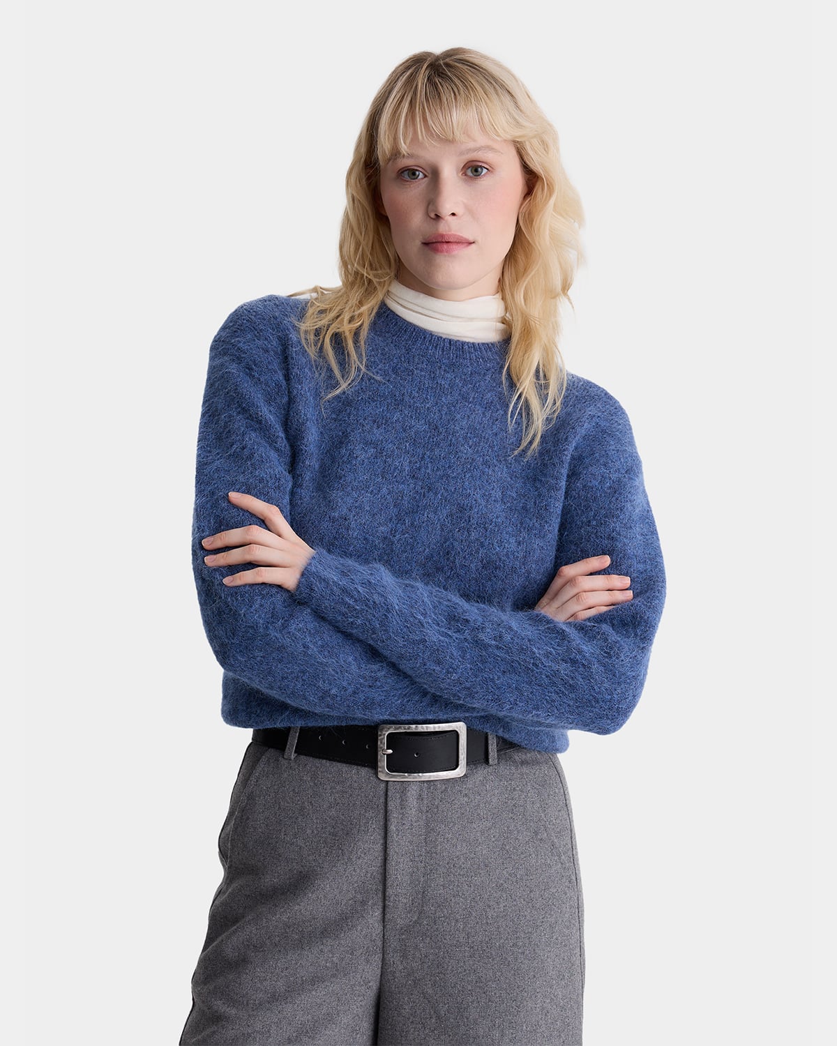 Мягкий свитер из шерсти альпаки и акрила в синем цвете